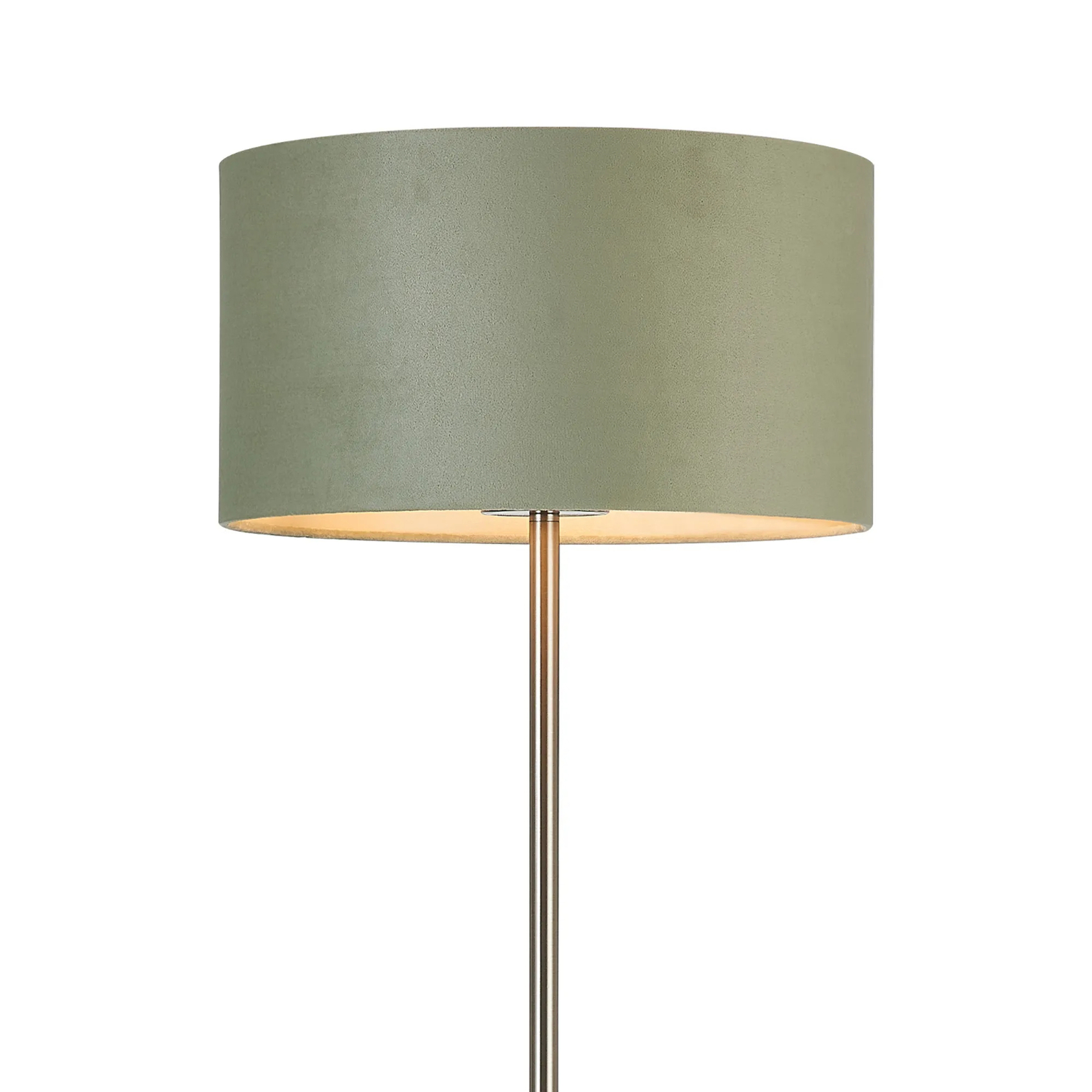 Idolite Devine Floor Lamp, 1 Light E27, Satin Nickel/Sage Green/Prosecco 40x22cm Velvet Shade | IDOK1593