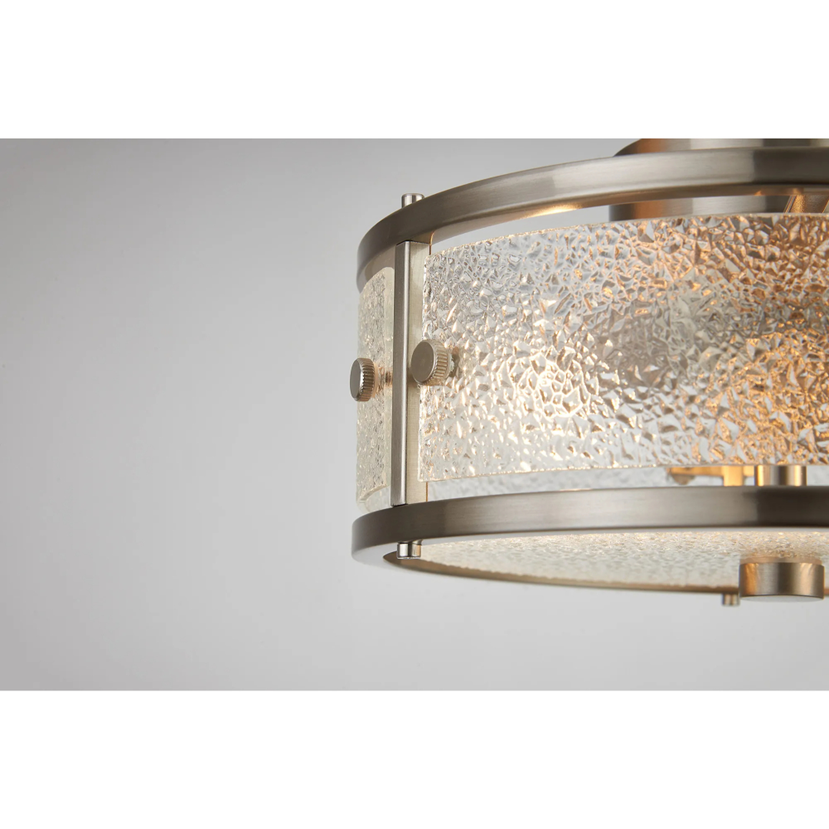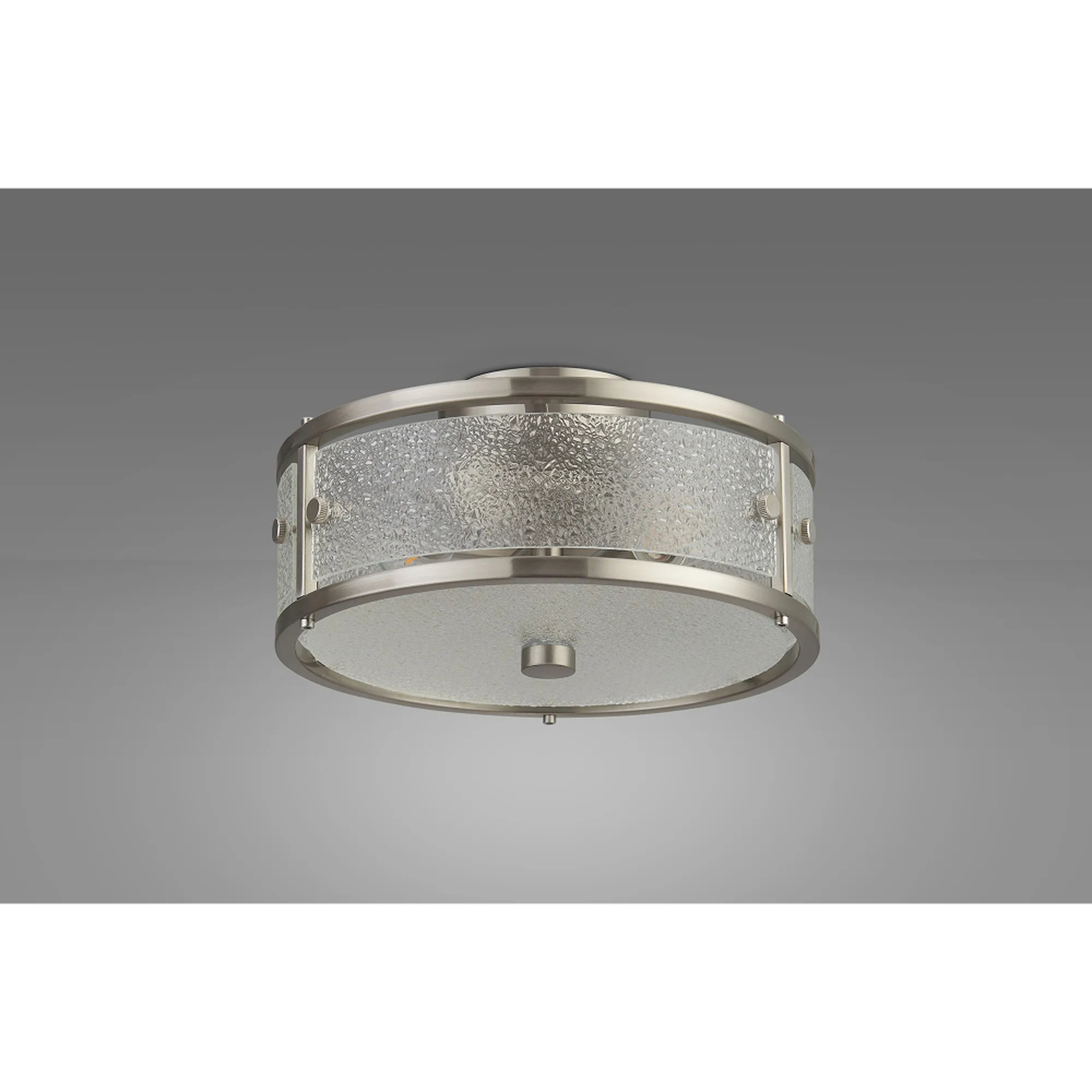Idolite Vault 25cm 2 Light Round Flush Bathroom Ceiling Light Satin Nickel/Clear Diamond Pattern (C) Glass - IP44 | IDOLC/C/NS7176