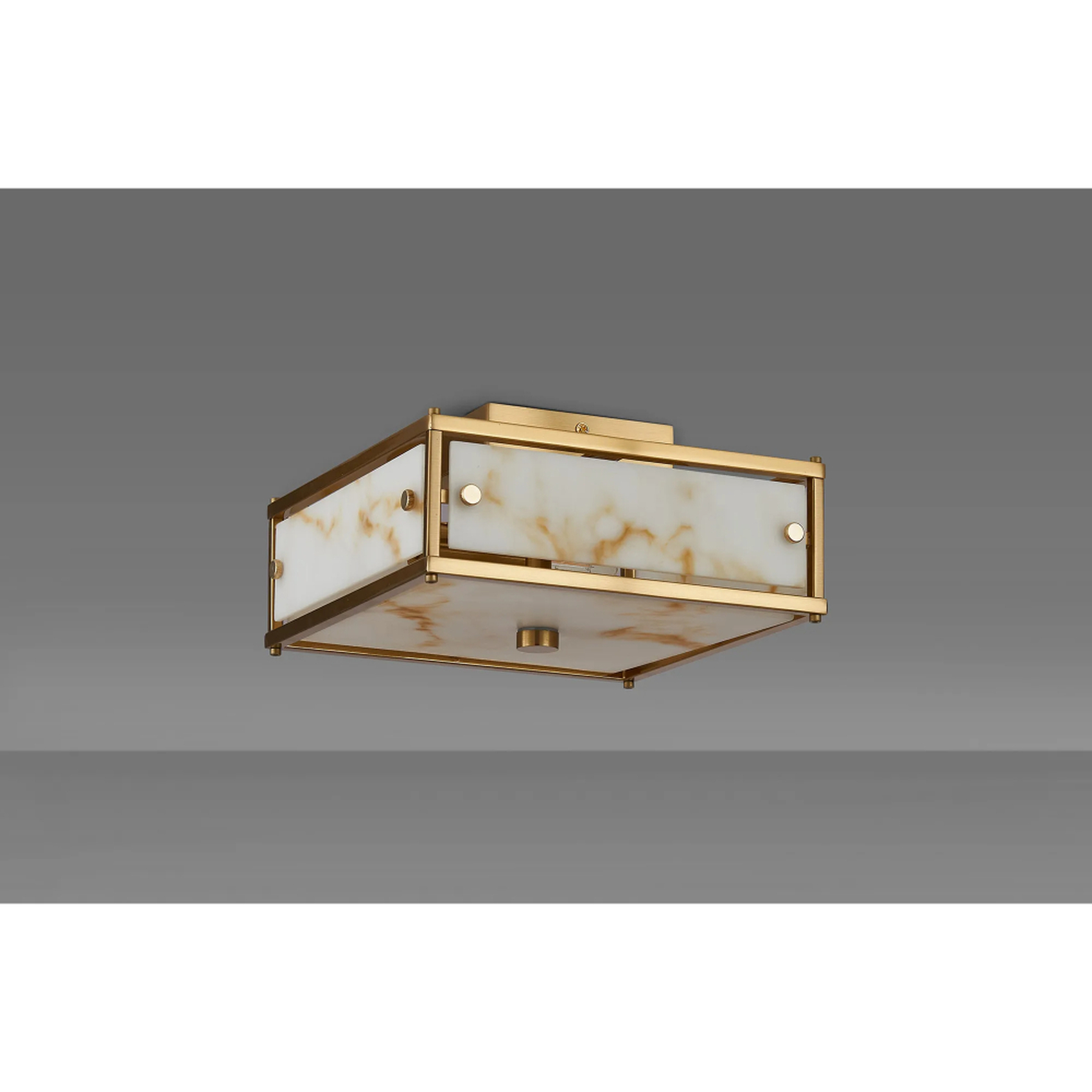 Idolite Vault 25x25cm 2 Light Square Flush Bathroom Ceiling Light Brass/Brown Faux Alabaster (B) Glass - IP44 | IDONB/B/RB1276
