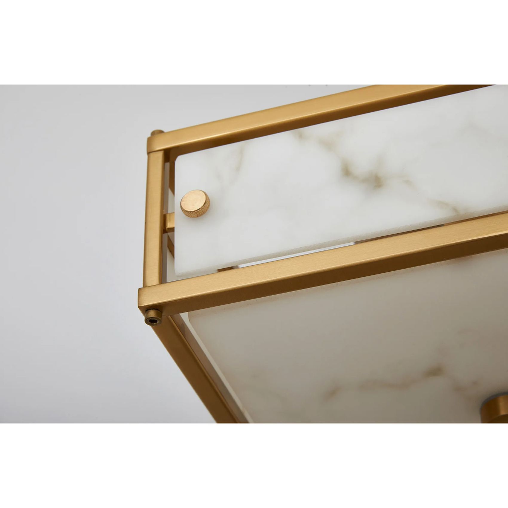Idolite Vault 25x25cm 2 Light Square Flush Bathroom Ceiling Light Brass/Grey Faux Alabaster (B) Glass - IP44 | IDOYG/B/RB1276