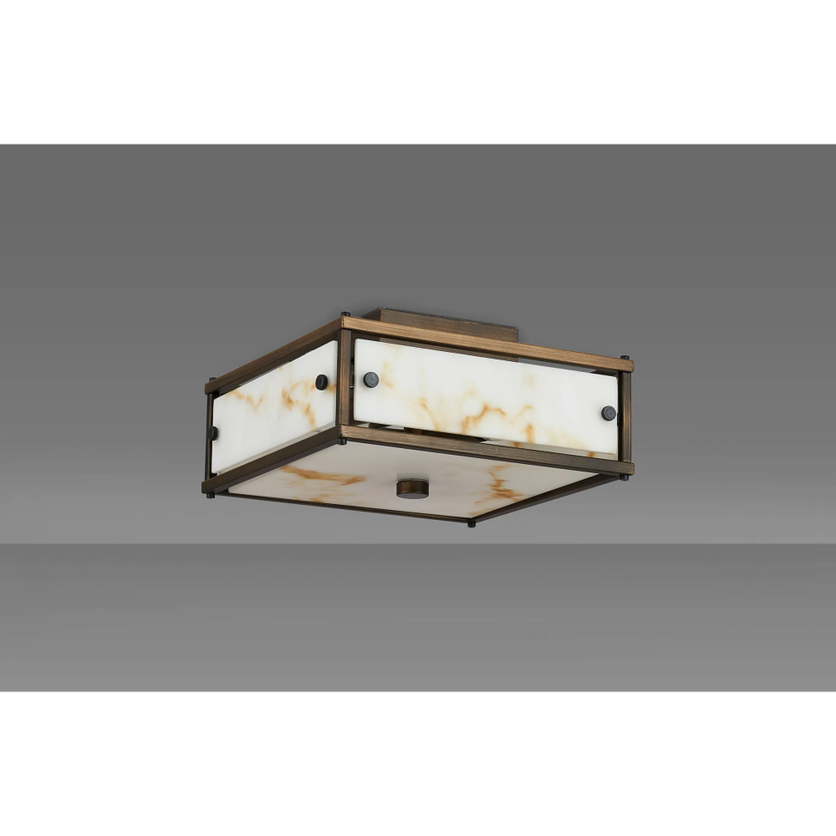 Idolite Vault 25x25cm 2 Light Square Flush Bathroom Ceiling Light Painted Bronze/Brown Faux Alabaster (B) Glass - IP44 | IDONB/B/ZB1276