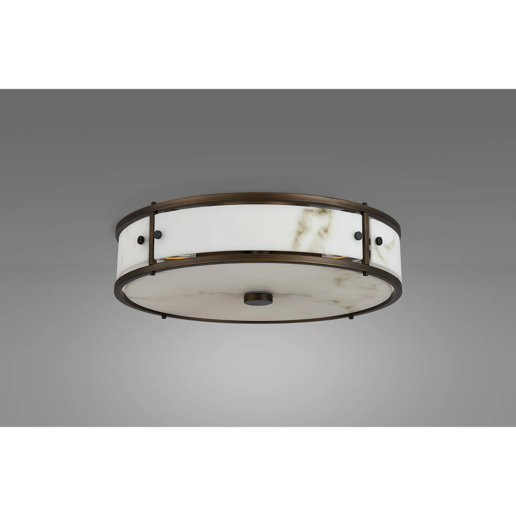 Idolite Vault 40cm 4 Light Round Flush Bathroom Ceiling Light Painted Bronze/Grey Faux Alabaster (B) Glass - IP44 | IDOYG/B/ZB9176