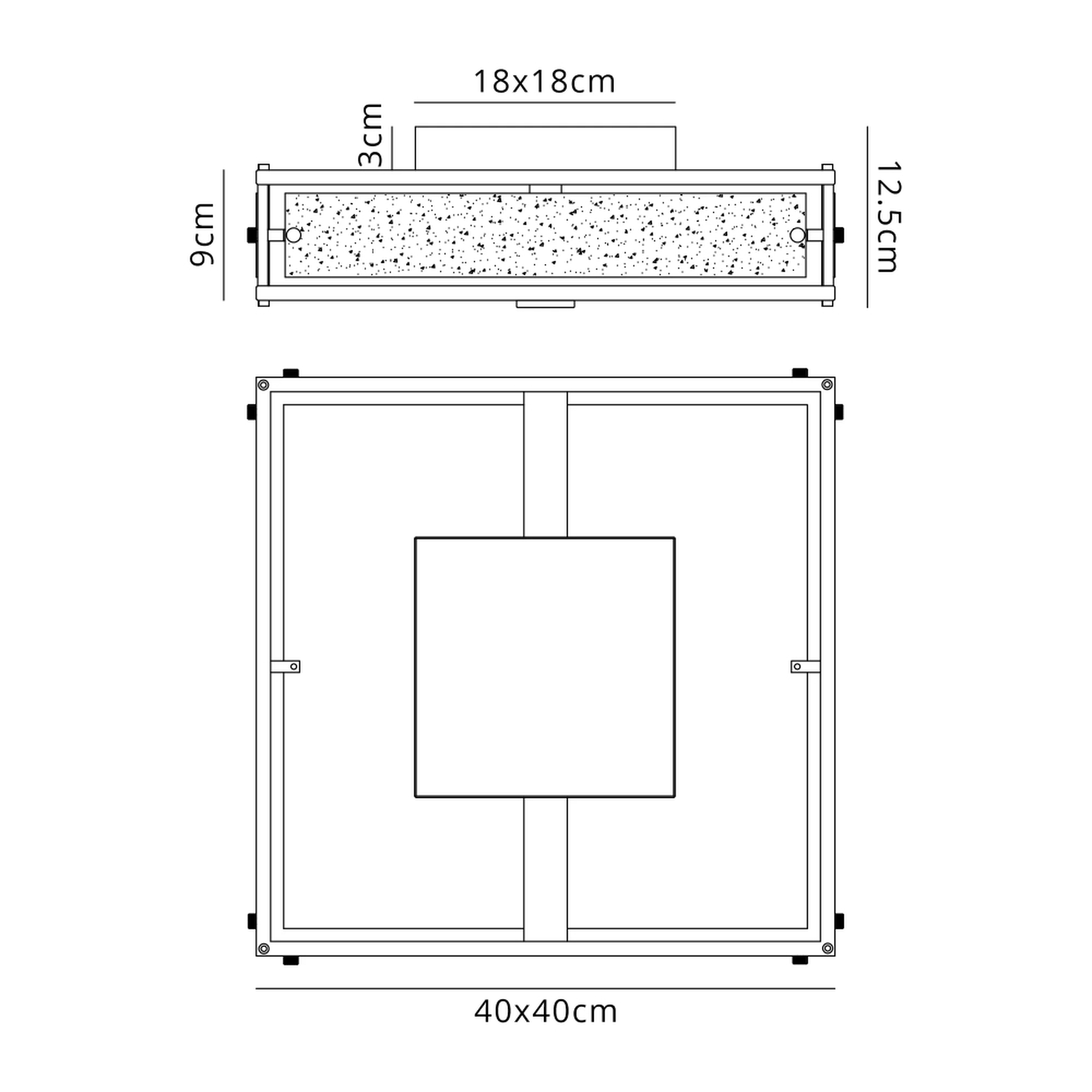 Idolite Vault 40x40cm 4 Light Square Flush Bathroom Ceiling Light Brass/Clear Diamond Pattern (C) Glass - IP44 | IDOLC/C/RB3276