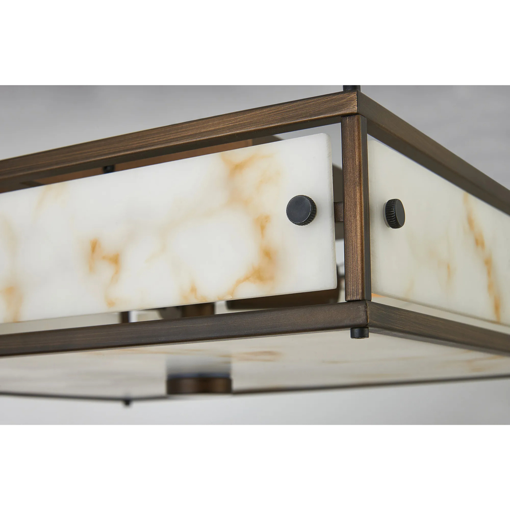 Idolite Vault 40x40cm 4 Light Square Flush Bathroom Ceiling Light Painted Bronze/Brown Faux Alabaster (B) Glass - IP44 | IDONB/B/ZB3276