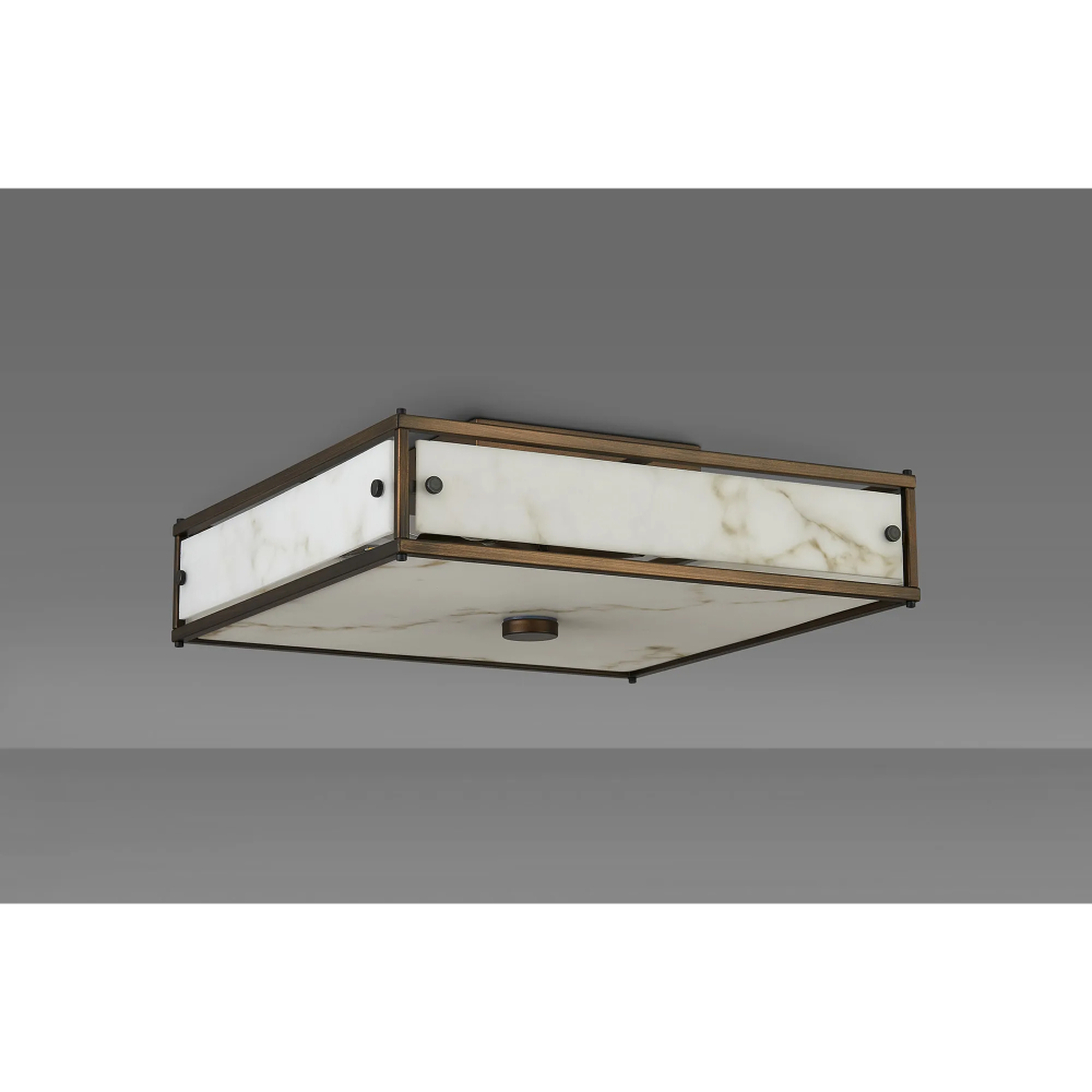 Idolite Vault 40x40cm 4 Light Square Flush Bathroom Ceiling Light Painted Bronze/Grey Faux Alabaster (B) Glass - IP44 | IDOYG/B/ZB3276