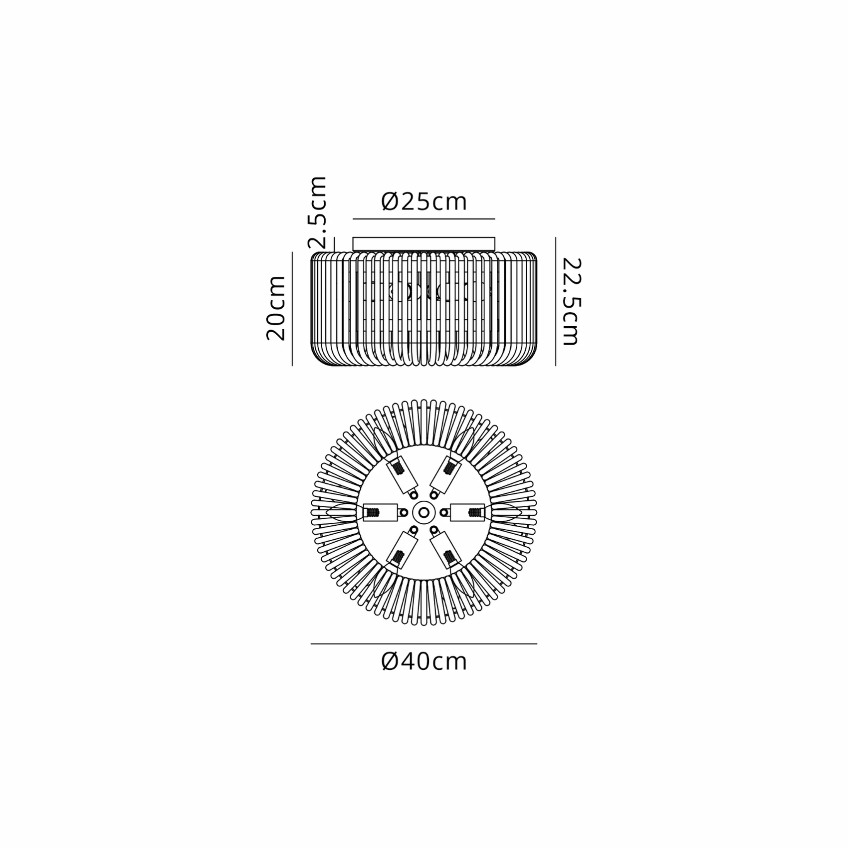 Idolite Nuboda 40cm 6 Light Flush Brass Finish Ceiling Light Complete With Smoke Brown Glass Rods | IDONBMS/RB0036