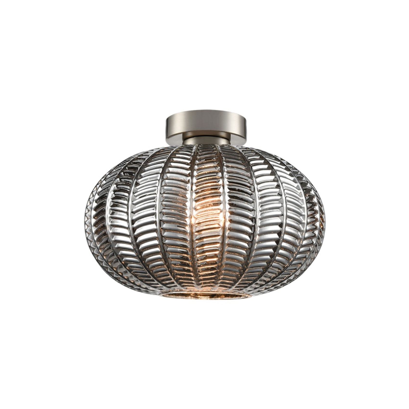 Franklite Mezcla Flush Satin Nickel Ceiling Light Complete With 260mm Smoked Chevron Glass Shade | CF5817-509