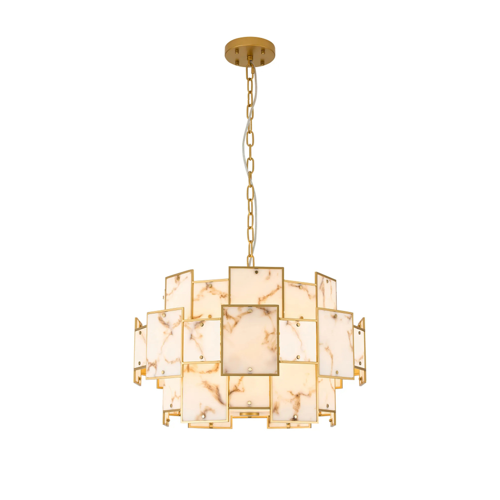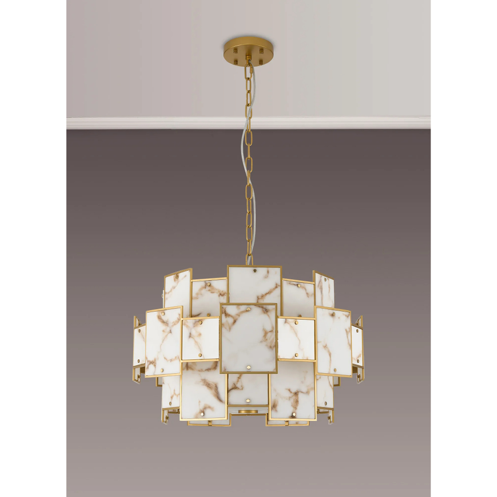 Idolite Natron 59cm Round Pendant/Semi Flush Faux Alabaster: 12 x E14: 1.5m Chain: Gold/Brown | IDONB/OG2495