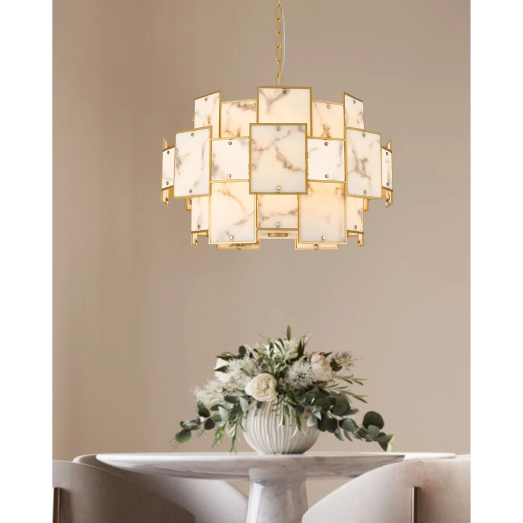 Idolite Natron 59cm Round Pendant/Semi Flush Faux Alabaster: 12 x E14: 1.5m Chain: Gold/Grey | IDOYG/OG2495