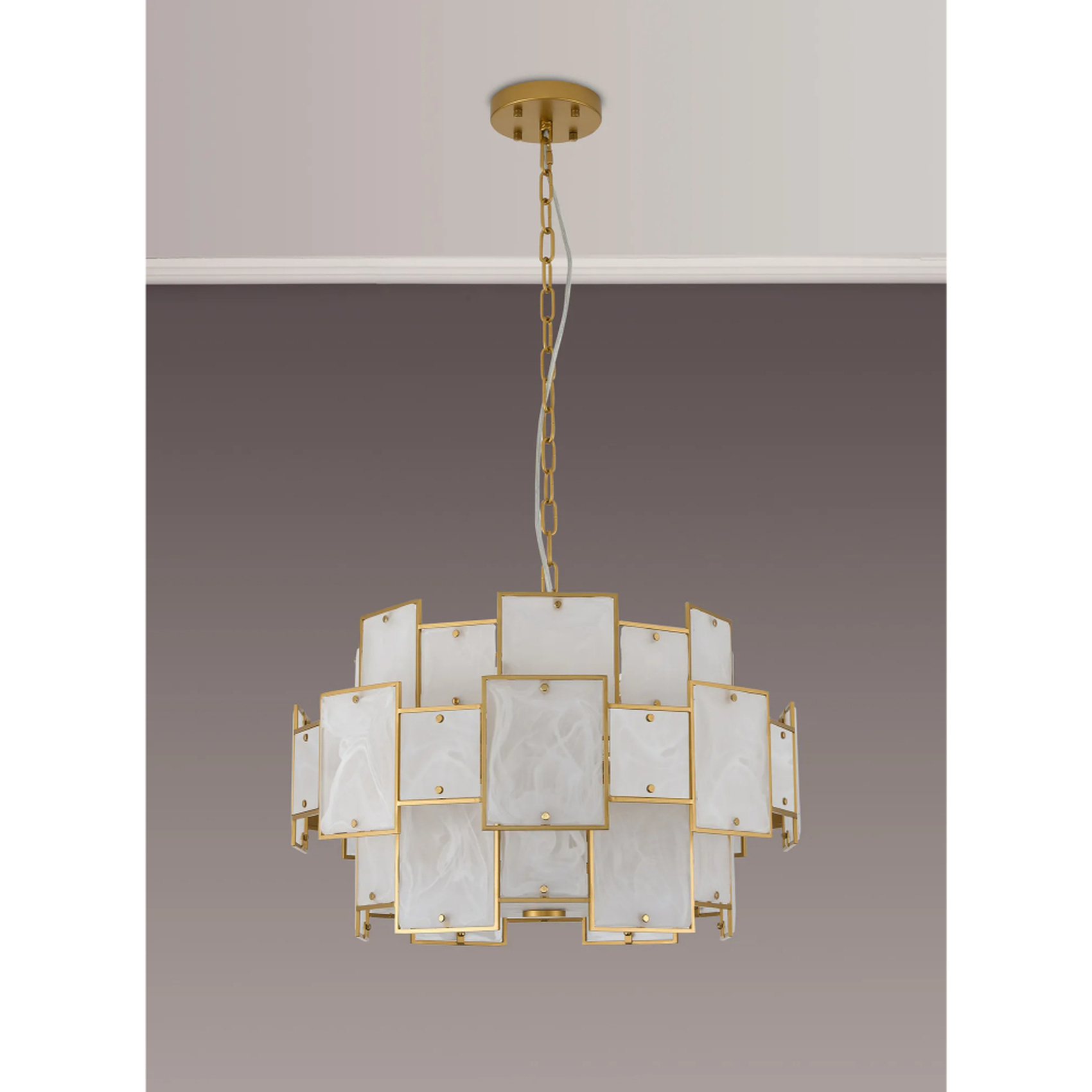 Idolite Natron 59cm Round Pendant/Semi Flush White Glass Alabaster: 12 x E14: 1.5m Chain: Gold/White Frosted | IDORF/OG2495