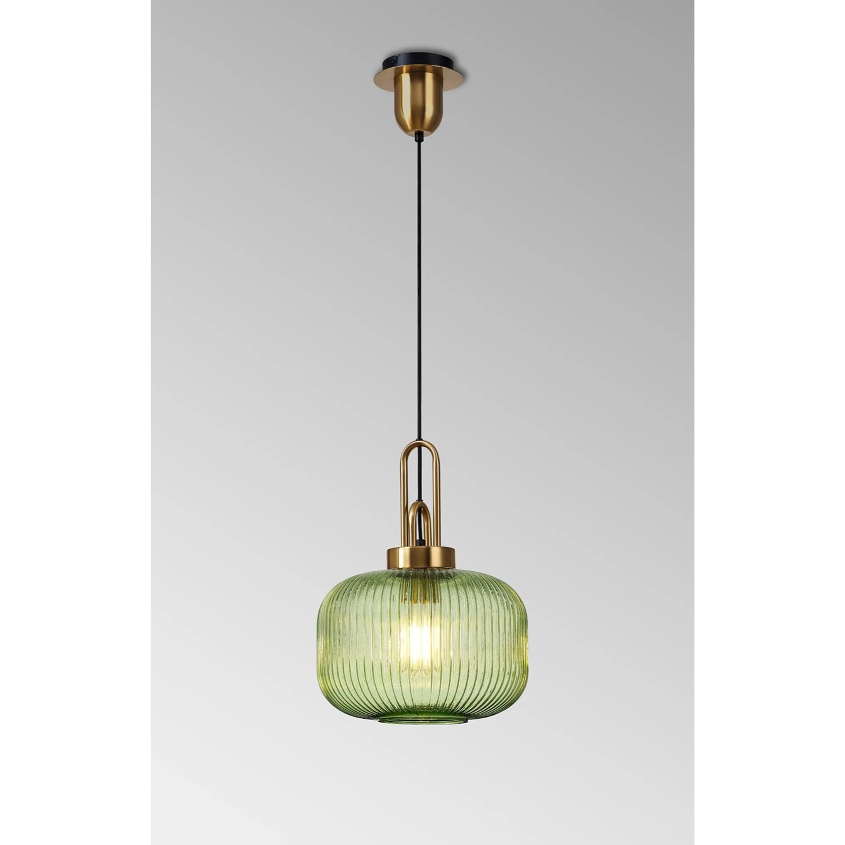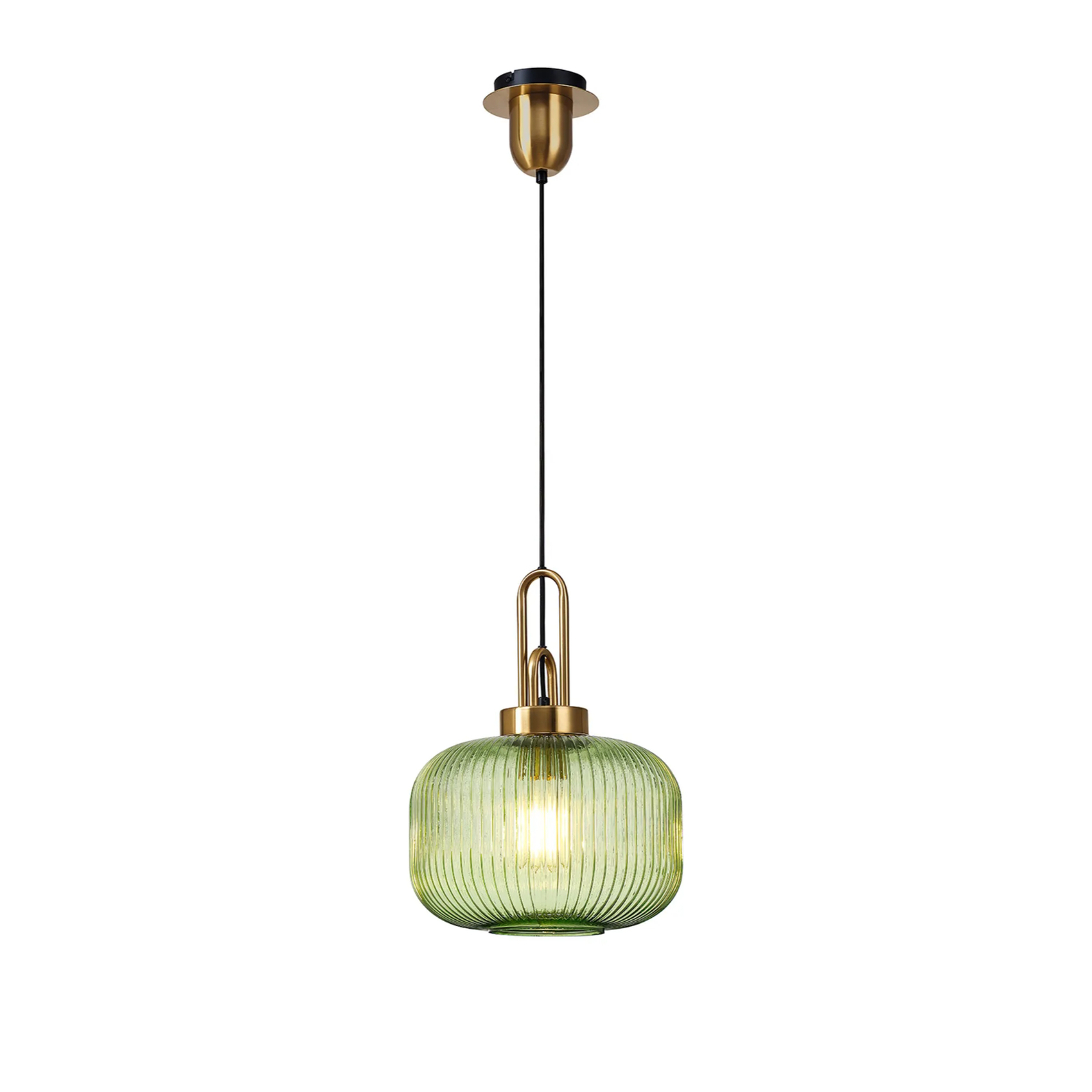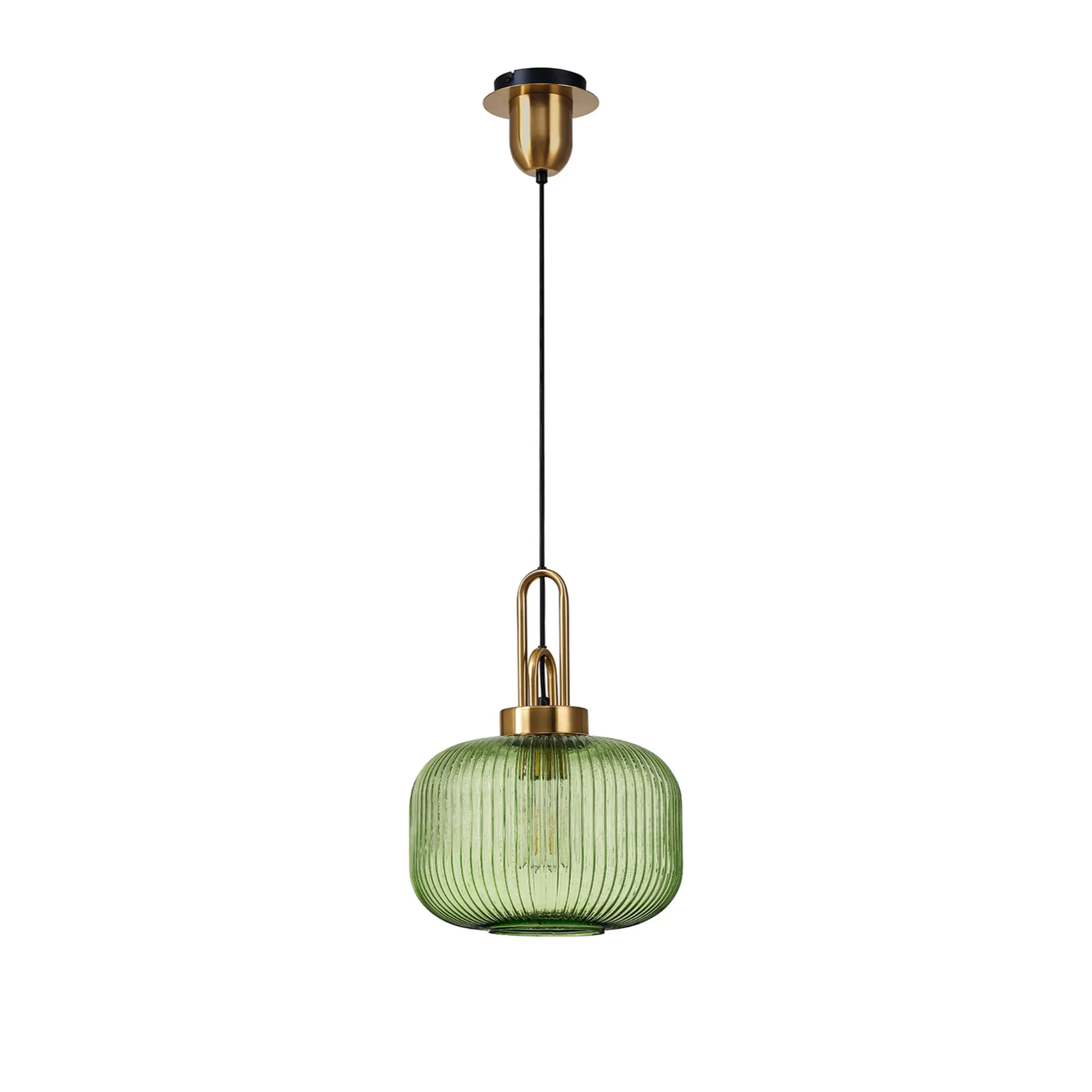 Idolite Camille 1 x E27 Pendant With 30cm Pumpkin Ribbed Glass, Brass Gold/Green/Matt Black | IDOK8451