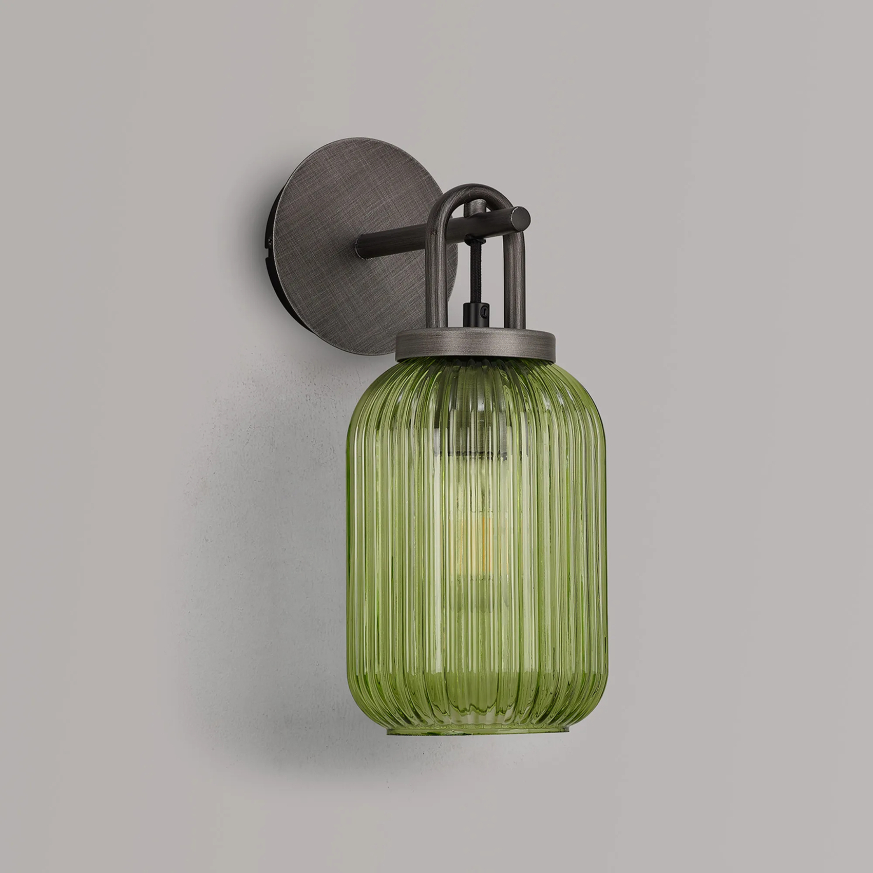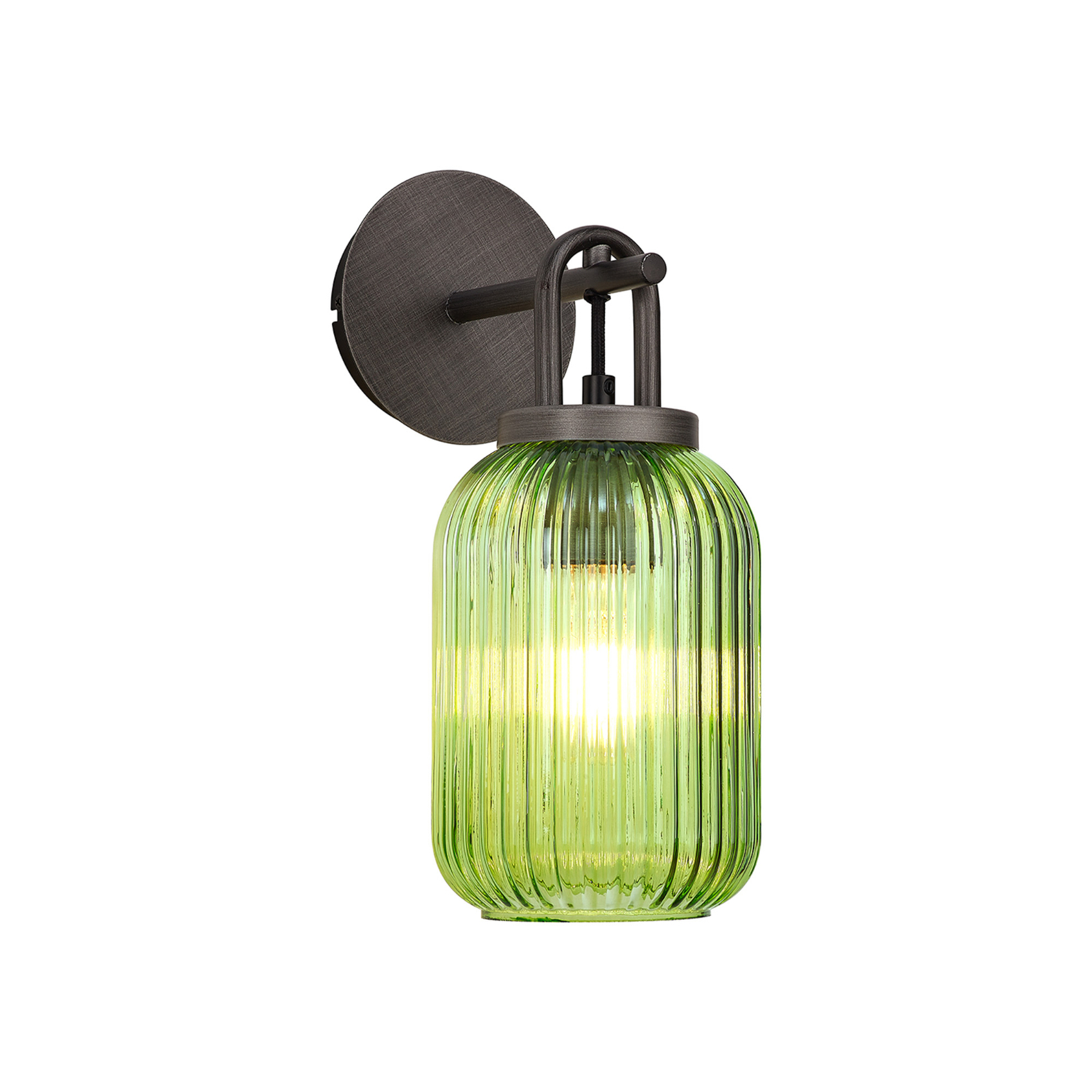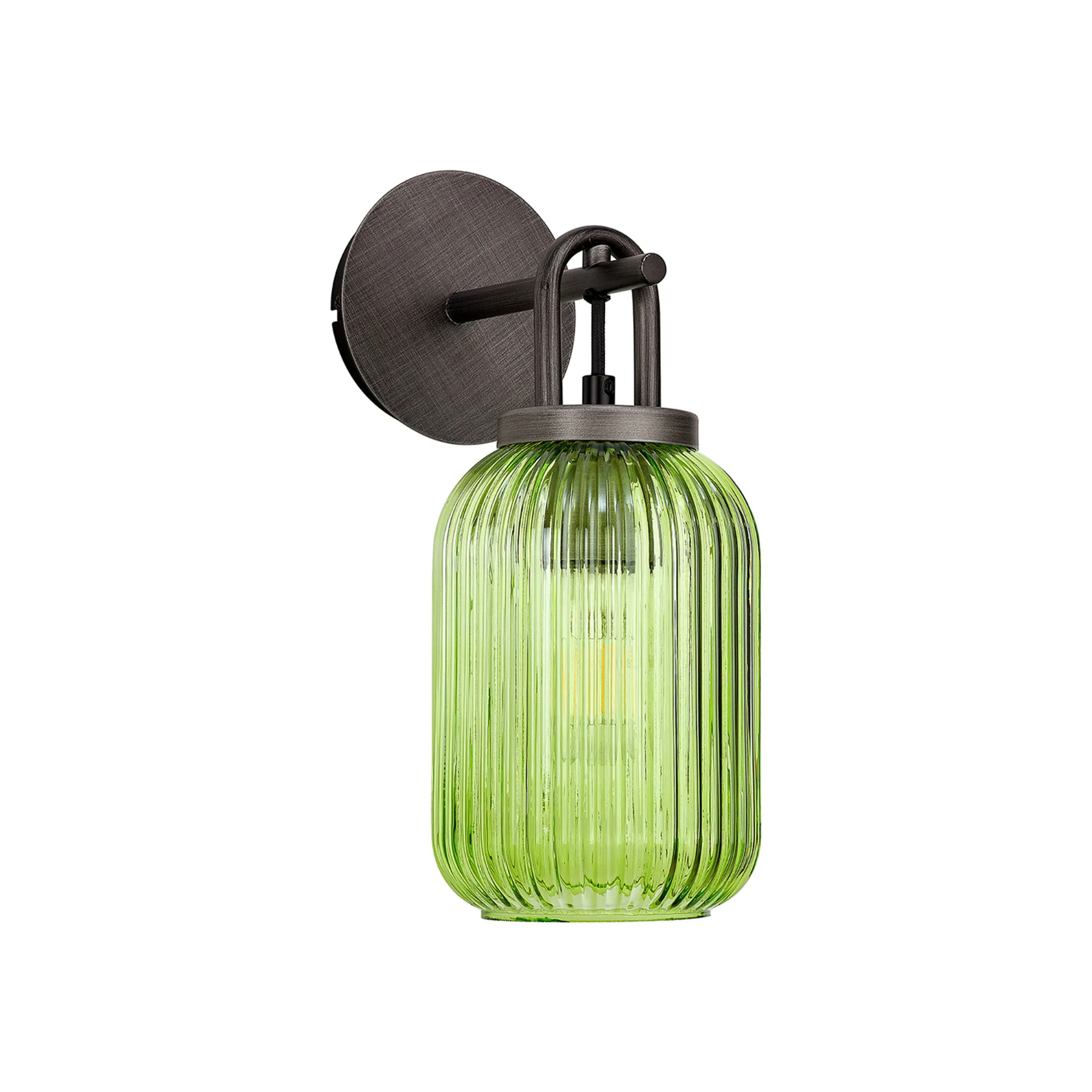 Idolite Camille Wall Light Switched, 1 x E27, Aged Pewter With 14cm Tubular Ribbed Glass, Green | IDOK5522