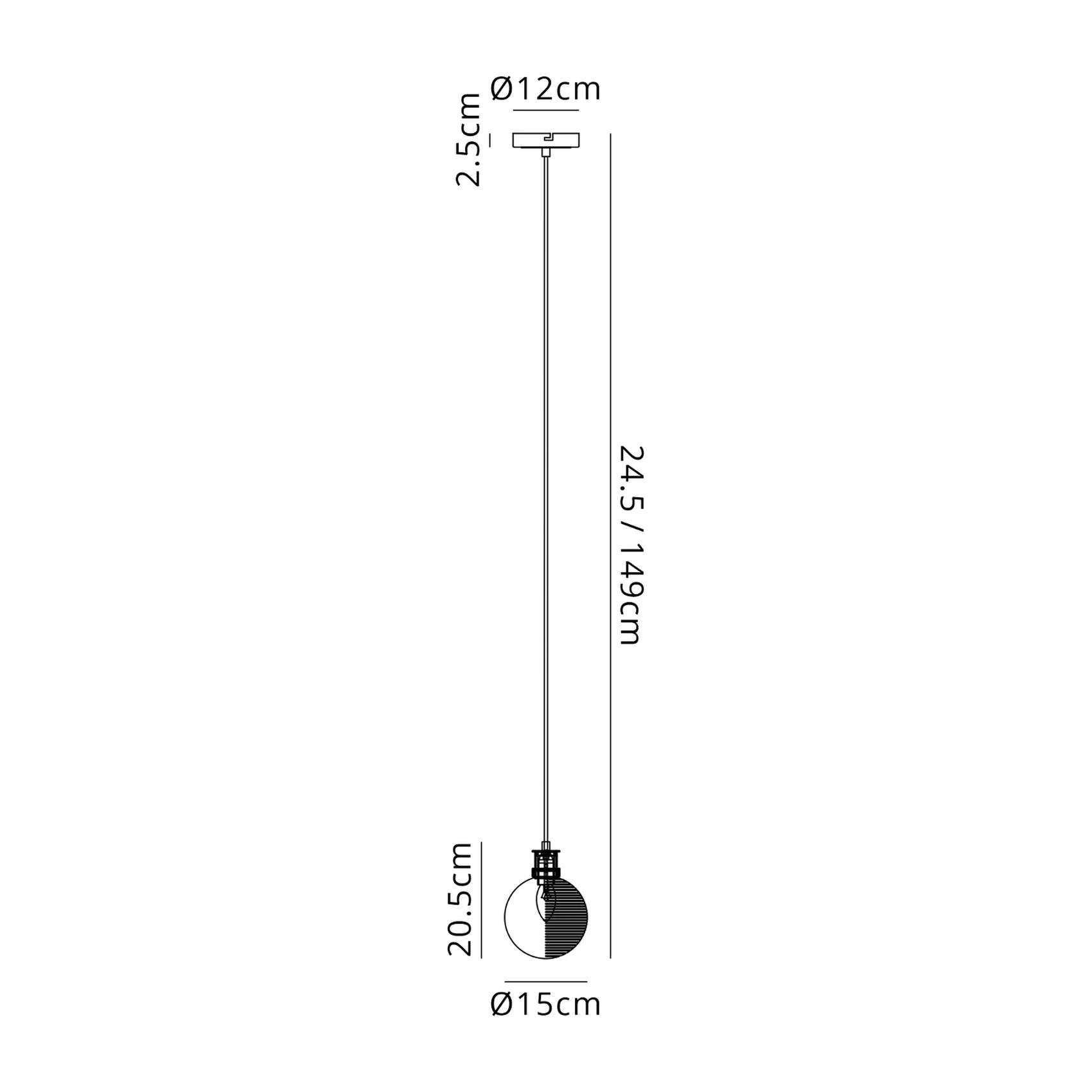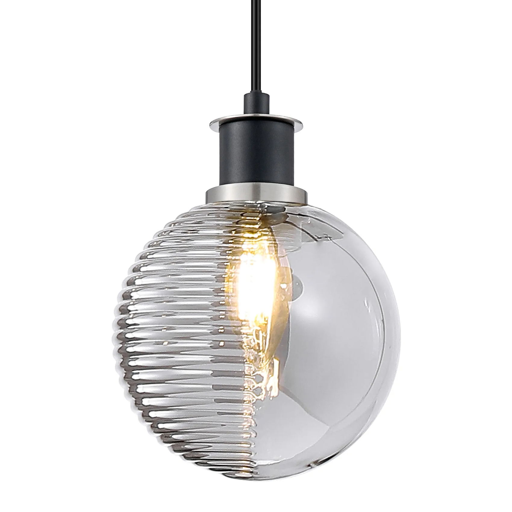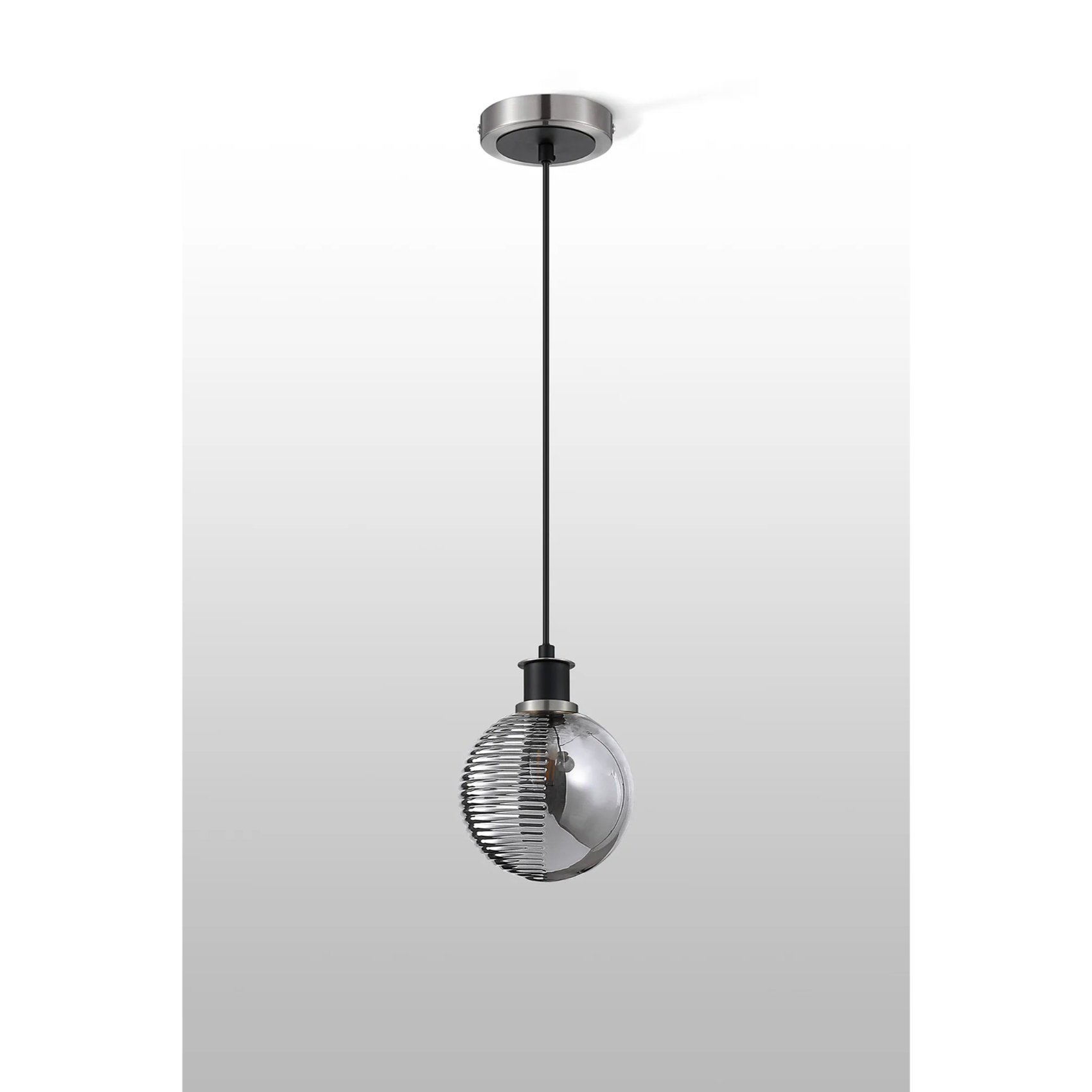 Idolite Haughton IP 1.3m Pendant, 1 Light E14 IP44 With 15cm Round Double Textured Smooth/Ribbed Glass Shade, Satin Nickel, Smoke Plated & Satin Black | IDOMSBRS/NS4099
