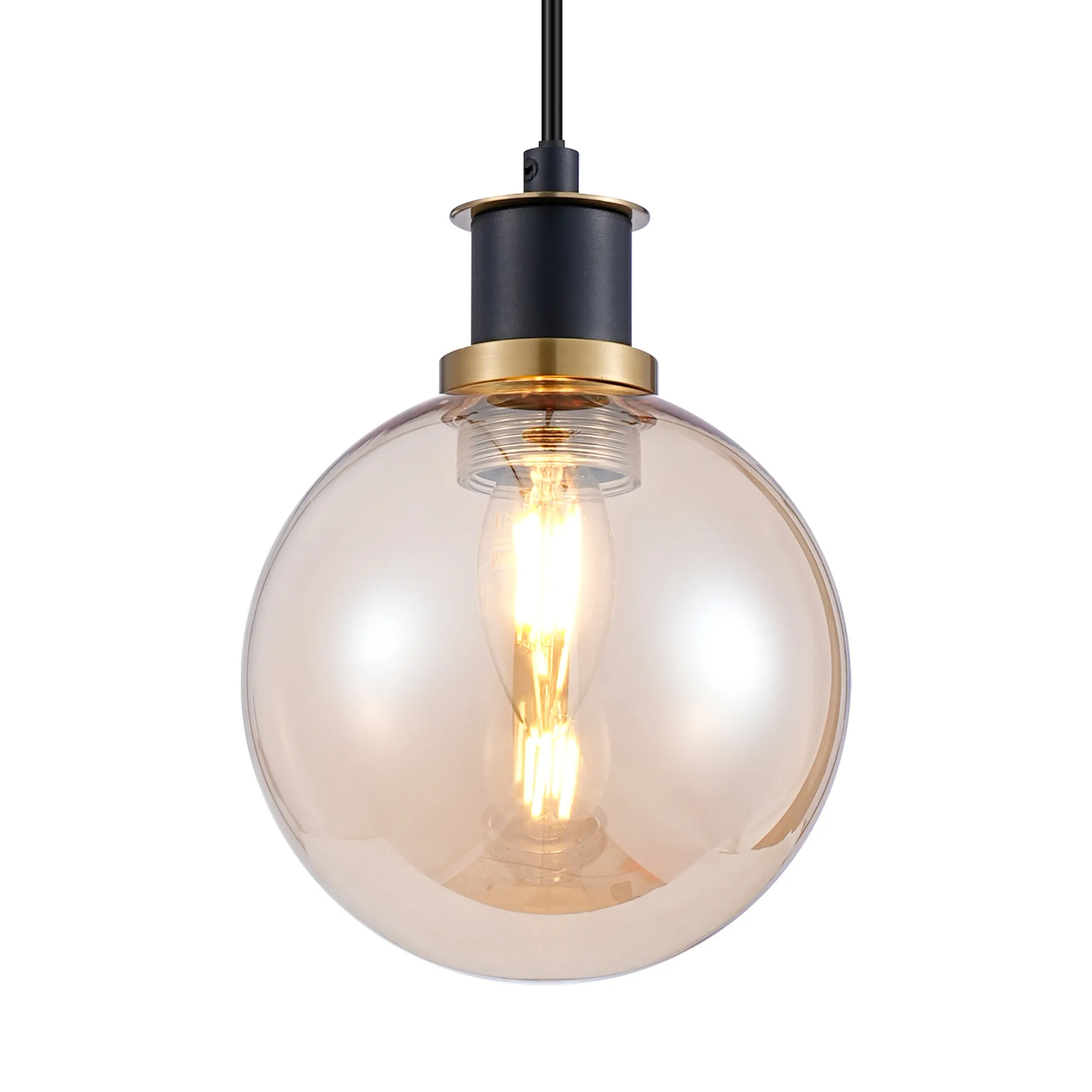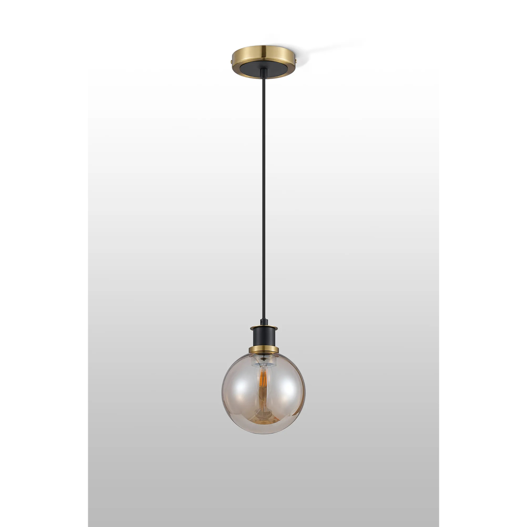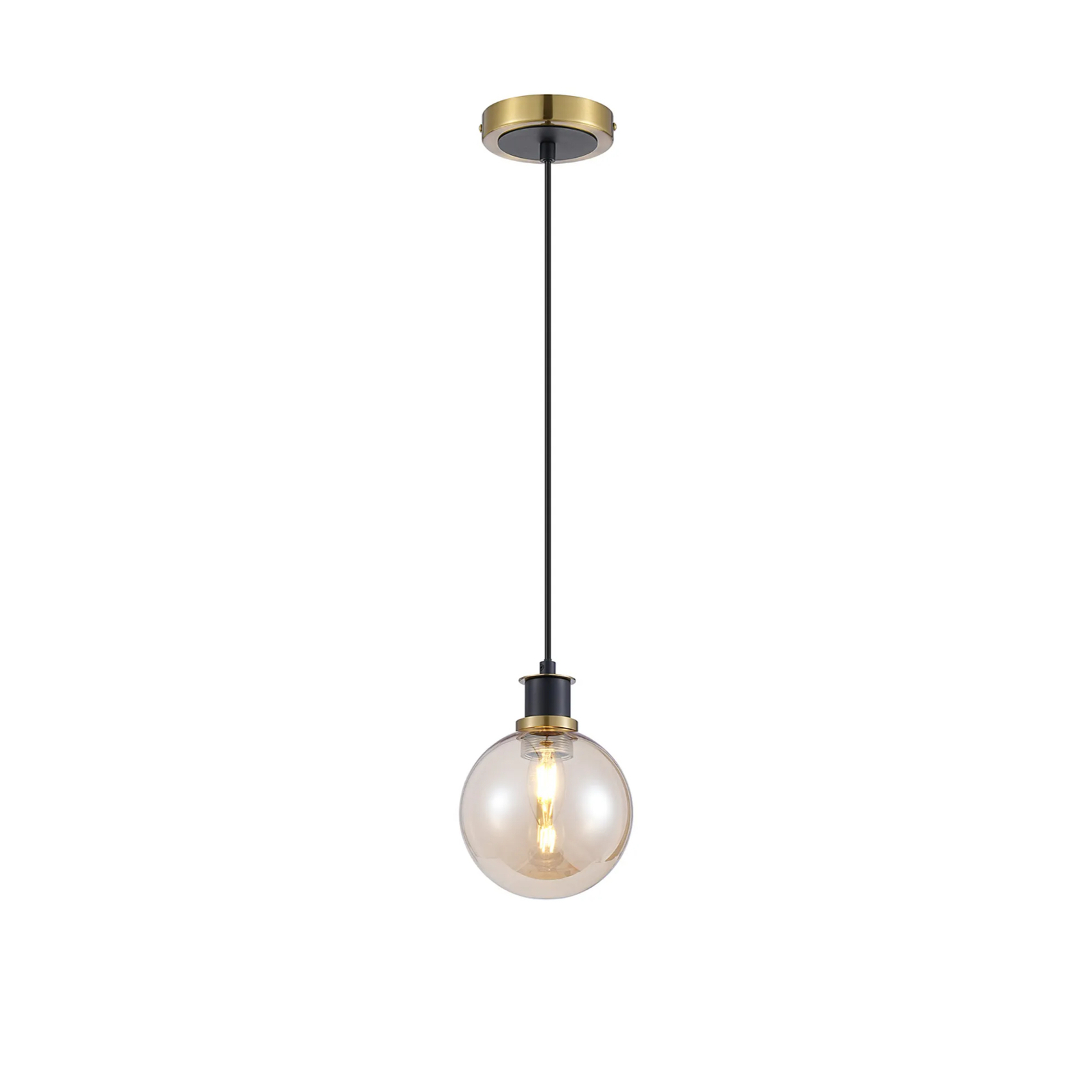 Idolite Haughton IP 1.3m Pendant, 1 x E14 With 15cm Round Glass Shade, Brass, Amber Plated & Satin Black | IDOMA/RB4099