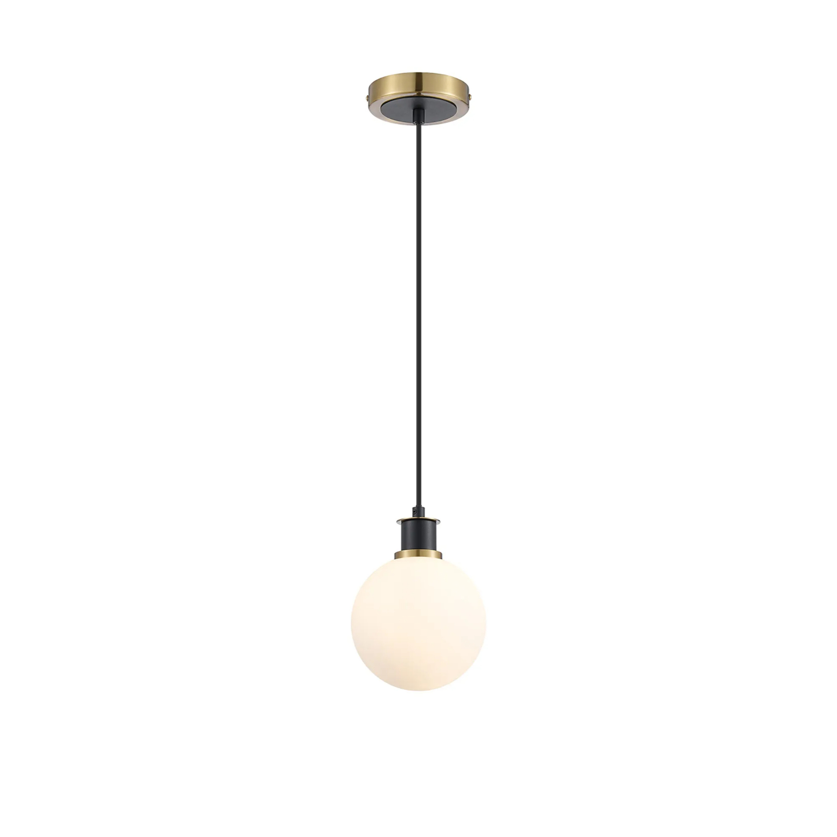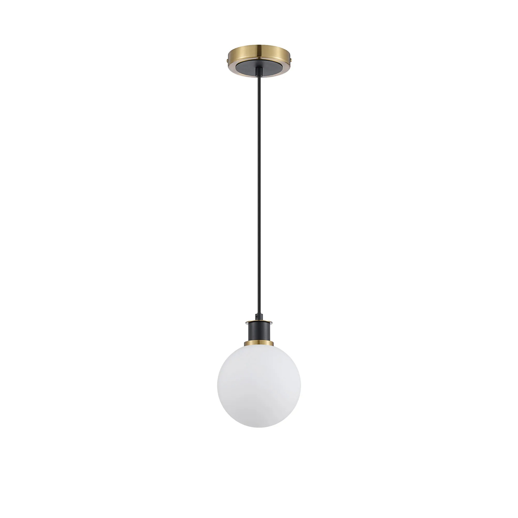 Idolite Haughton IP 1.3m Pendant, 1 x E14 With 15cm Round Glass Shade, Brass, Opal & Satin Black | IDOPO/RB4099