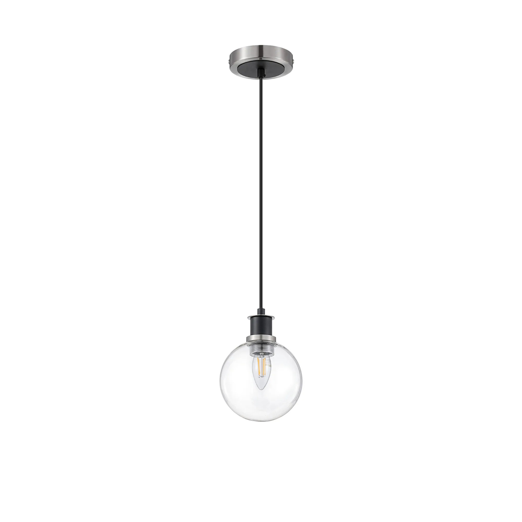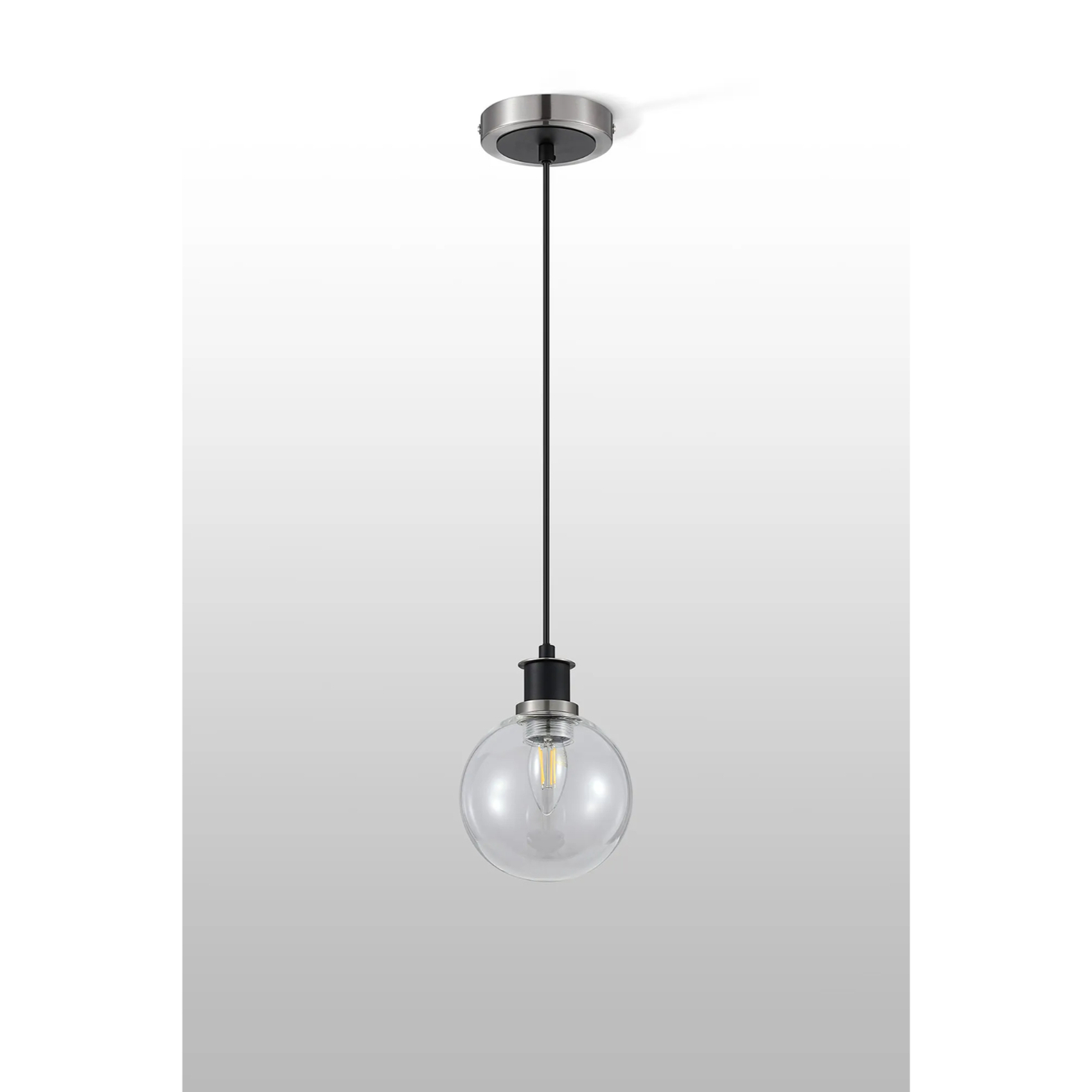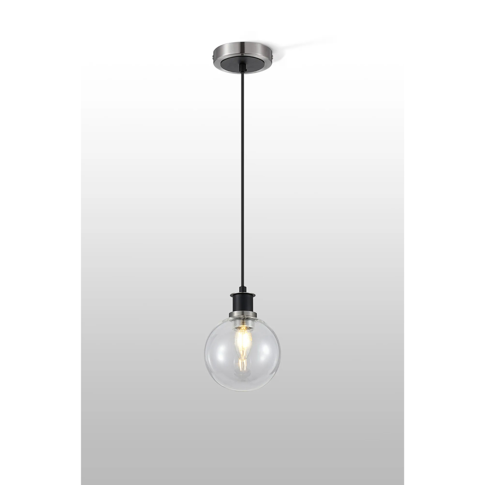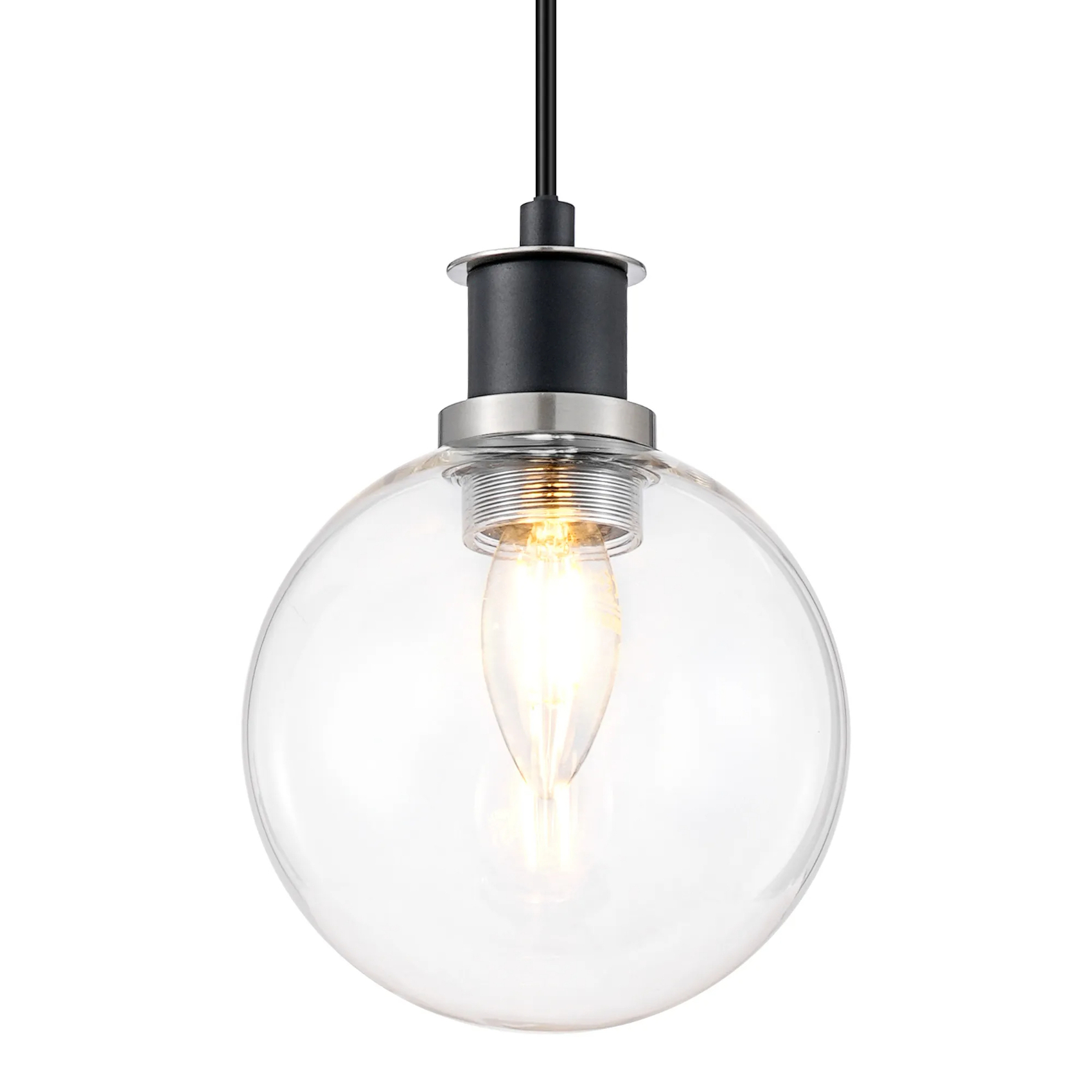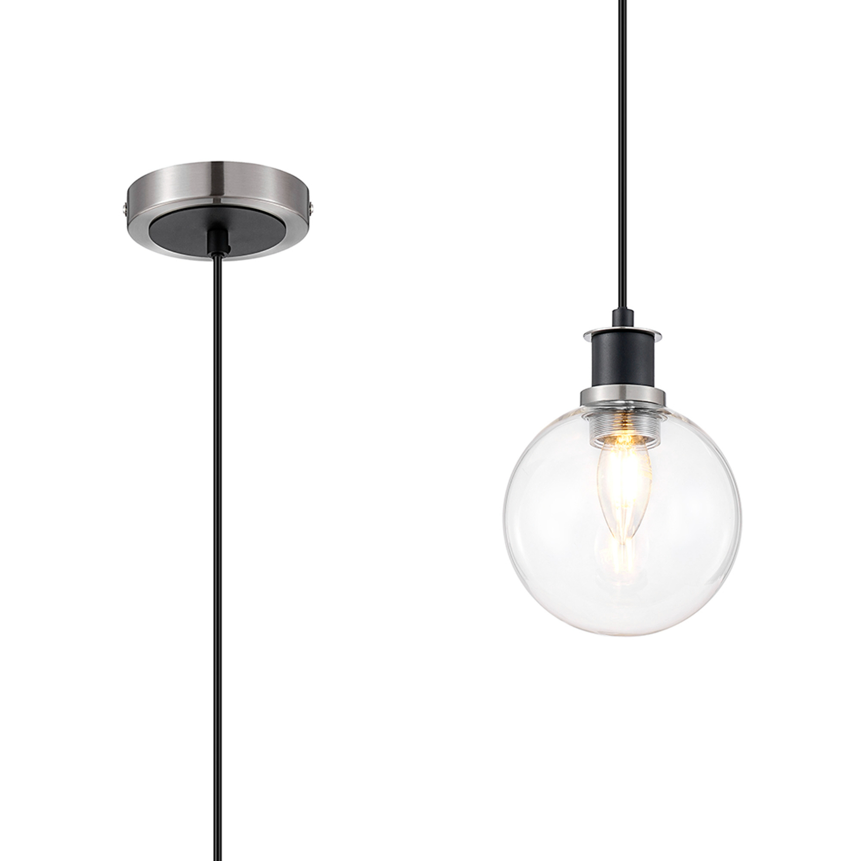 Idolite Haughton IP 1.3m Pendant, 1 x E14 With 15cm Round Glass Shade, Satin Nickel, Clear & Satin Black | IDOLC/NS4099