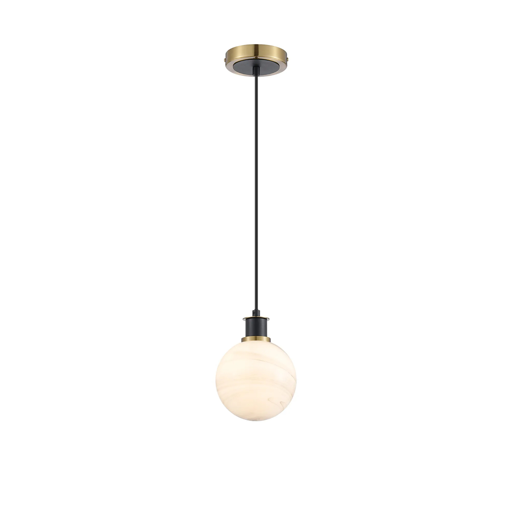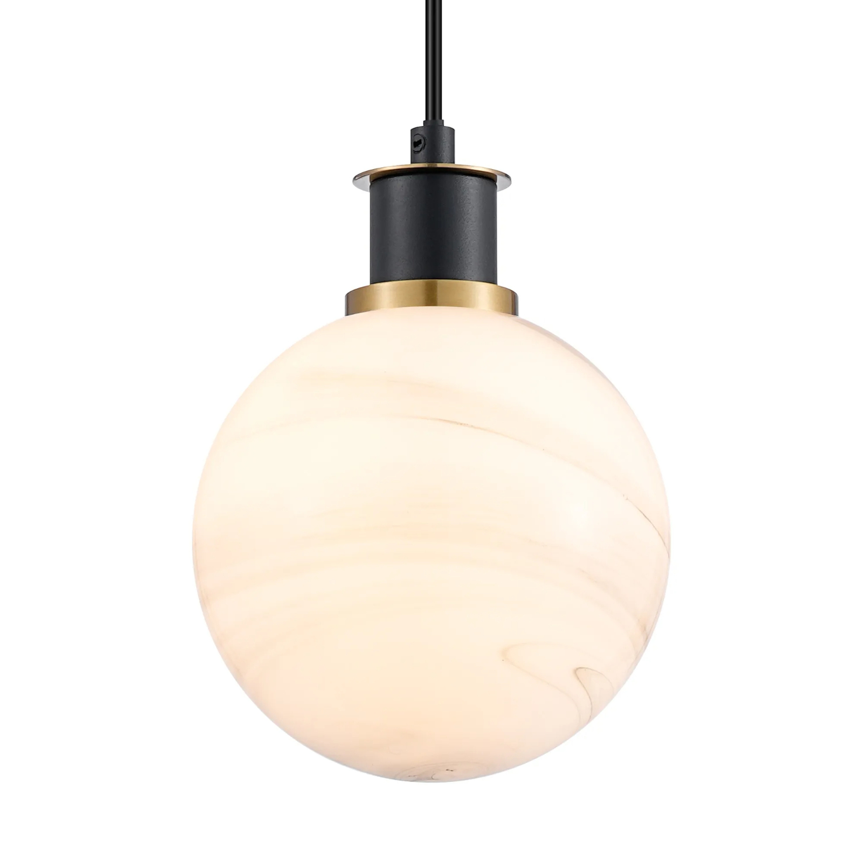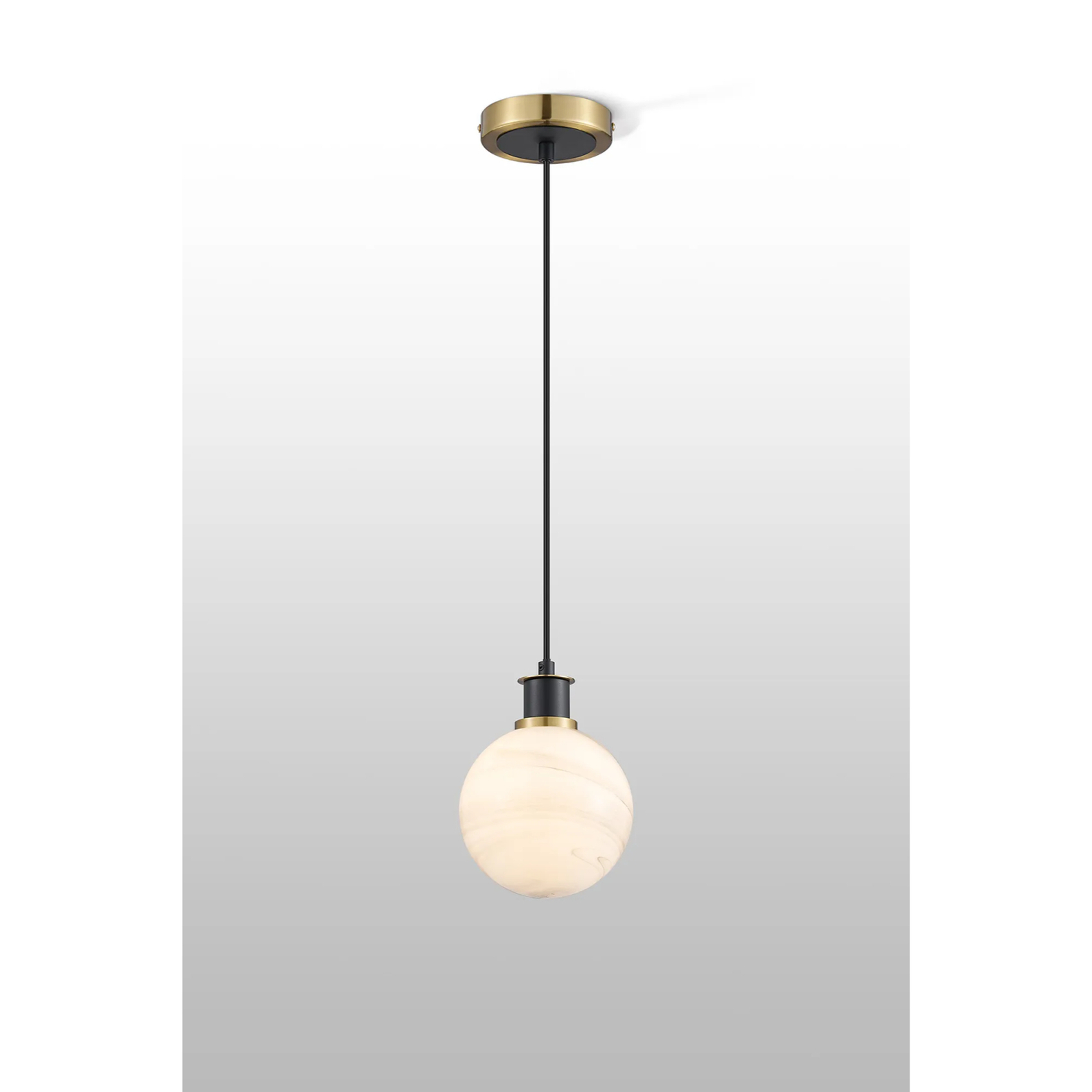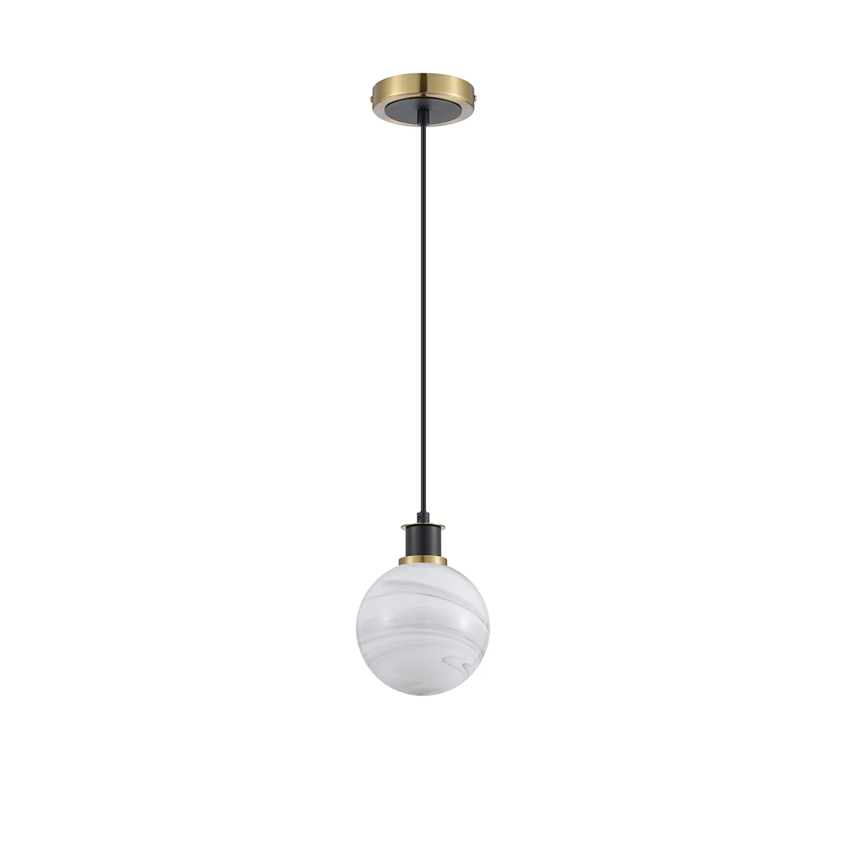 Idolite Haughton IP 1.3m Pendant, 1 x E14 With 15cm Round Marble Effect Glass Shade, Brass, White & Satin Black | IDOYG/HWLBM/RB4099