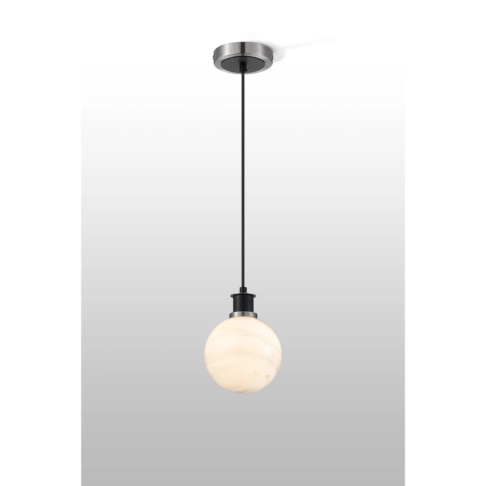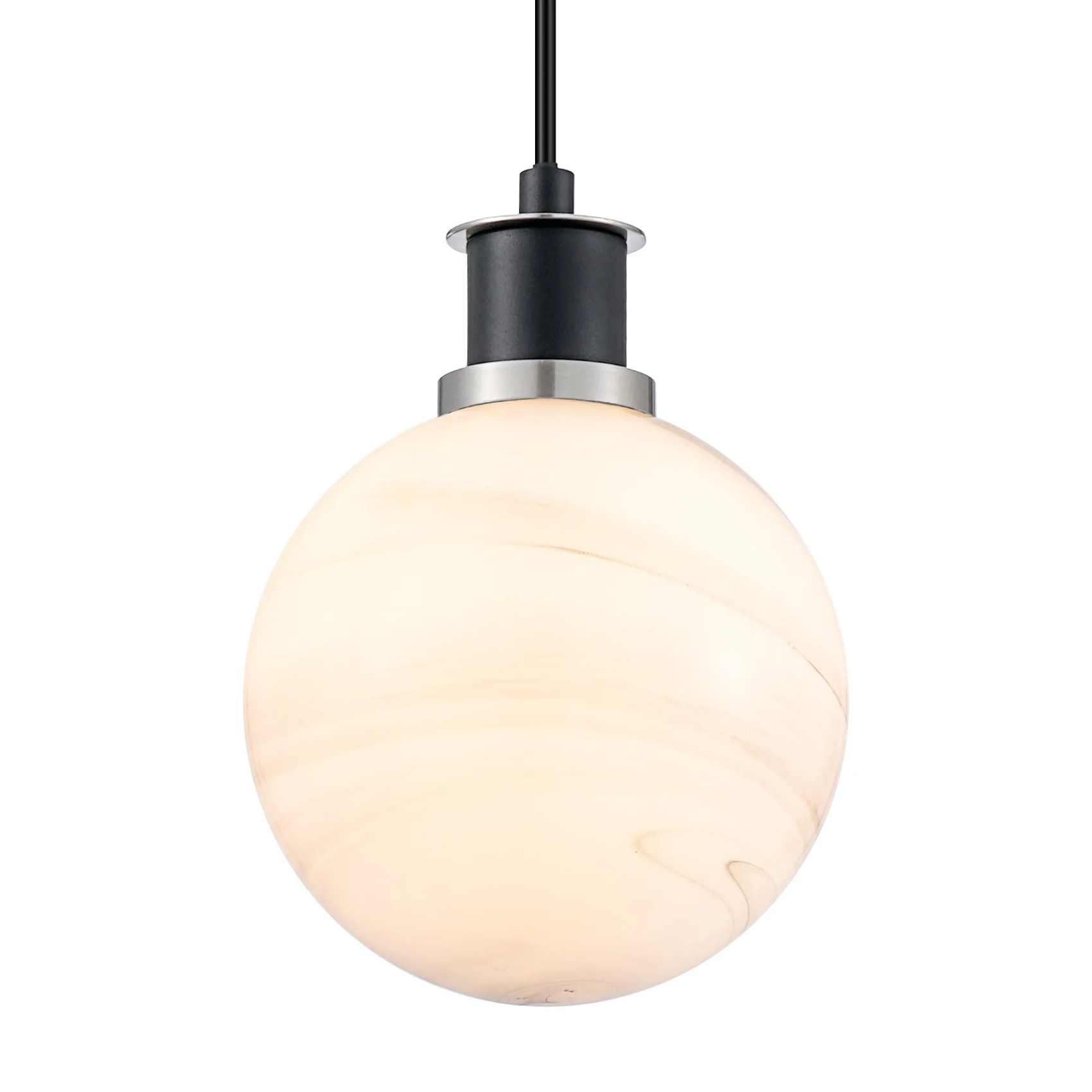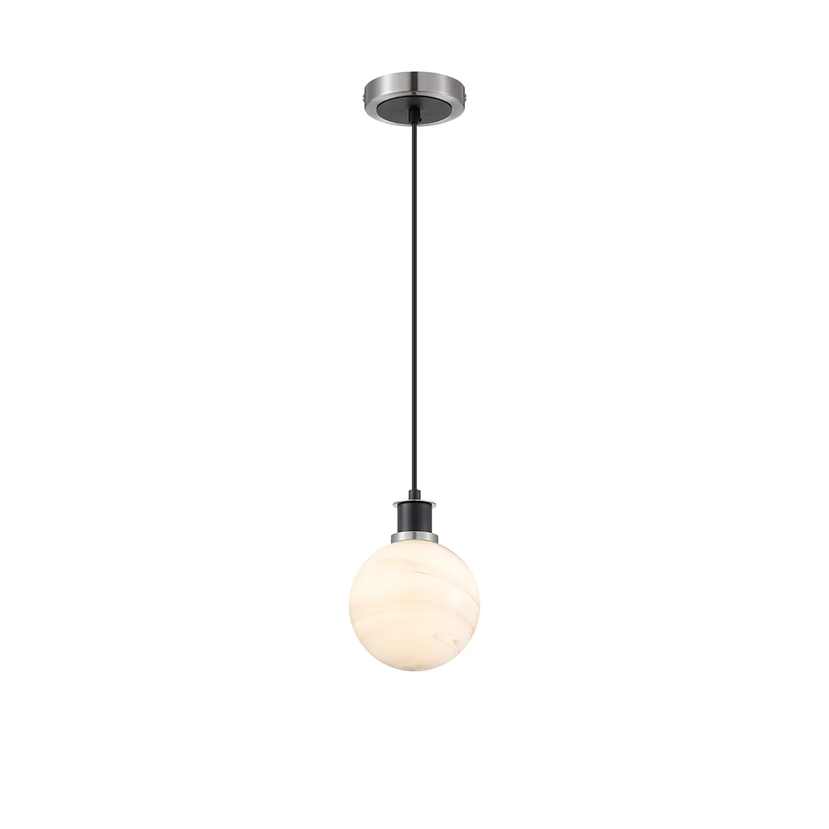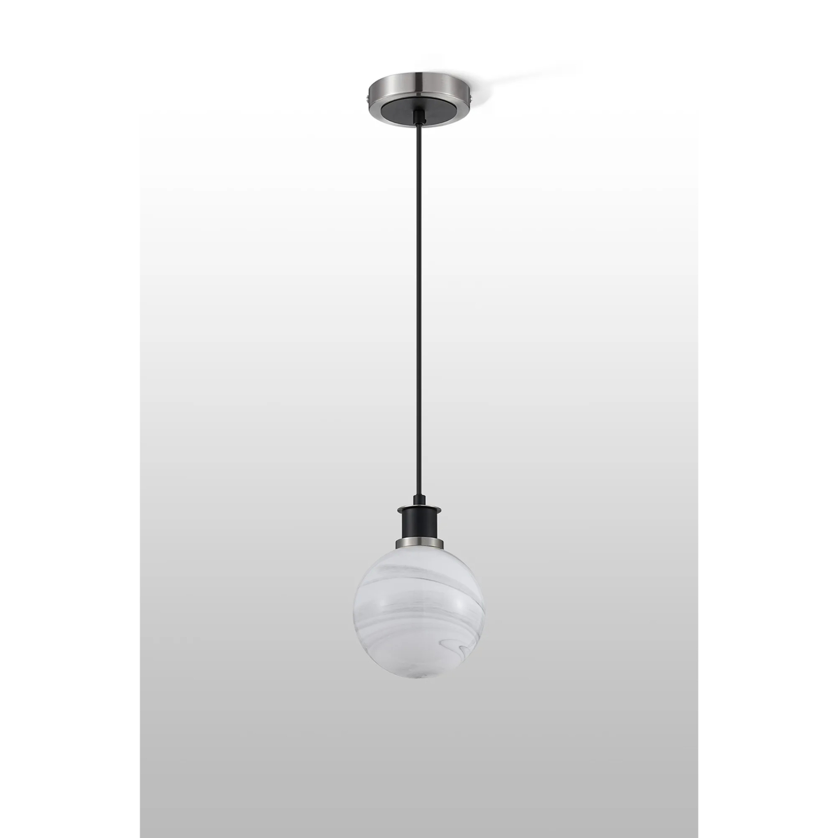 Idolite Haughton IP 1.3m Pendant, 1 x E14 With 15cm Round Marble Effect Glass Shade, Satin Nickel, White & Satin Black | IDOYG/HWLBM/NS4099