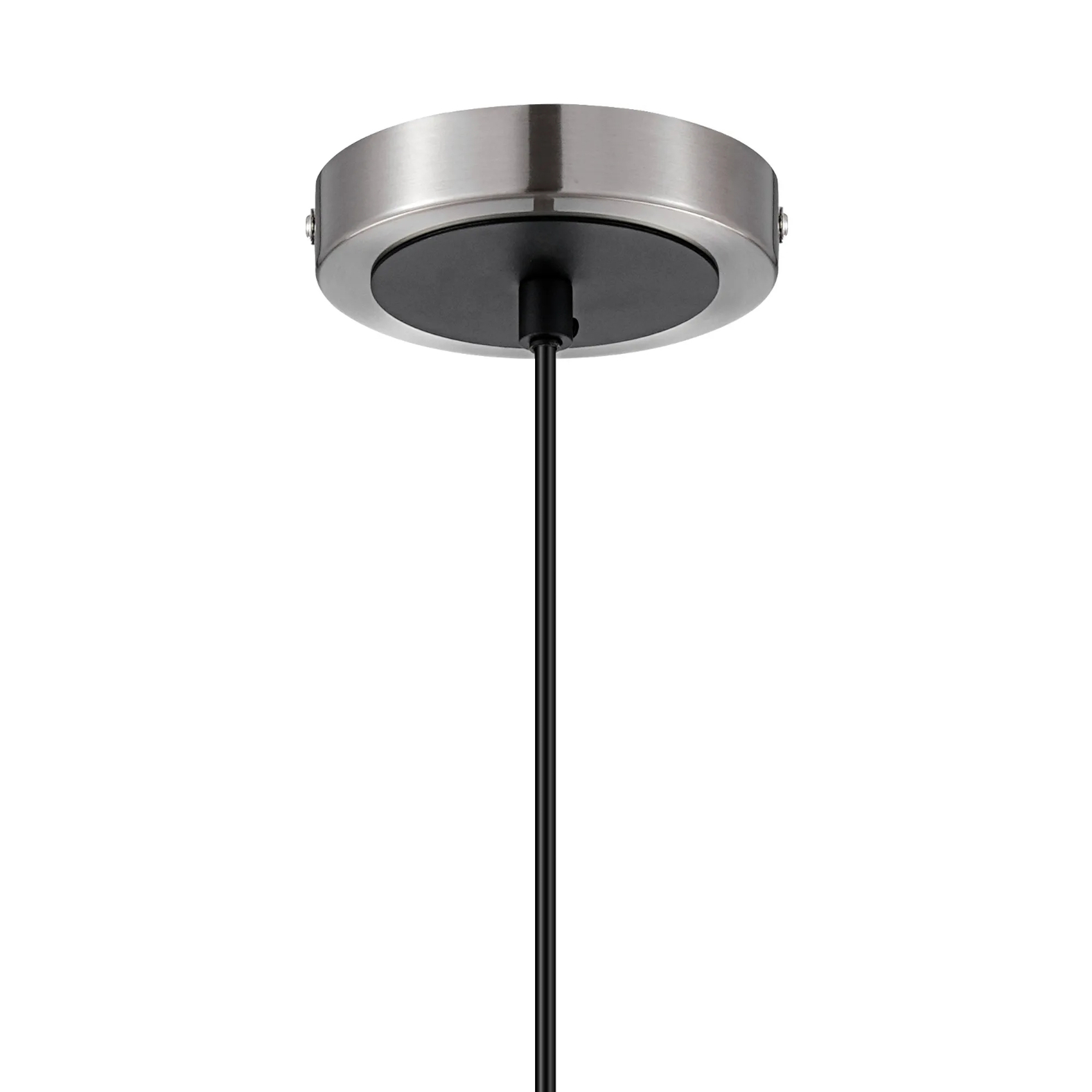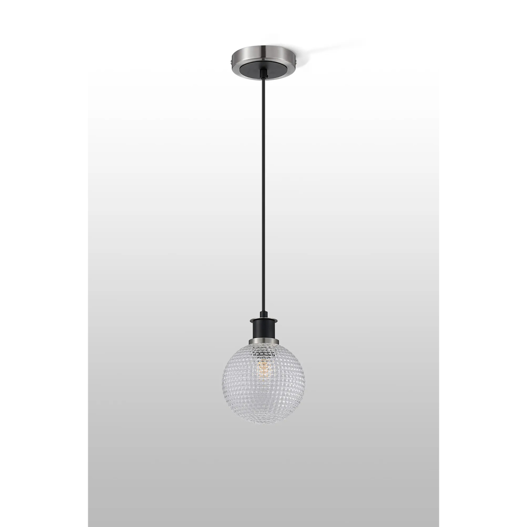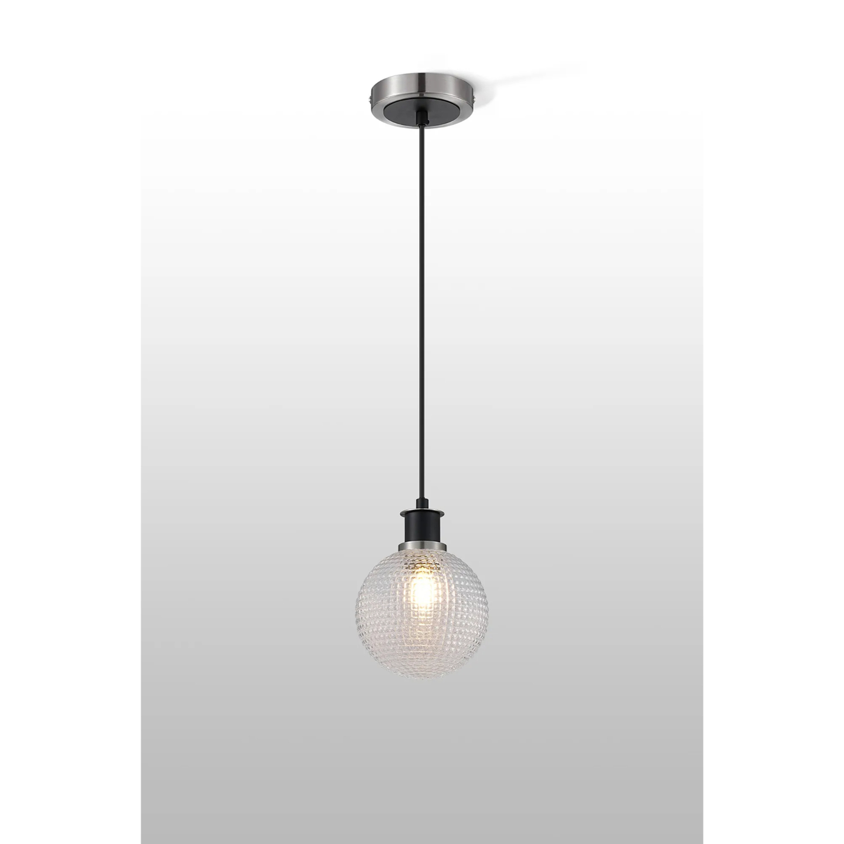 Idolite Haughton IP 1.3m Pendant, 1 x E14 With 15cm Round Textured Diamond Pattern Glass Shade, Satin Nickel, Clear & Satin Black | IDOLCAID/NS4099