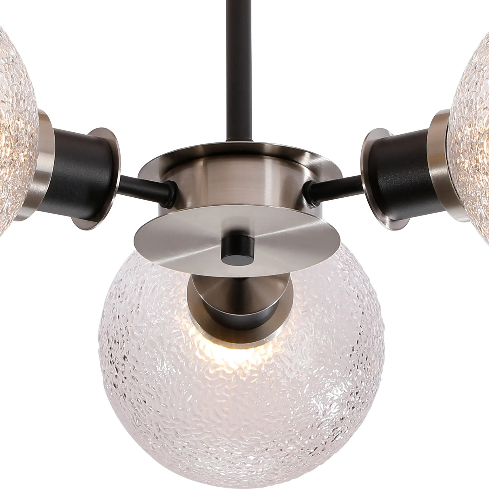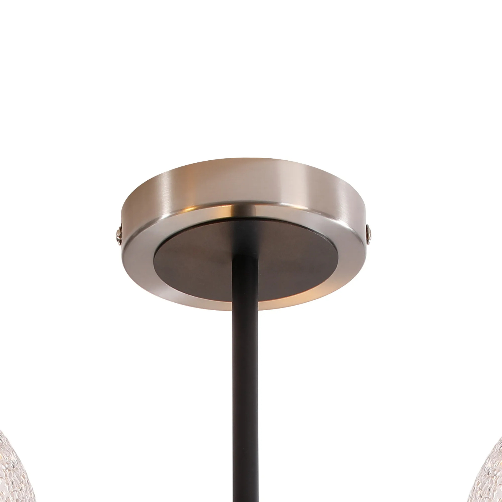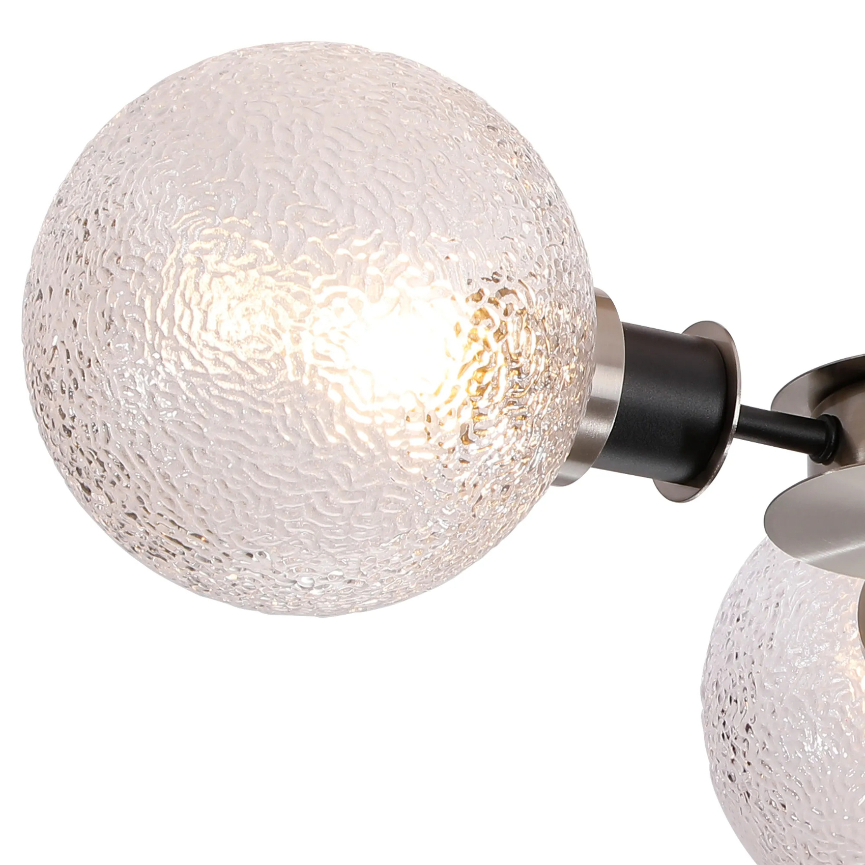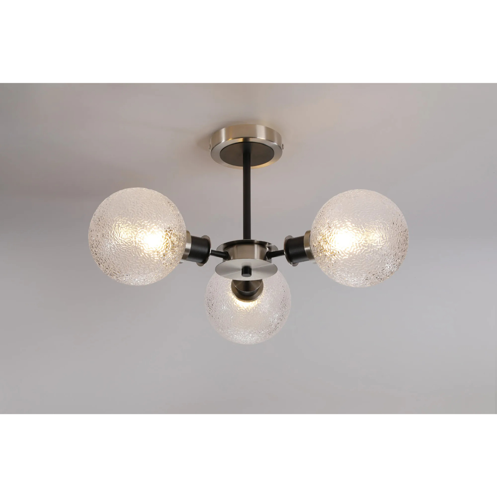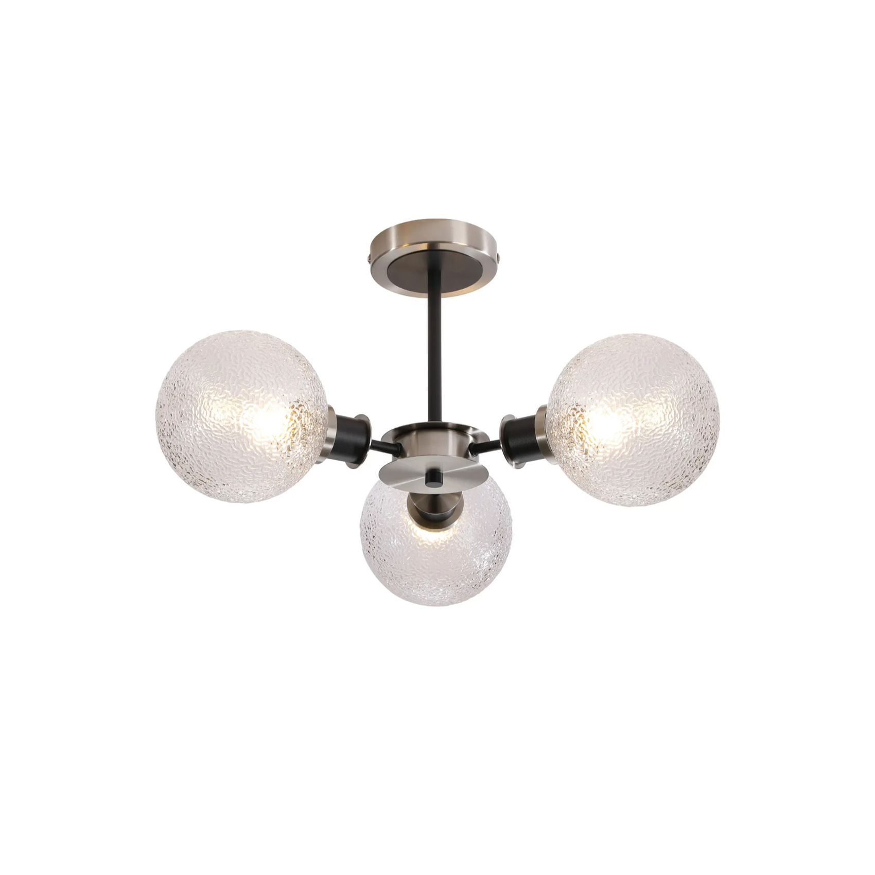 Idolite Haughton IP Semi Ceiling, 3 x E14 With 15cm Round Dimpled Glass Shade, Satin Nickel, Clear & Satin Black | IDOLCPMD/NS5099