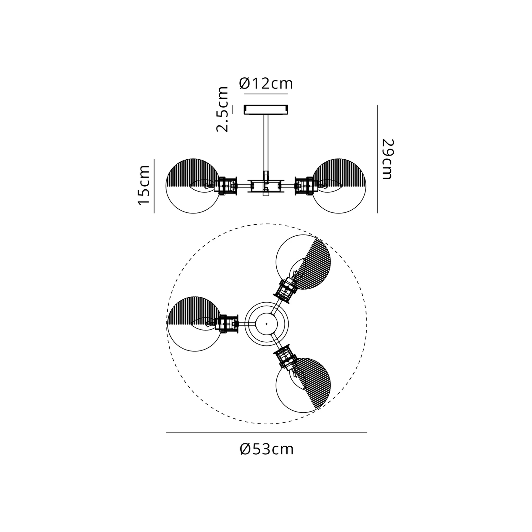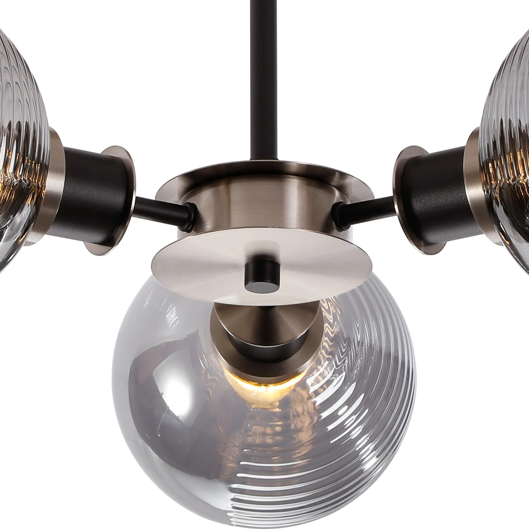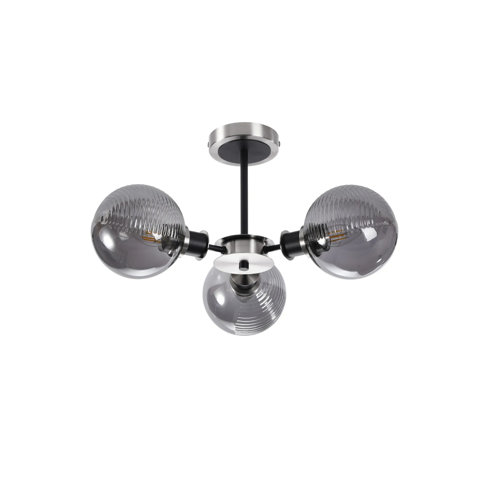Idolite Haughton IP Semi Ceiling, 3 x E14 With 15cm Round Double Textured Smooth/Ribbed Glass Shade, Satin Nickel, Smoke Plated & Satin Black | IDOMSBRS/NS5099