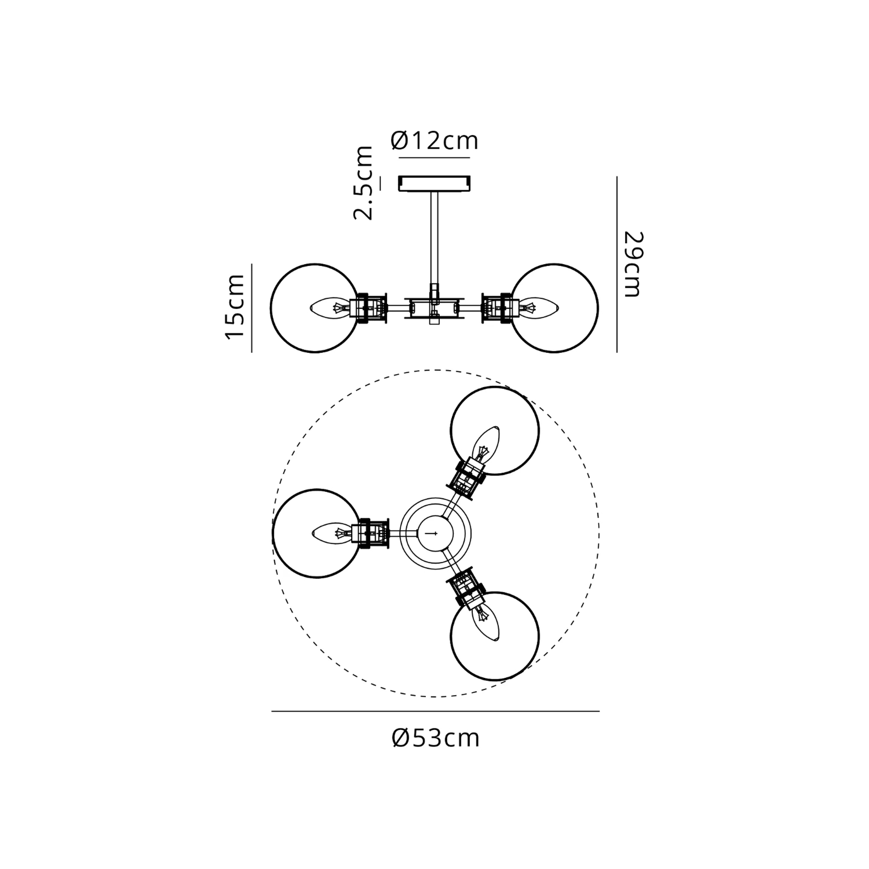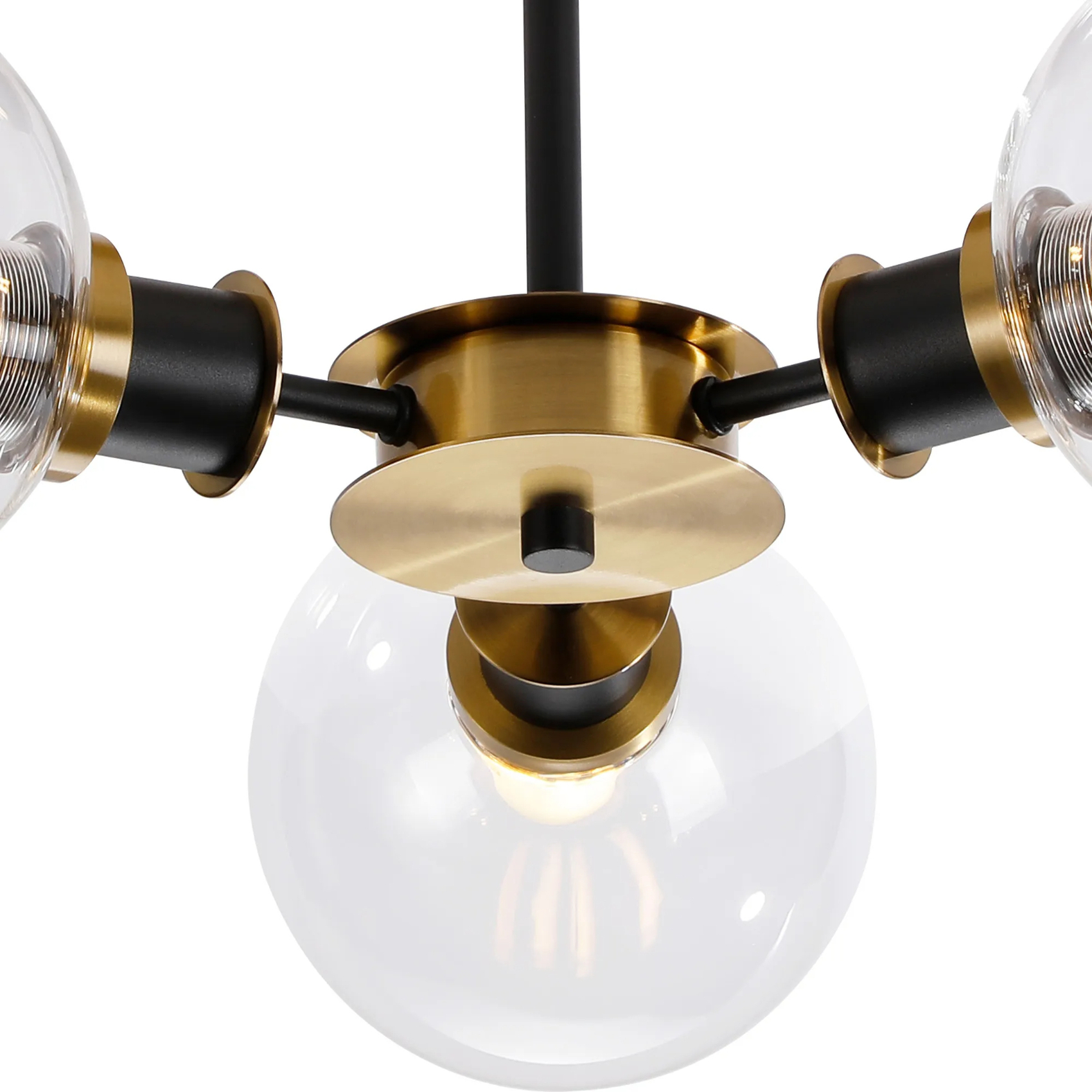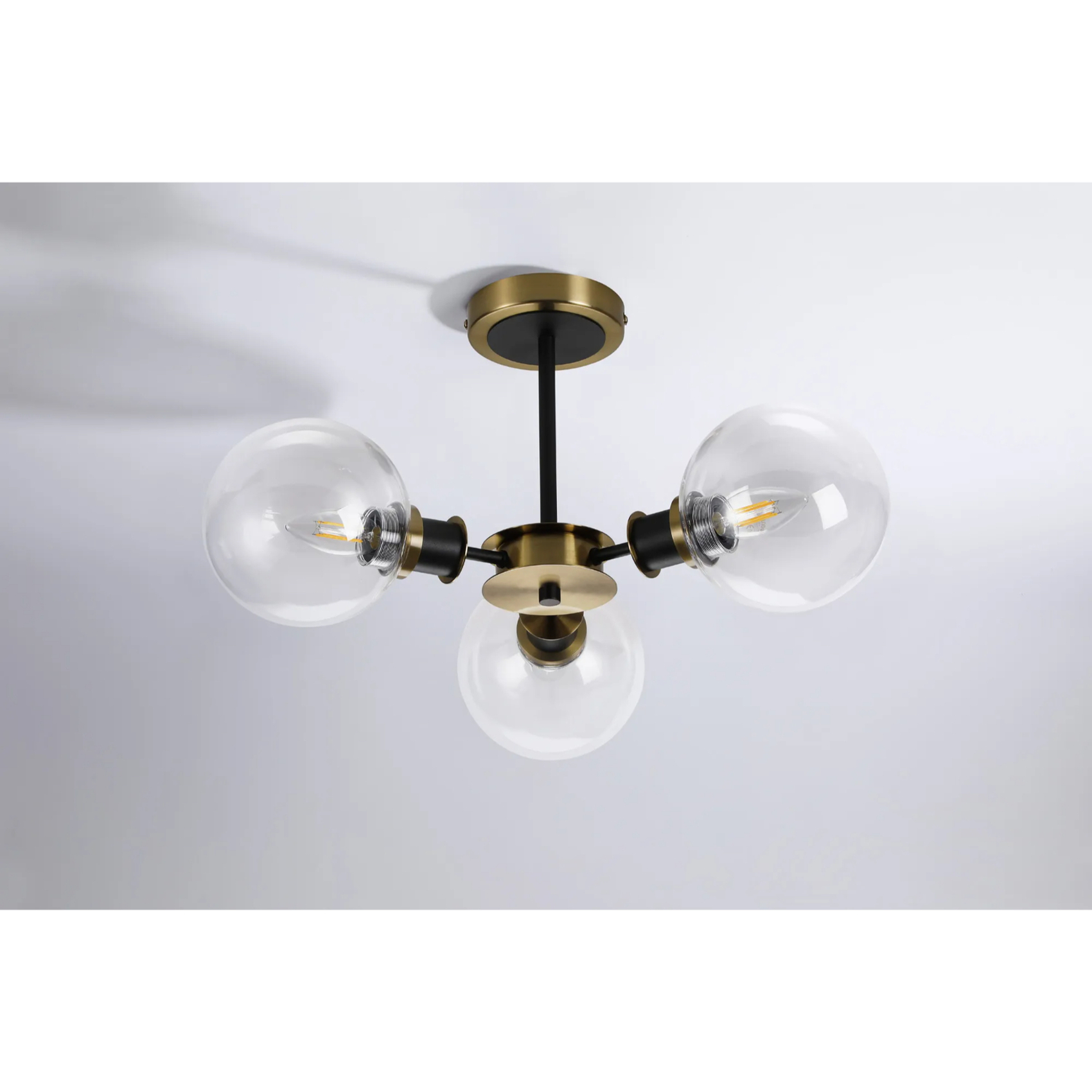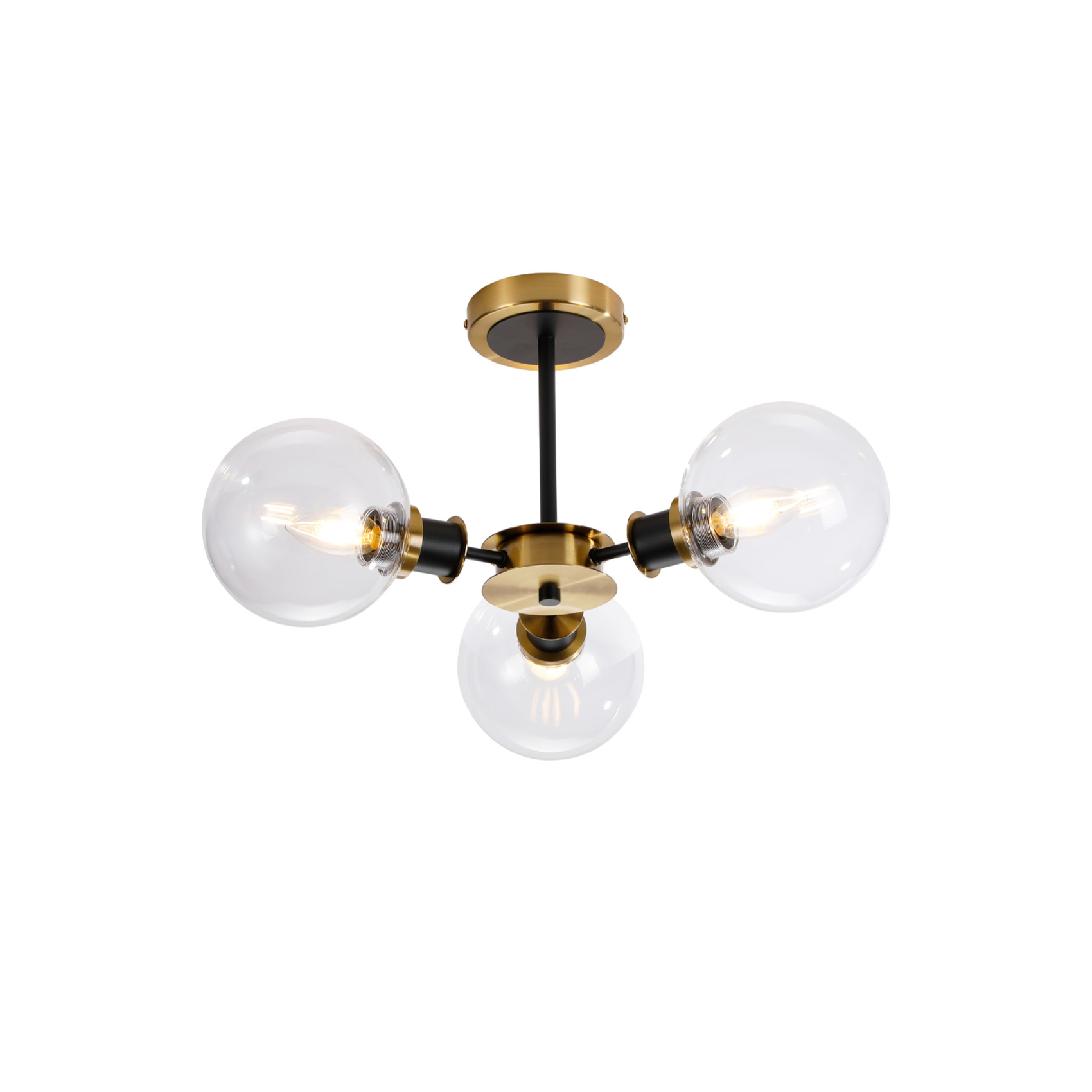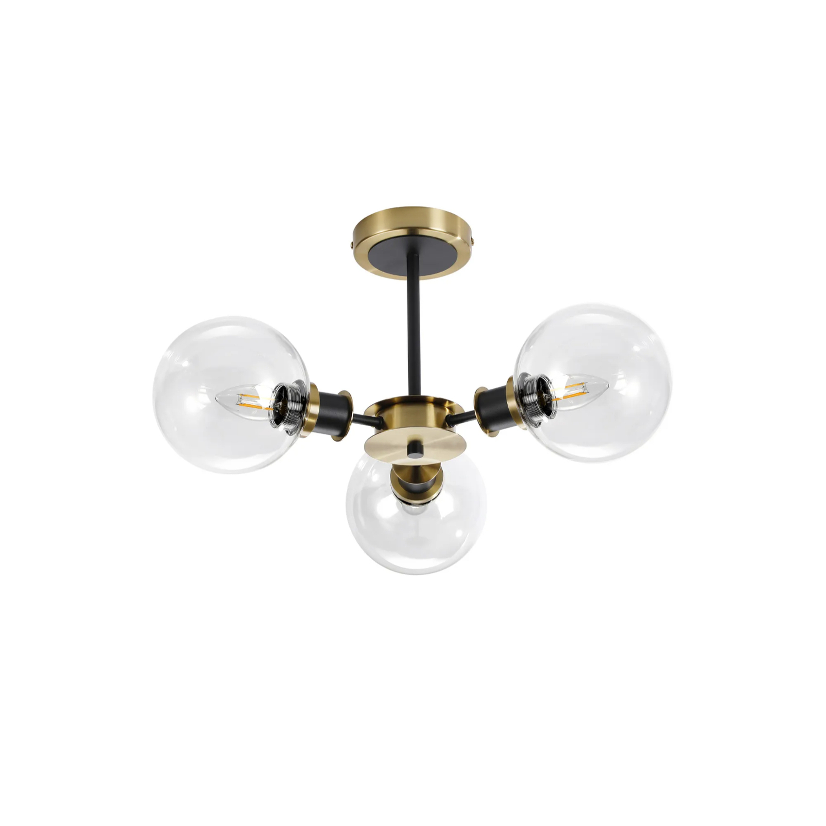 Idolite Haughton IP Semi Ceiling, 3 x E14 With 15cm Round Glass Shade, Brass, Clear & Satin Black | IDOLC/RB5099