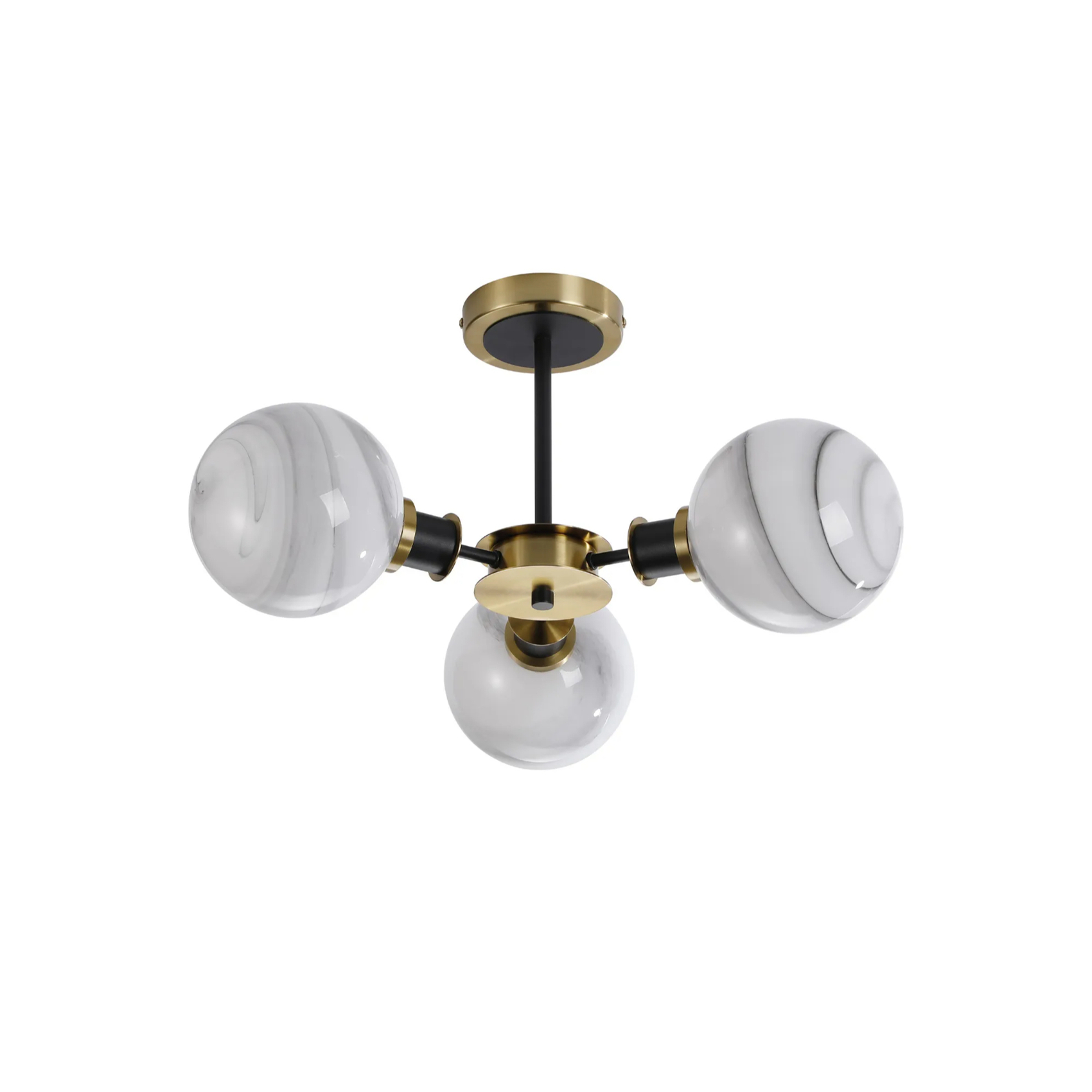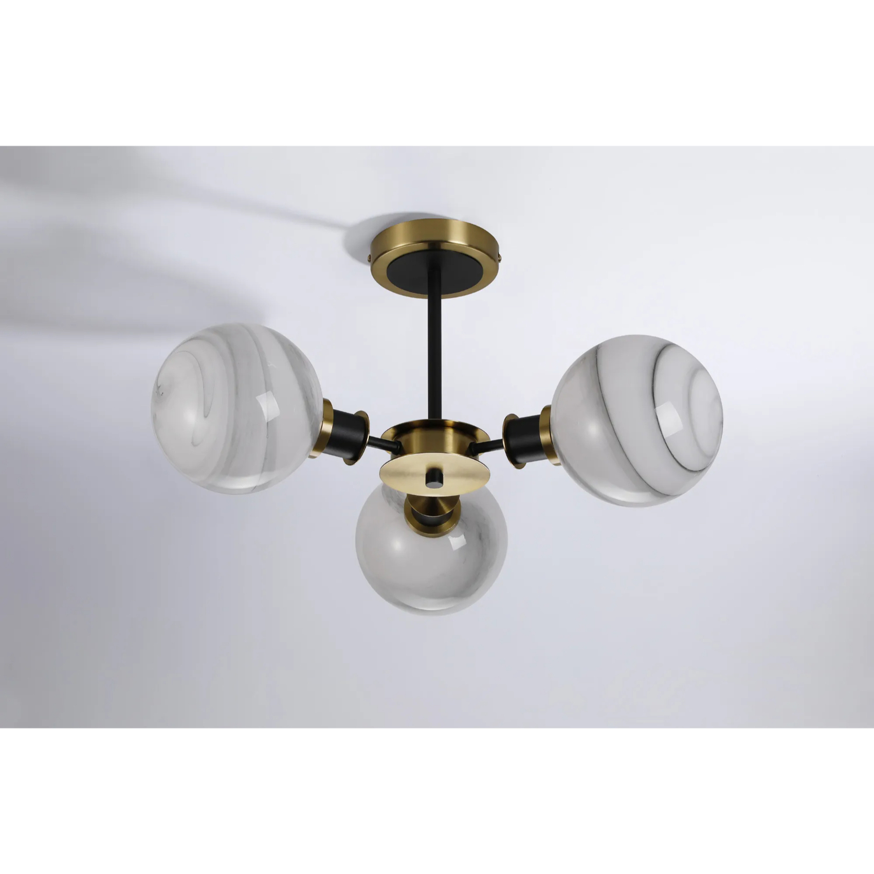 Idolite Haughton IP Semi Ceiling, 3 x E14 With 15cm Round Marble Effect Glass Shade, Brass, White & Satin Black | IDOYG/HWLBM/RB5099