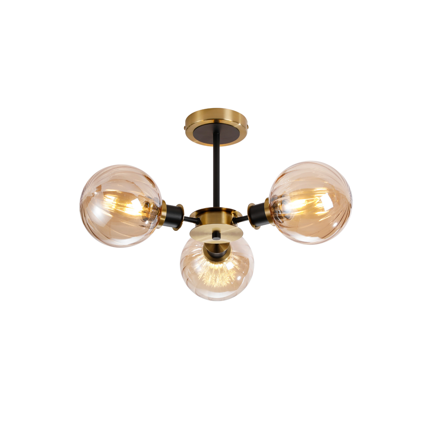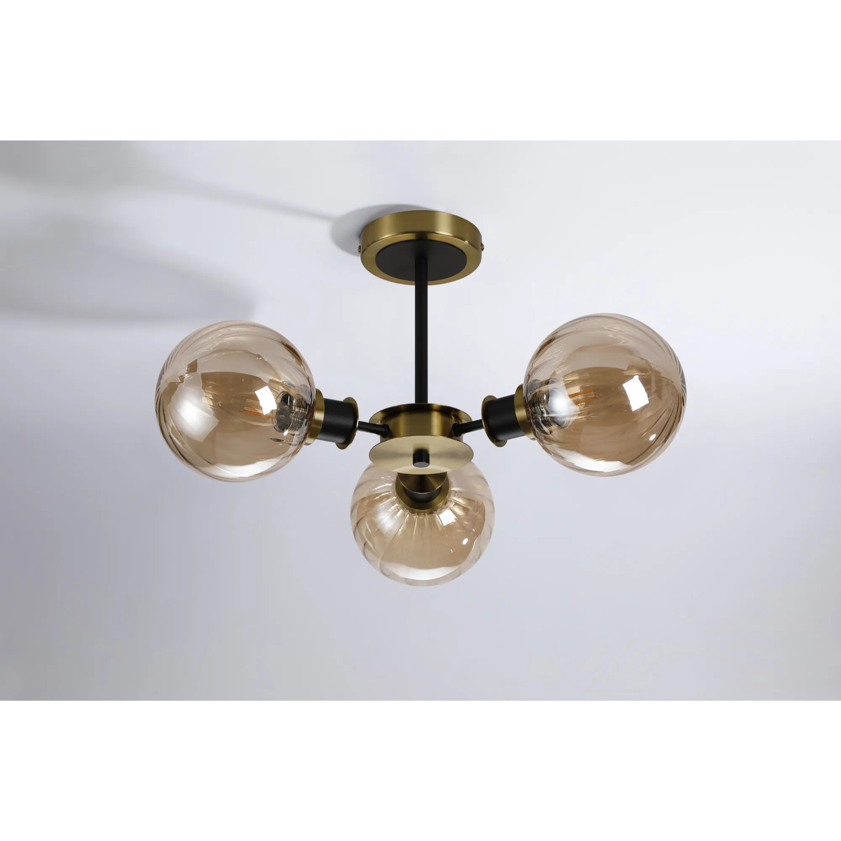 Idolite Haughton IP Semi Ceiling, 3 x E14 With 15cm Round Segment Glass Shade, Brass, Amber Plated & Satin Black | IDOMAGES/RB5099