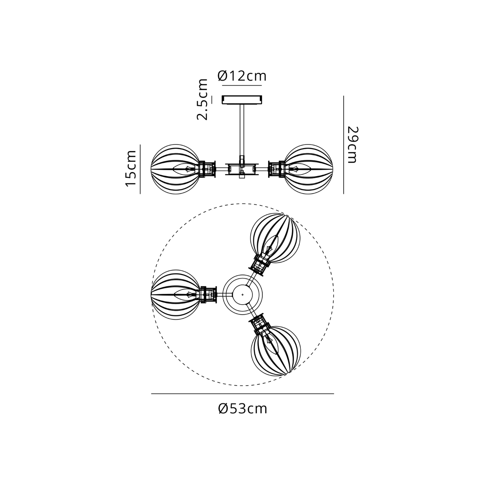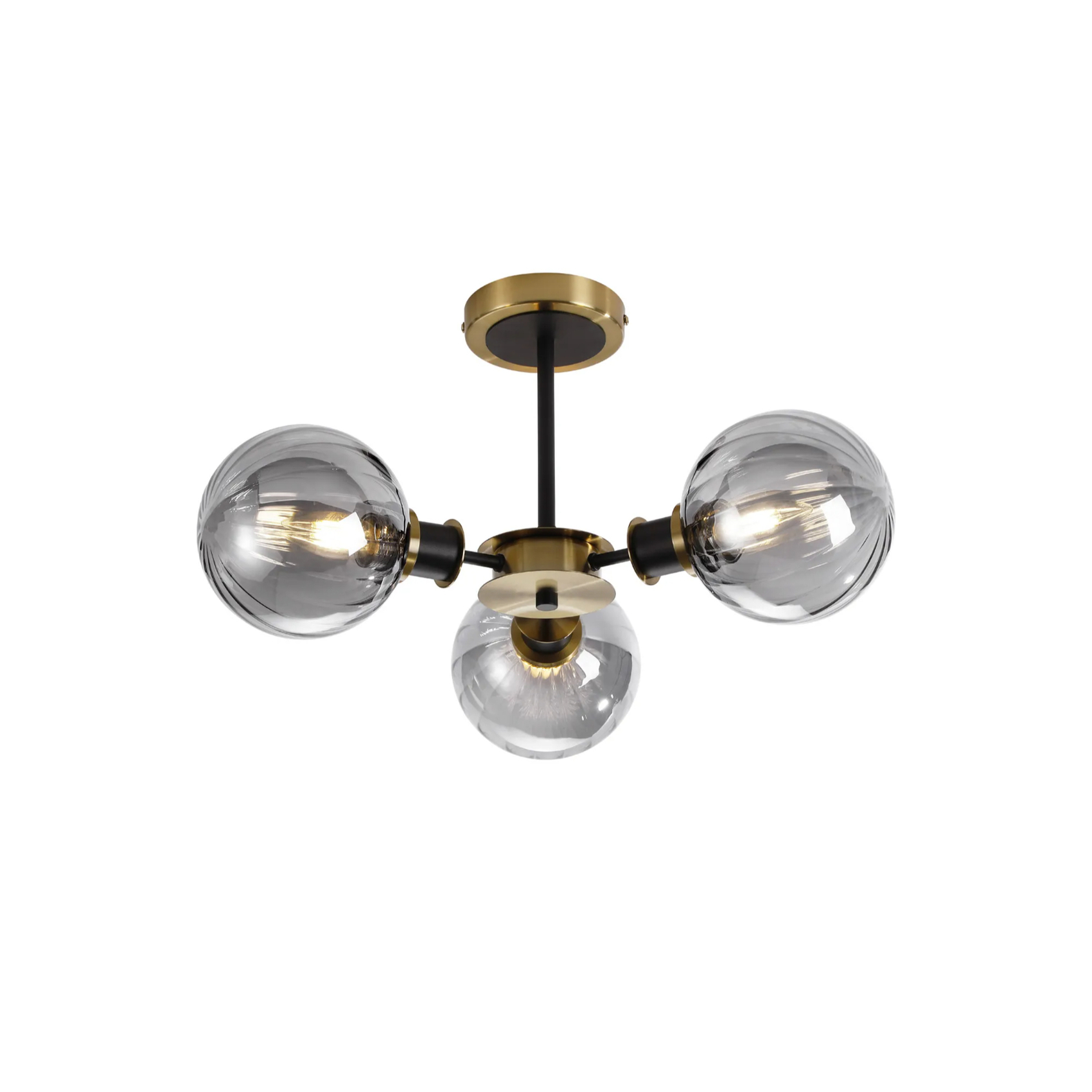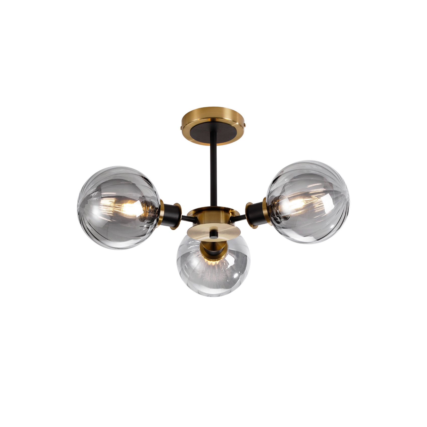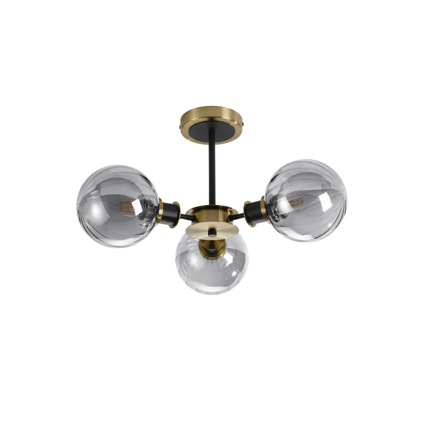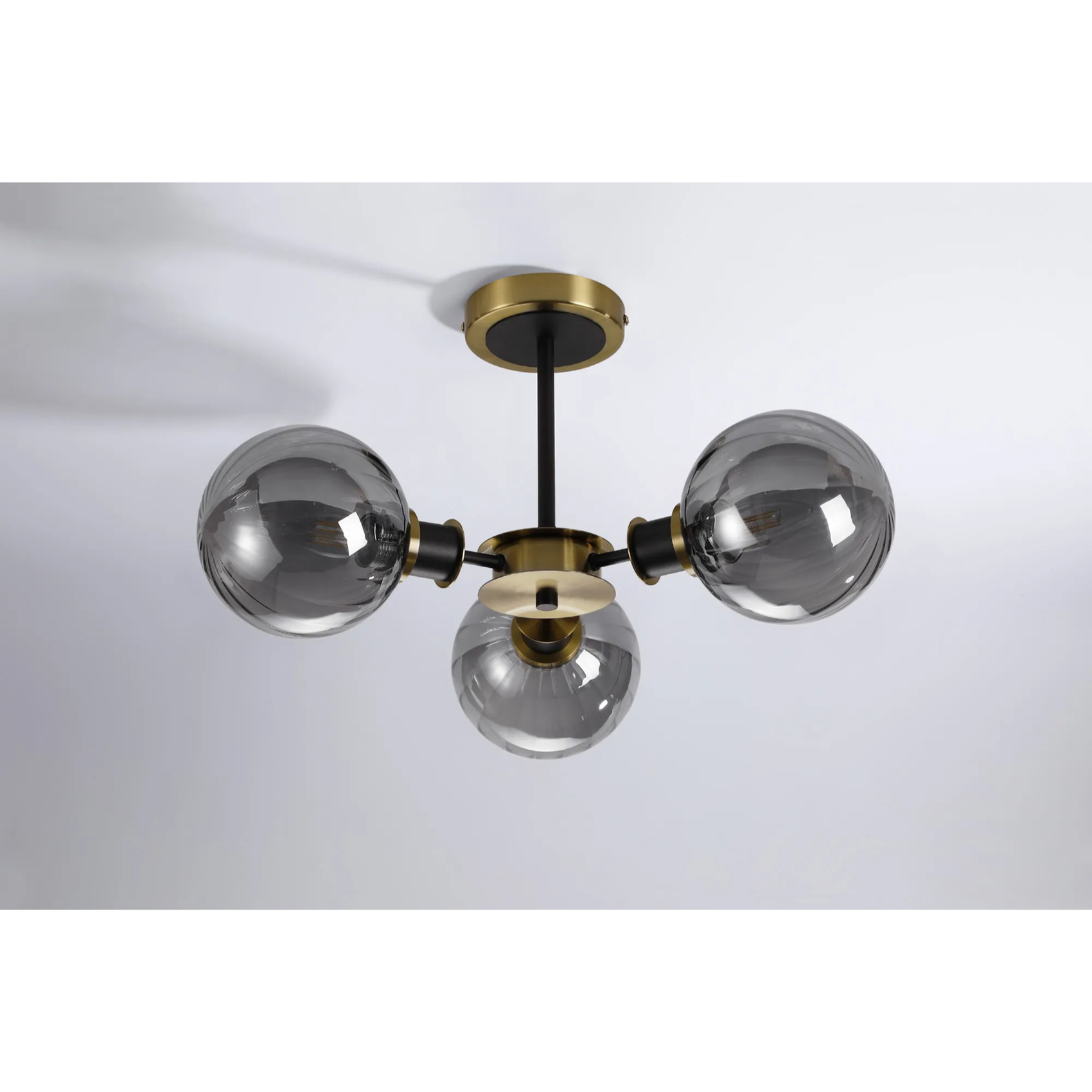 Idolite Haughton IP Semi Ceiling, 3 x E14 With 15cm Round Segment Glass Shade, Brass, Smoke Plated & Satin Black | IDOMSGES/RB5099