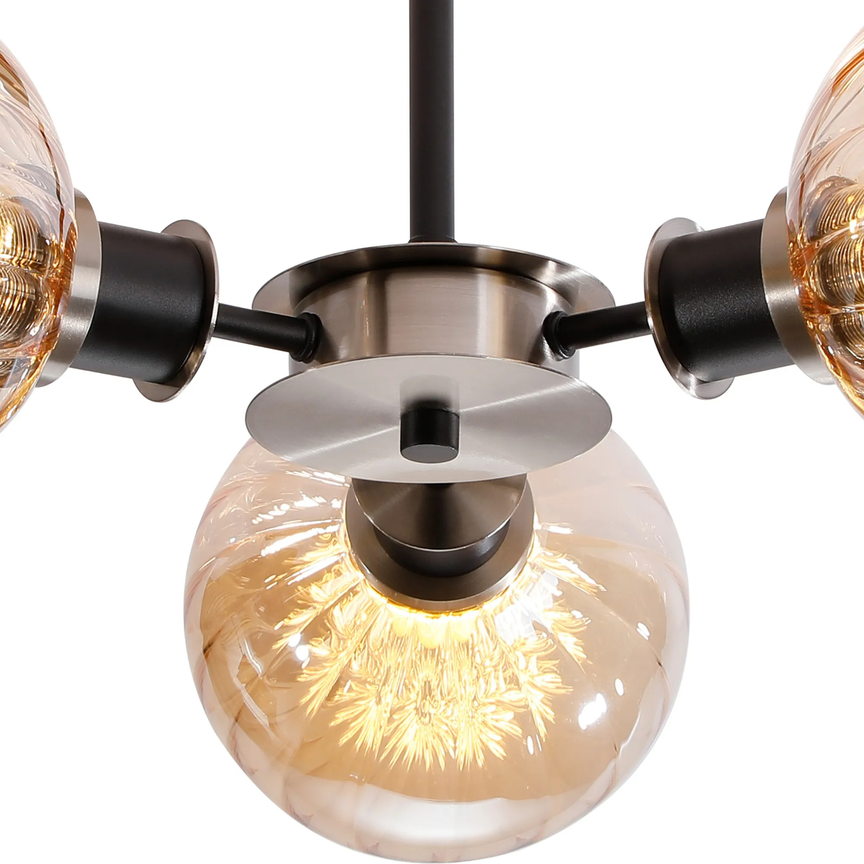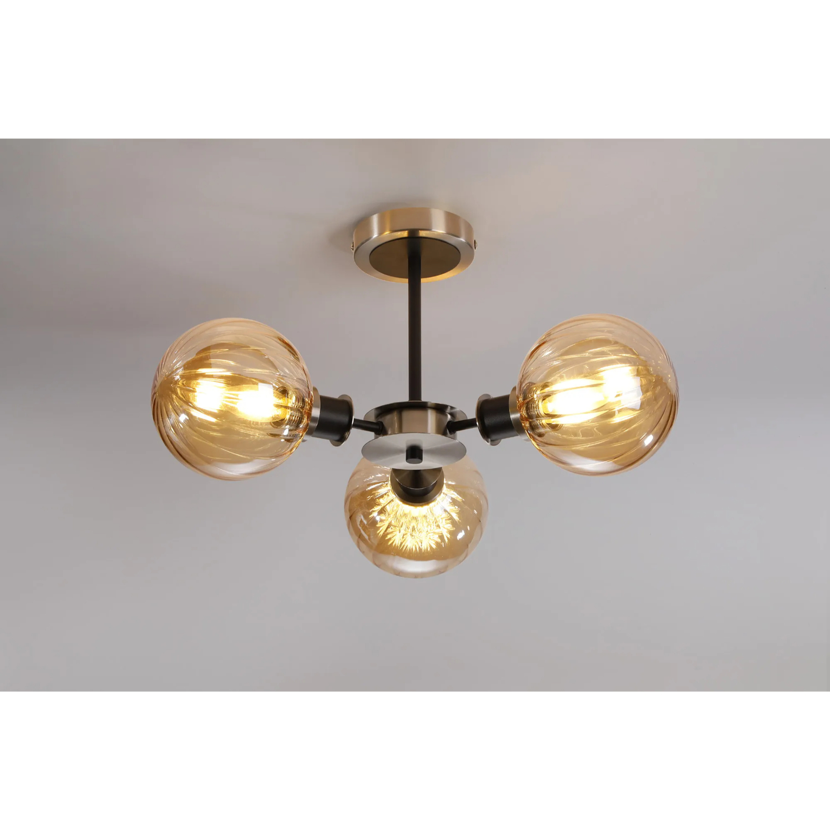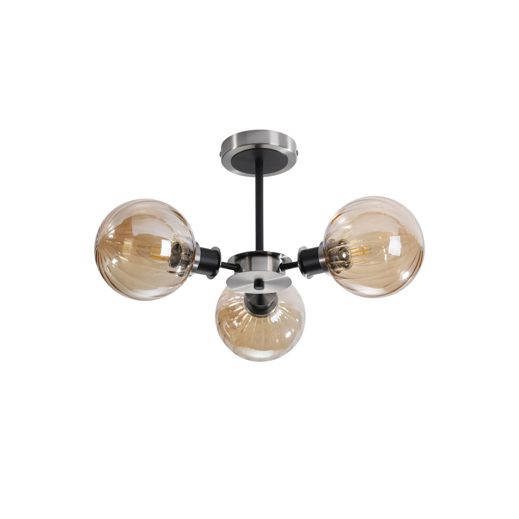 Idolite Haughton IP Semi Ceiling, 3 x E14 With 15cm Round Segment Glass Shade, Satin Nickel, Amber Plated & Satin Black | IDOMAGES/NS5099