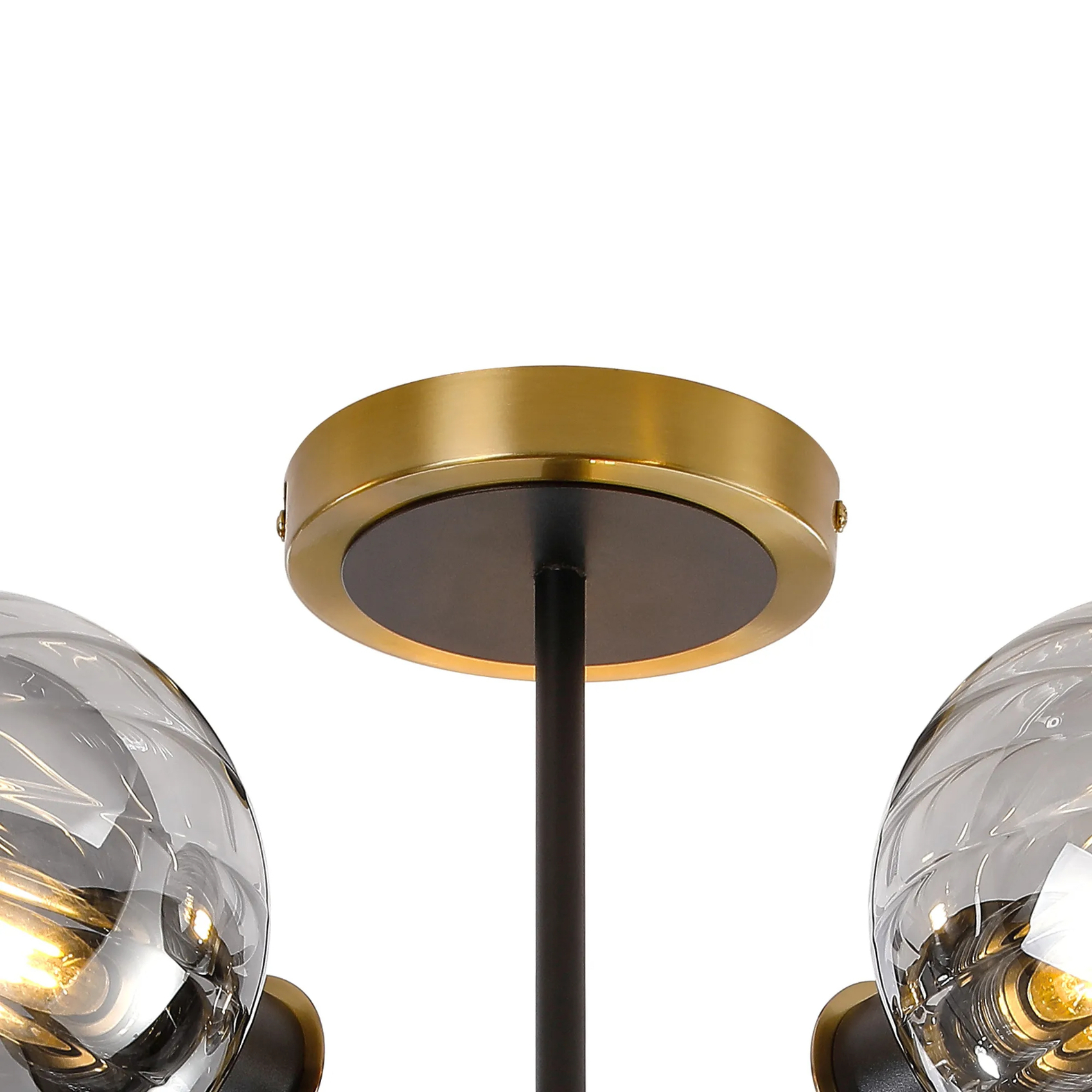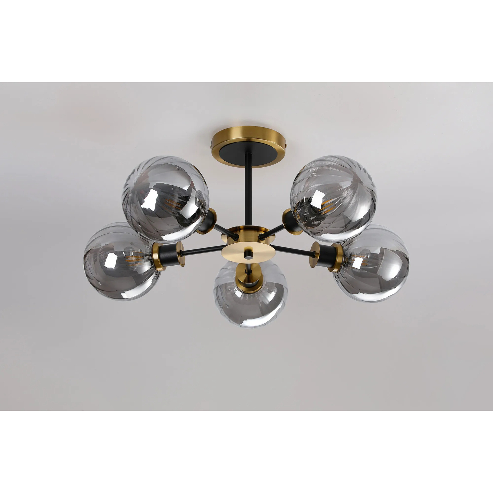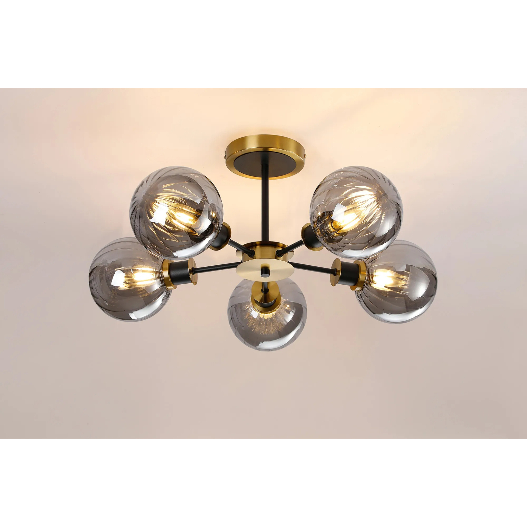 Idolite Haughton IP Semi Ceiling, 5 x E14 With 15cm Round Segment Glass Shade, Brass, Smoke Plated & Satin Black | IDOMSGES/RB6099