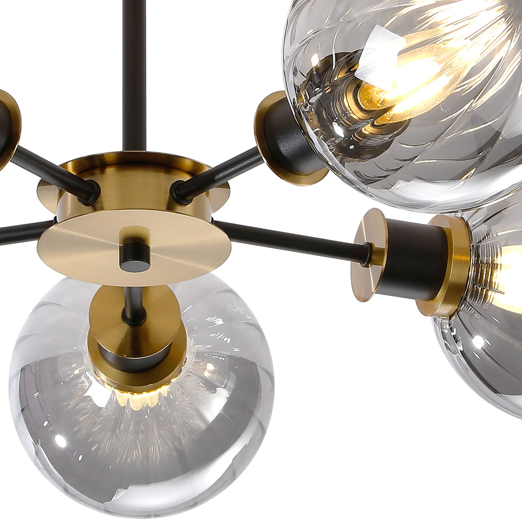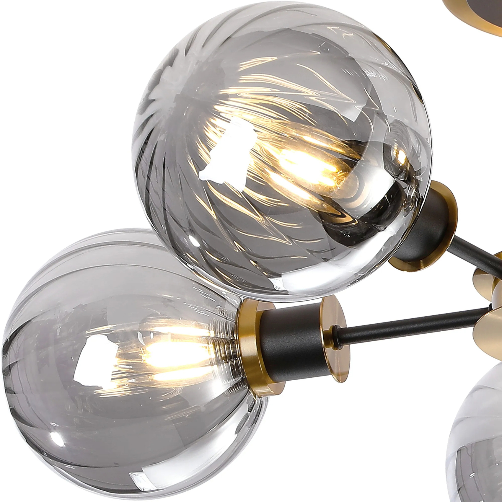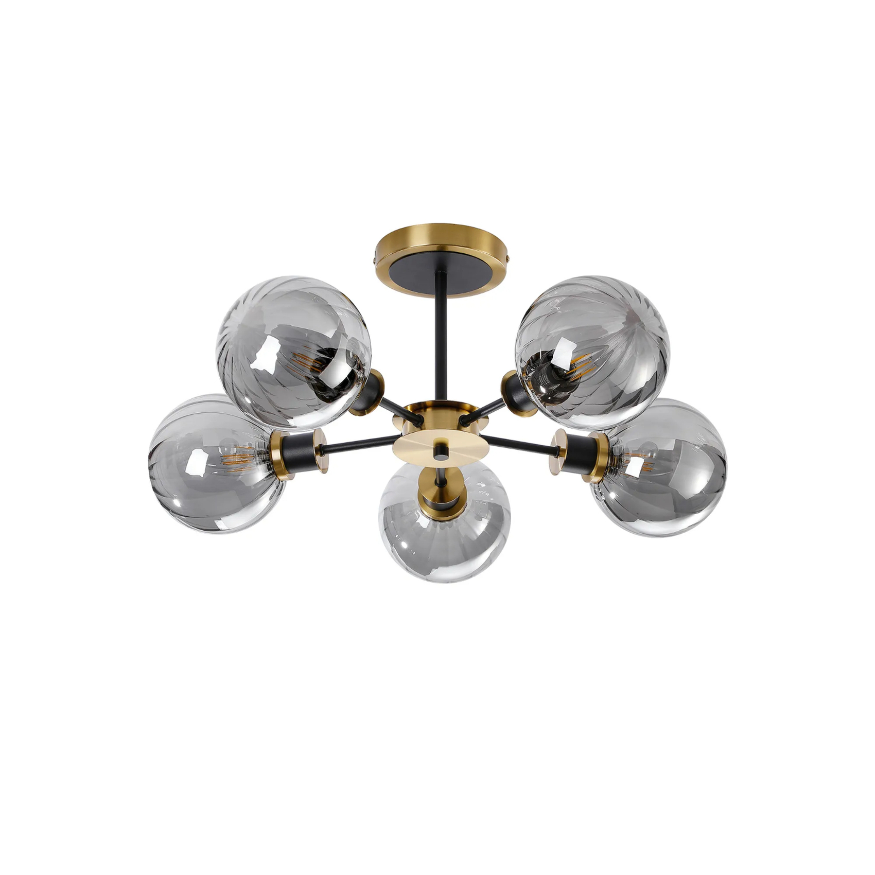 Idolite Haughton IP Semi Ceiling, 5 x E14 With 15cm Round Segment Glass Shade, Brass, Smoke Plated & Satin Black | IDOMSGES/RB6099