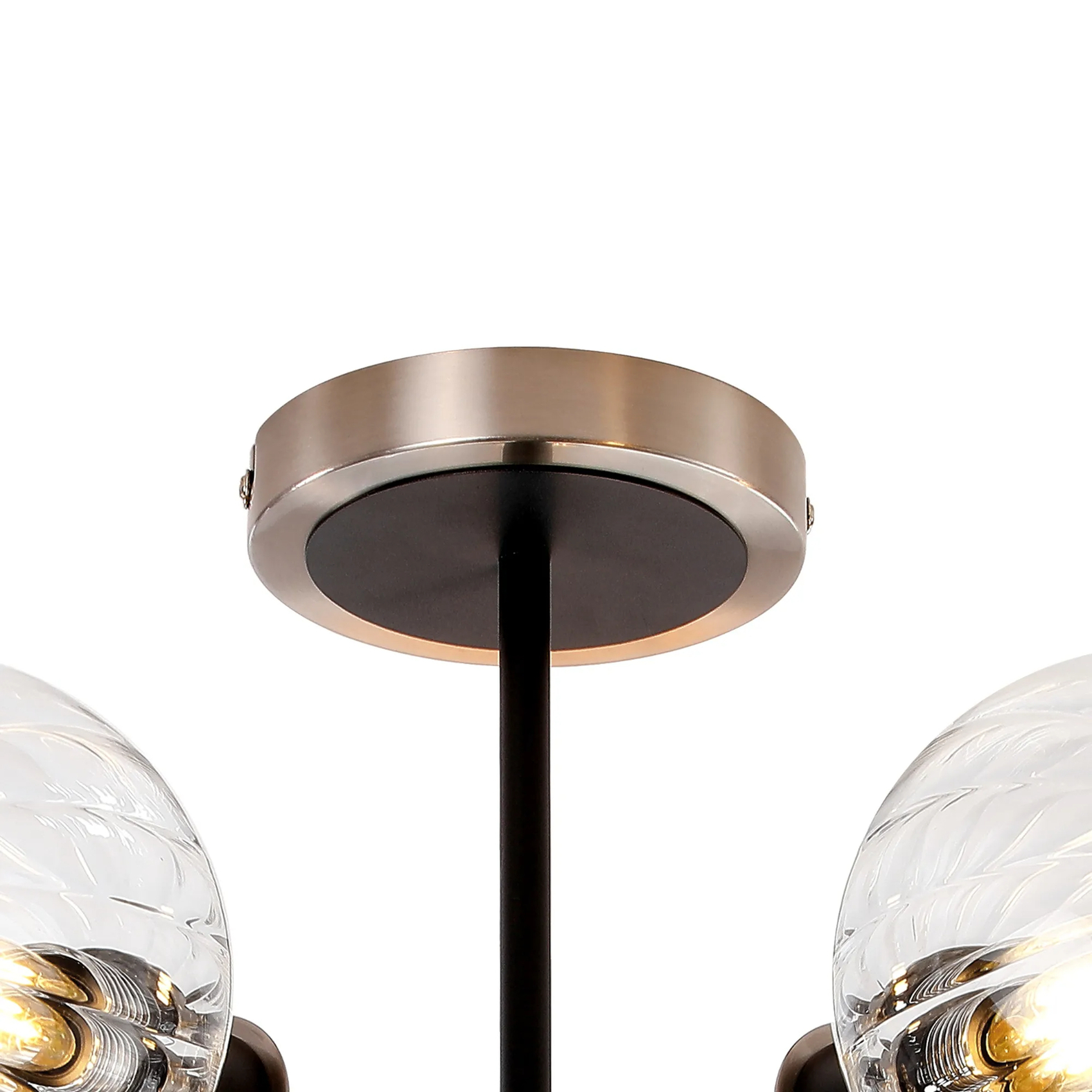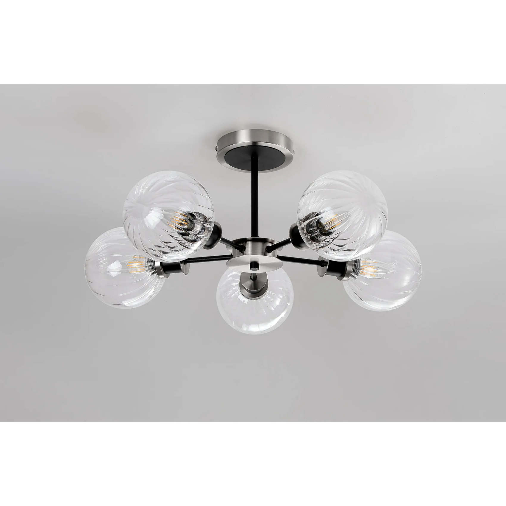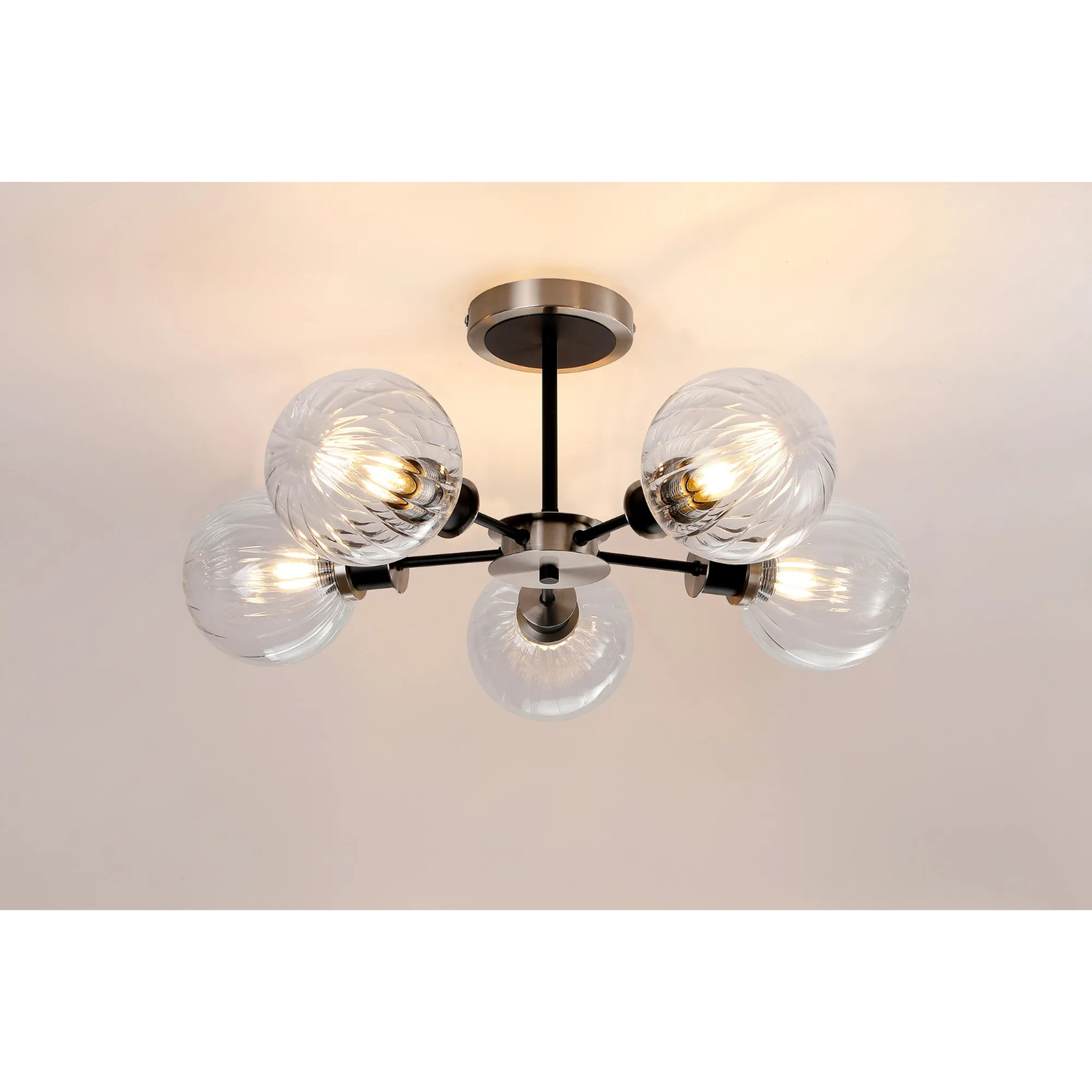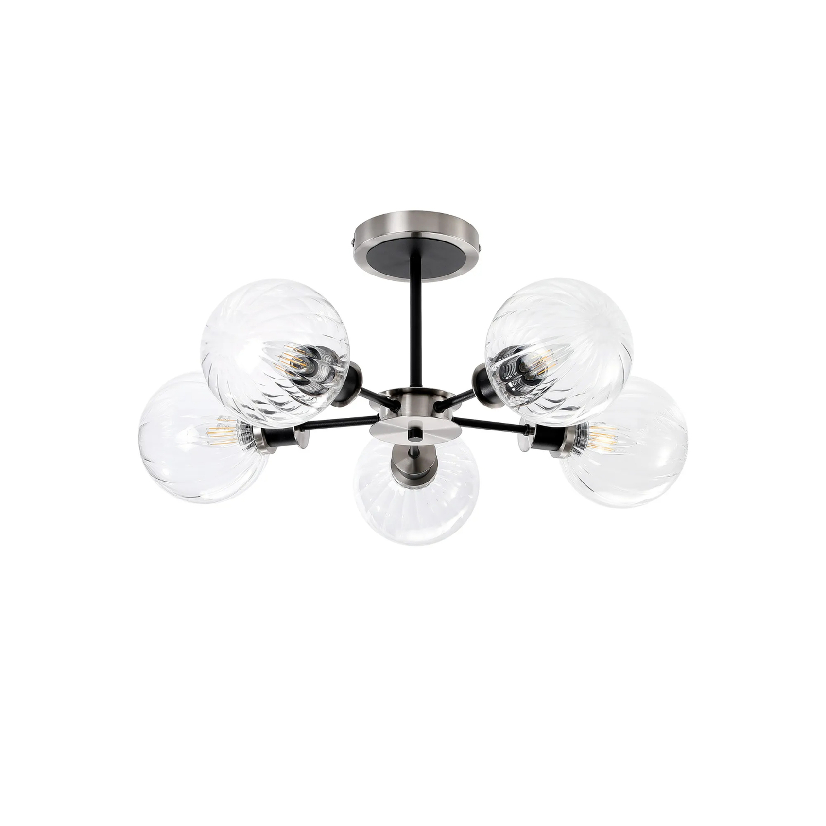 Idolite Haughton IP Semi Ceiling, 5 x E14 With 15cm Round Segment Glass Shade, Satin Nickel, Clear & Satin Black | IDOLCGES/NS6099