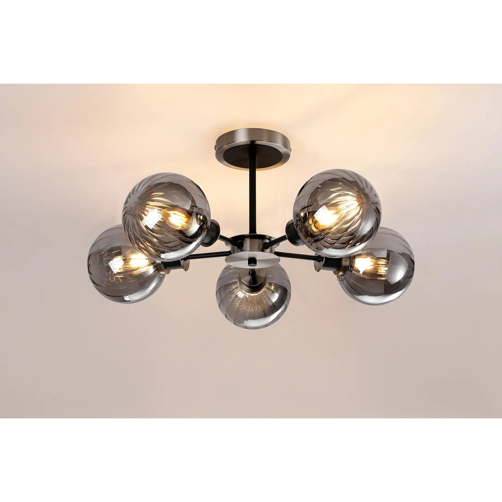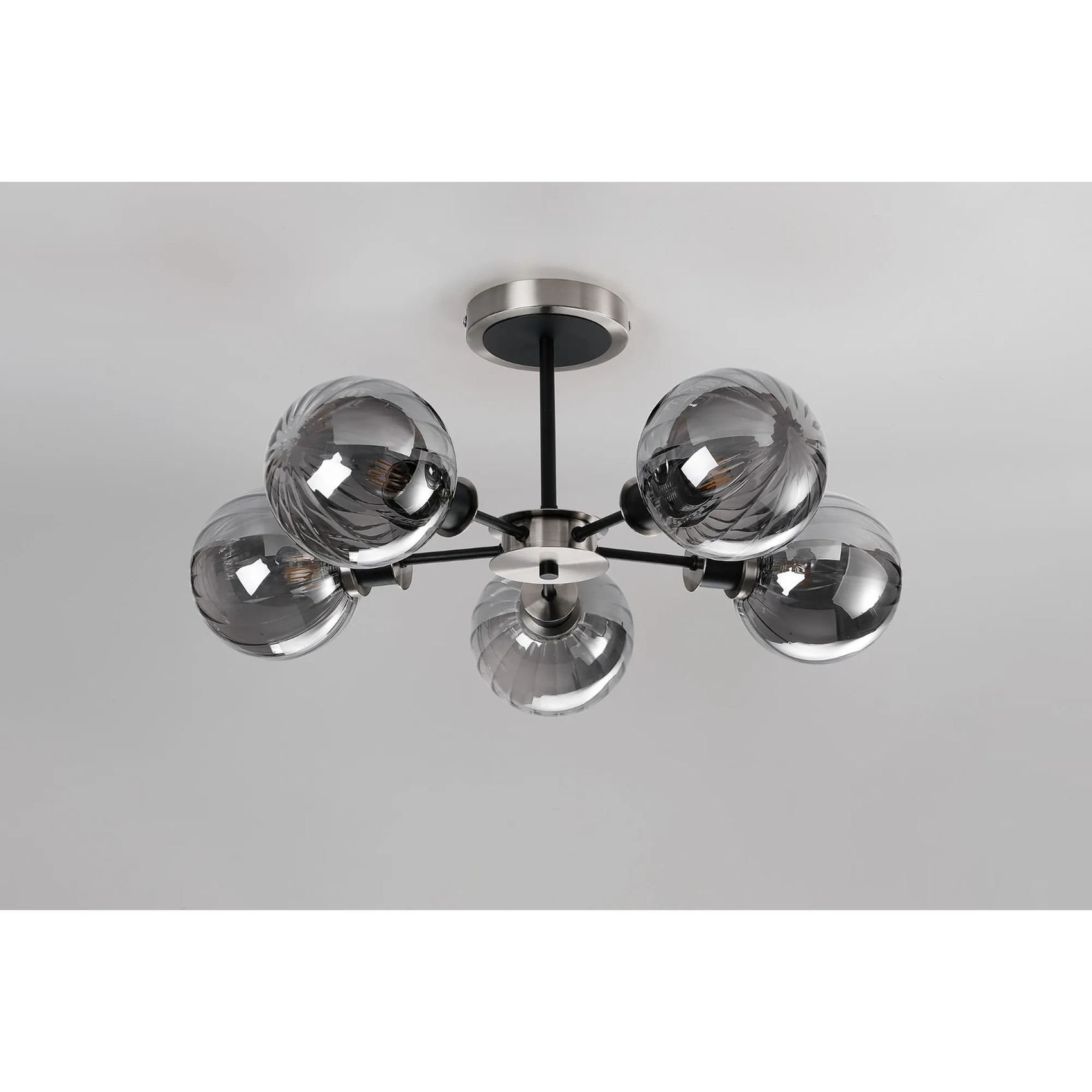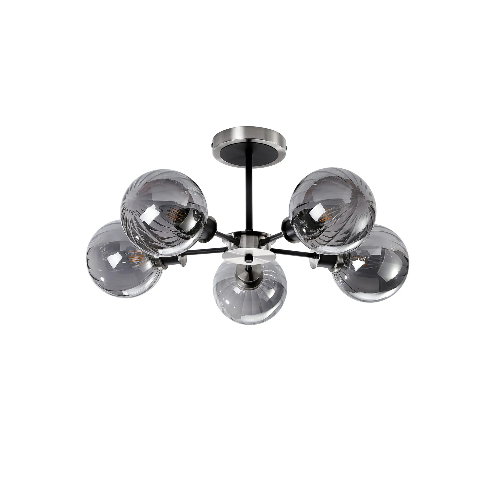 Idolite Haughton IP Semi Ceiling, 5 x E14 With 15cm Round Segment Glass Shade, Satin Nickel, Smoke Plated & Satin Black | IDOMSGES/NS6099