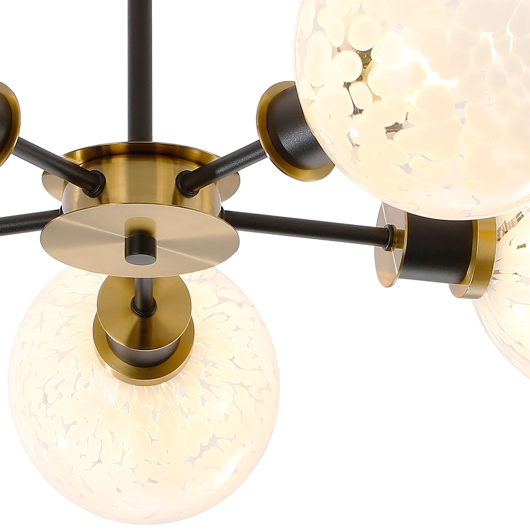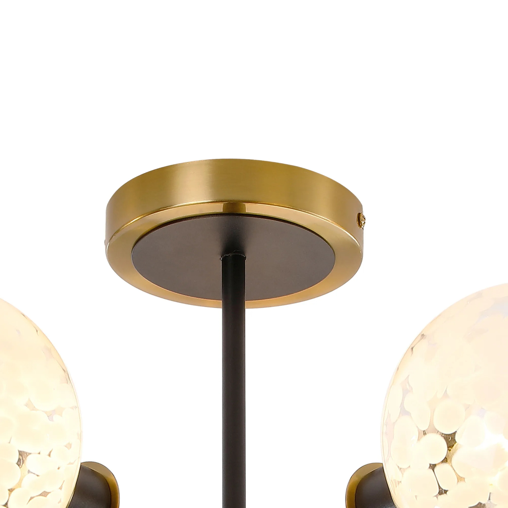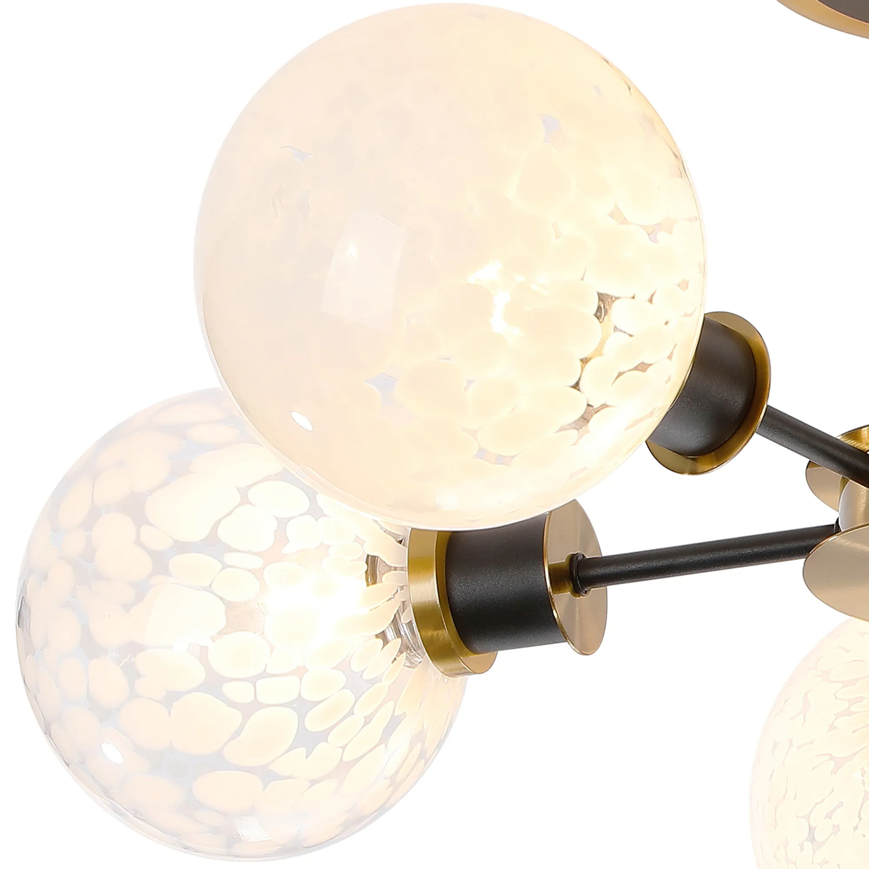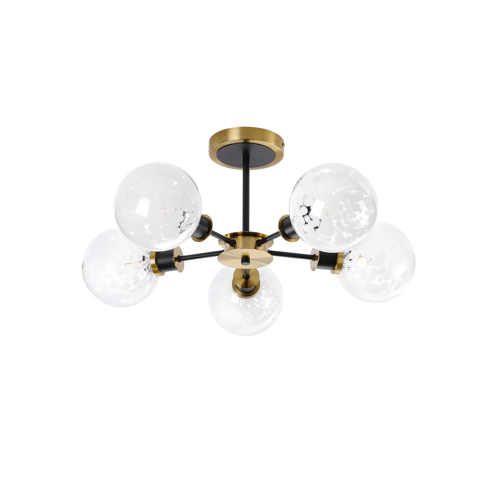 Idolite Haughton IP Semi Ceiling, 5 x E14 With 15cm Round Speckled Glass Shade, Brass, White & Satin Black | IDOLC/HWKPS/RB6099
