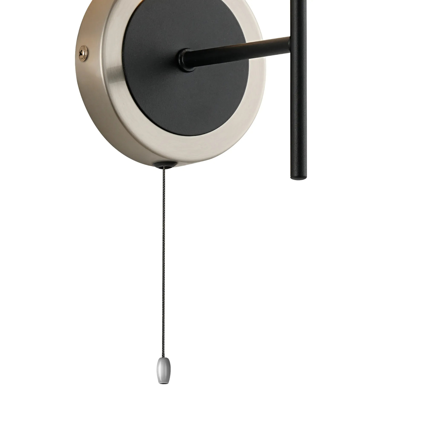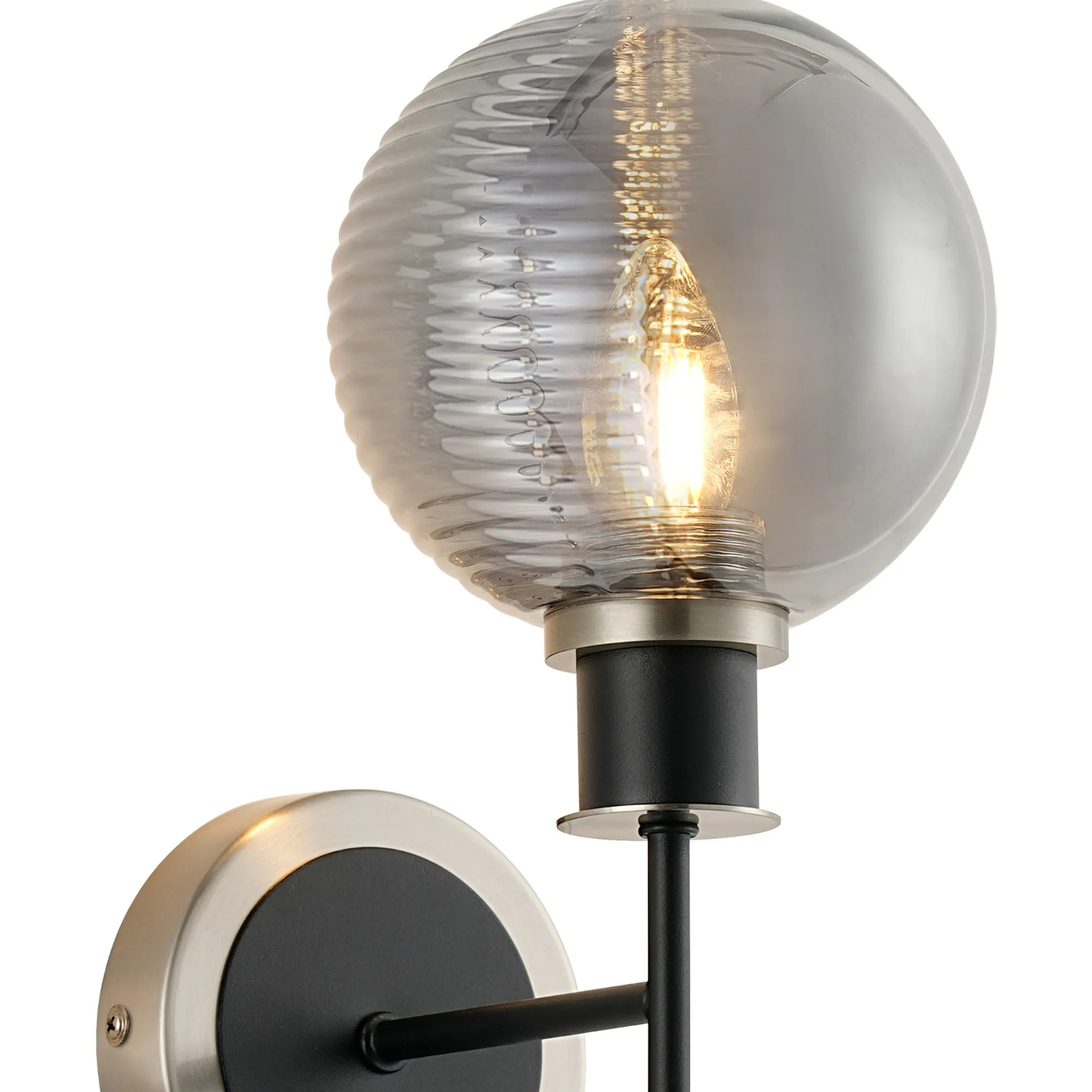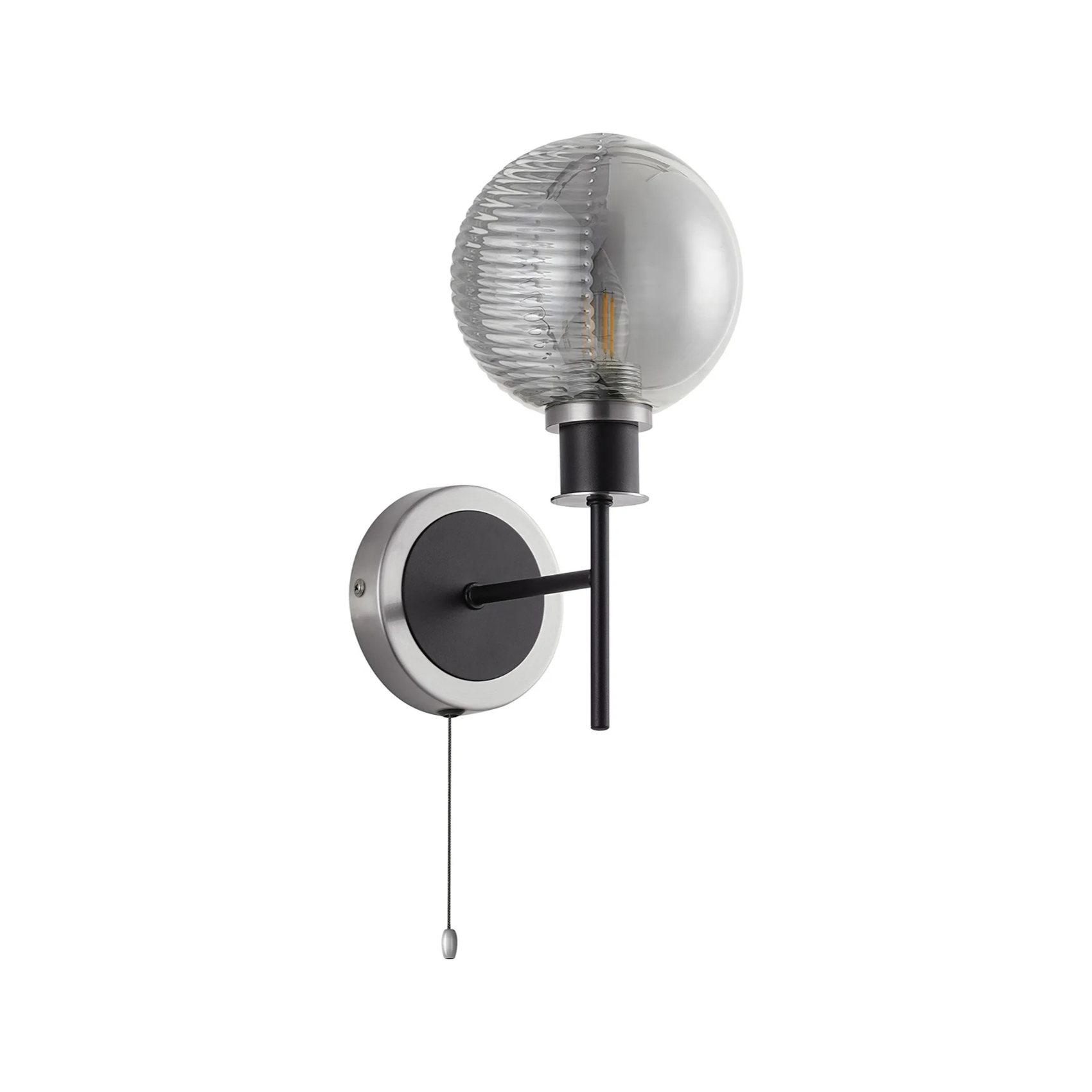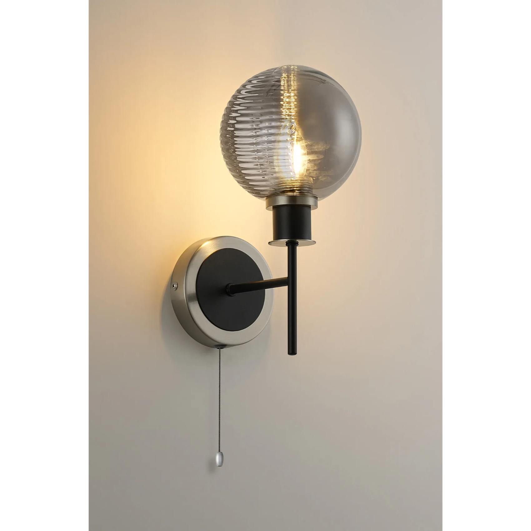 Idolite Haughton IP Switched Wall Light, 1 Light E14 IP44 With 15cm Round Double Textured Smooth/Ribbed Shade, Satin Nickel, Smoke Plated/Satin Black | IDOMSBRS/NS7099