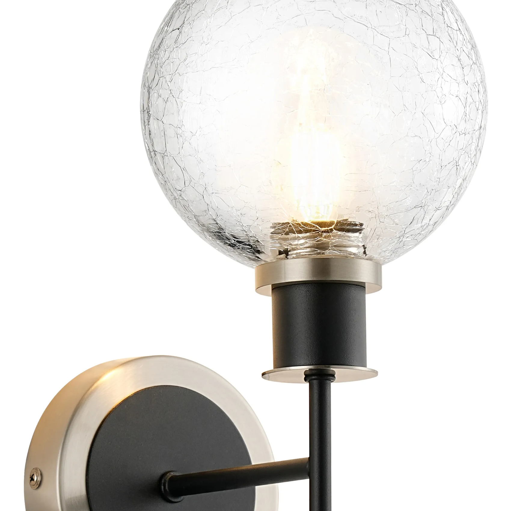 Idolite Haughton IP Switched Wall Light, 1 x E14 With 15cm Round Crackled Glass Shade, Satin Nickel, Clear & Satin Black | IDOLCKRC/NS7099
