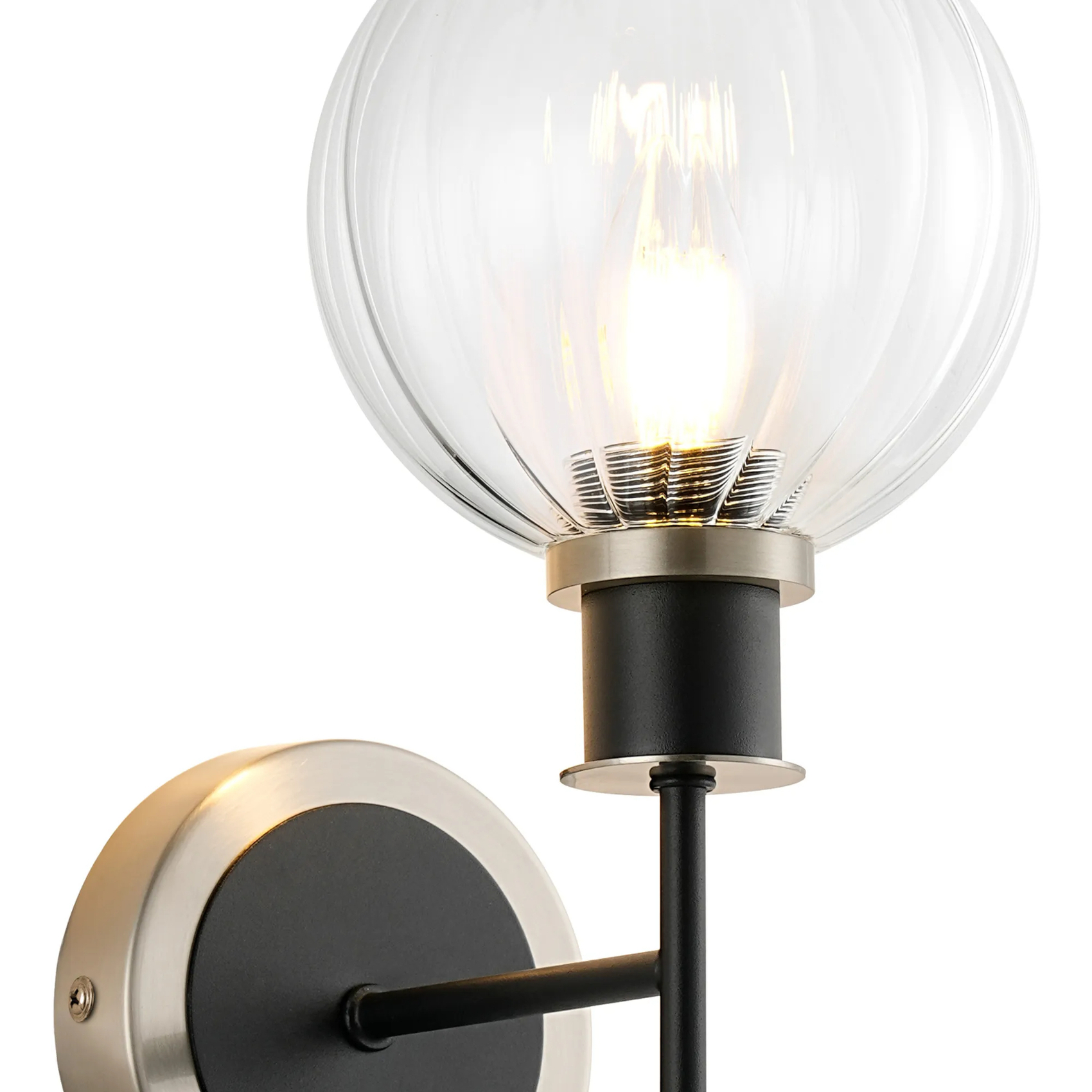 Idolite Haughton IP Switched Wall Light, 1 x E14 With 15cm Round Segment Glass Shade, Satin Nickel, Clear & Satin Black | IDOLCGES/NS7099