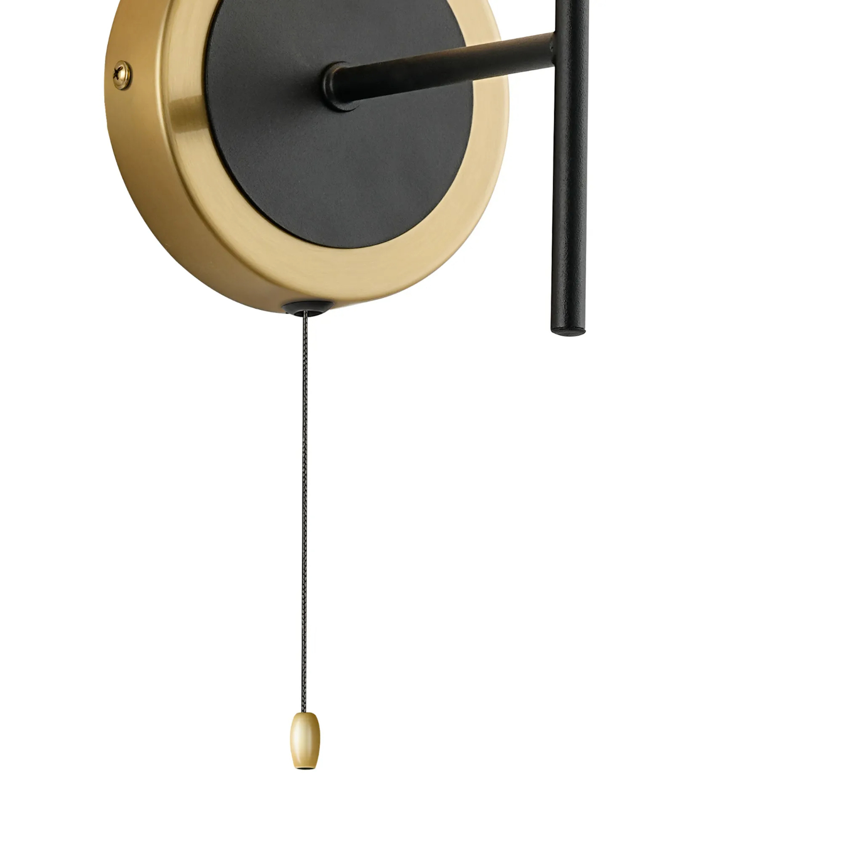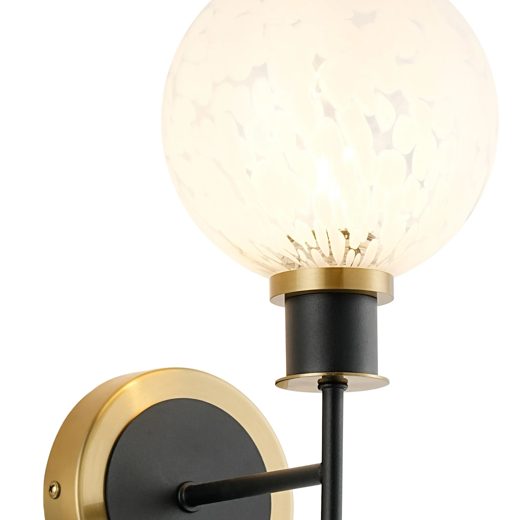 Idolite Haughton IP Switched Wall Light, 1 x E14 With 15cm Round Speckled Glass Shade, Brass, White & Satin Black | IDOLC/HWKPS/RB7099