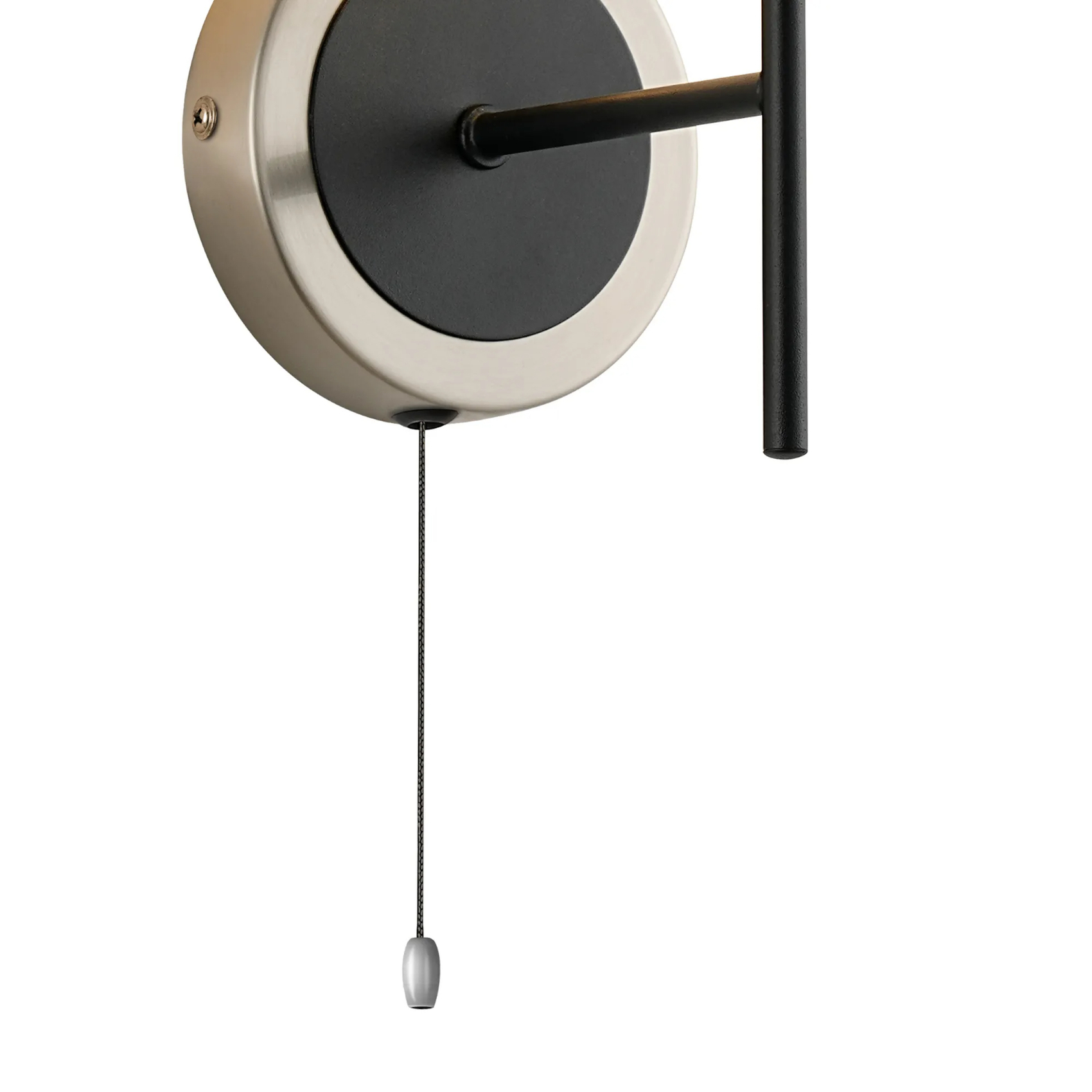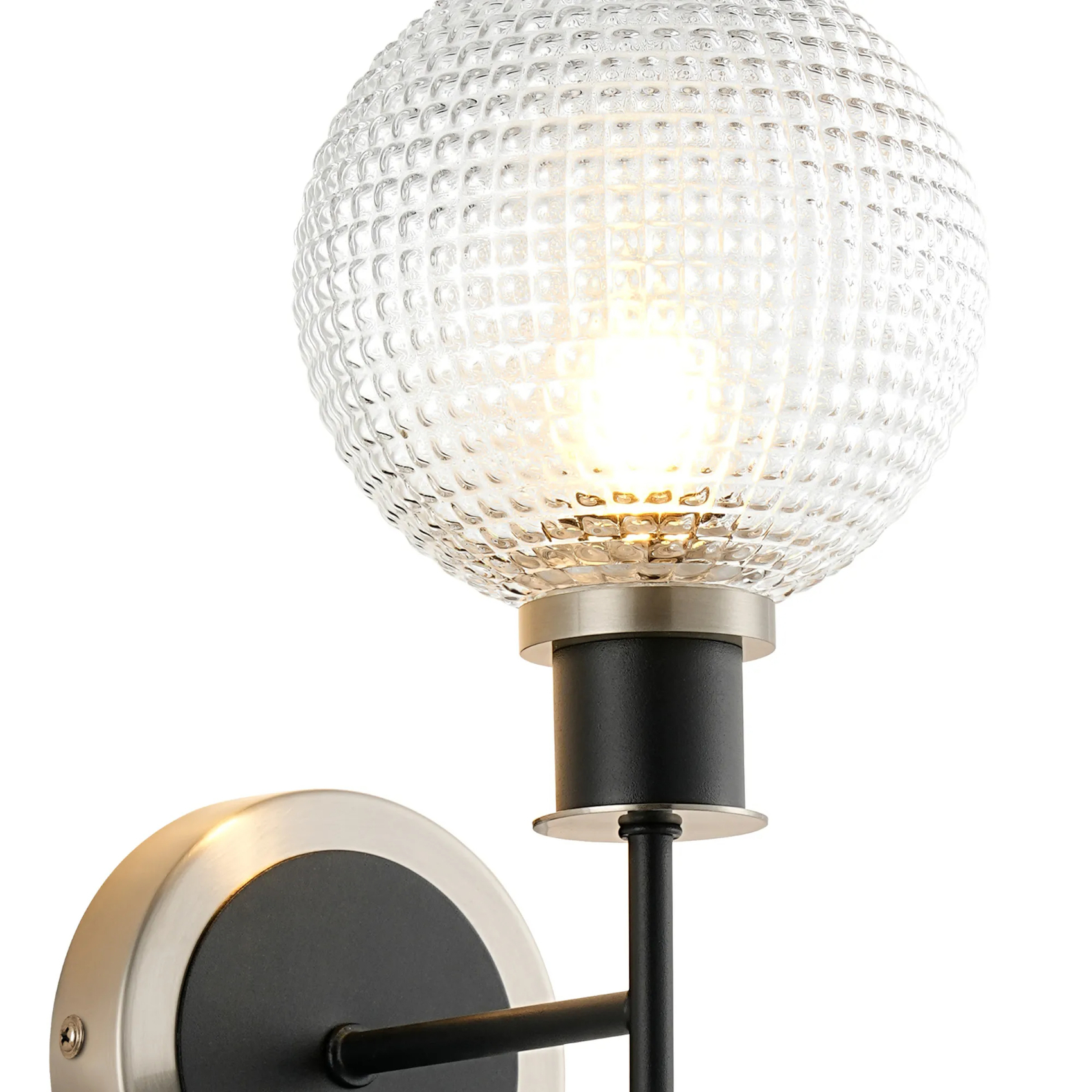 Idolite Haughton IP Switched Wall Light, 1 x E14 With 15cm Round Textured Diamond Pattern Glass Shade, Satin Nickel, Clear & Satin Black | IDOLCAID/NS7099