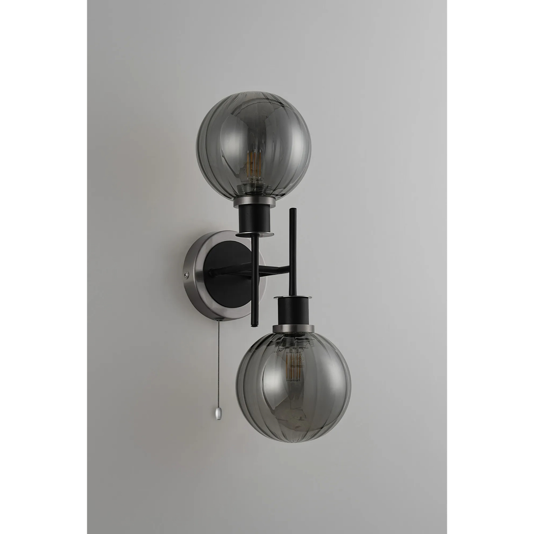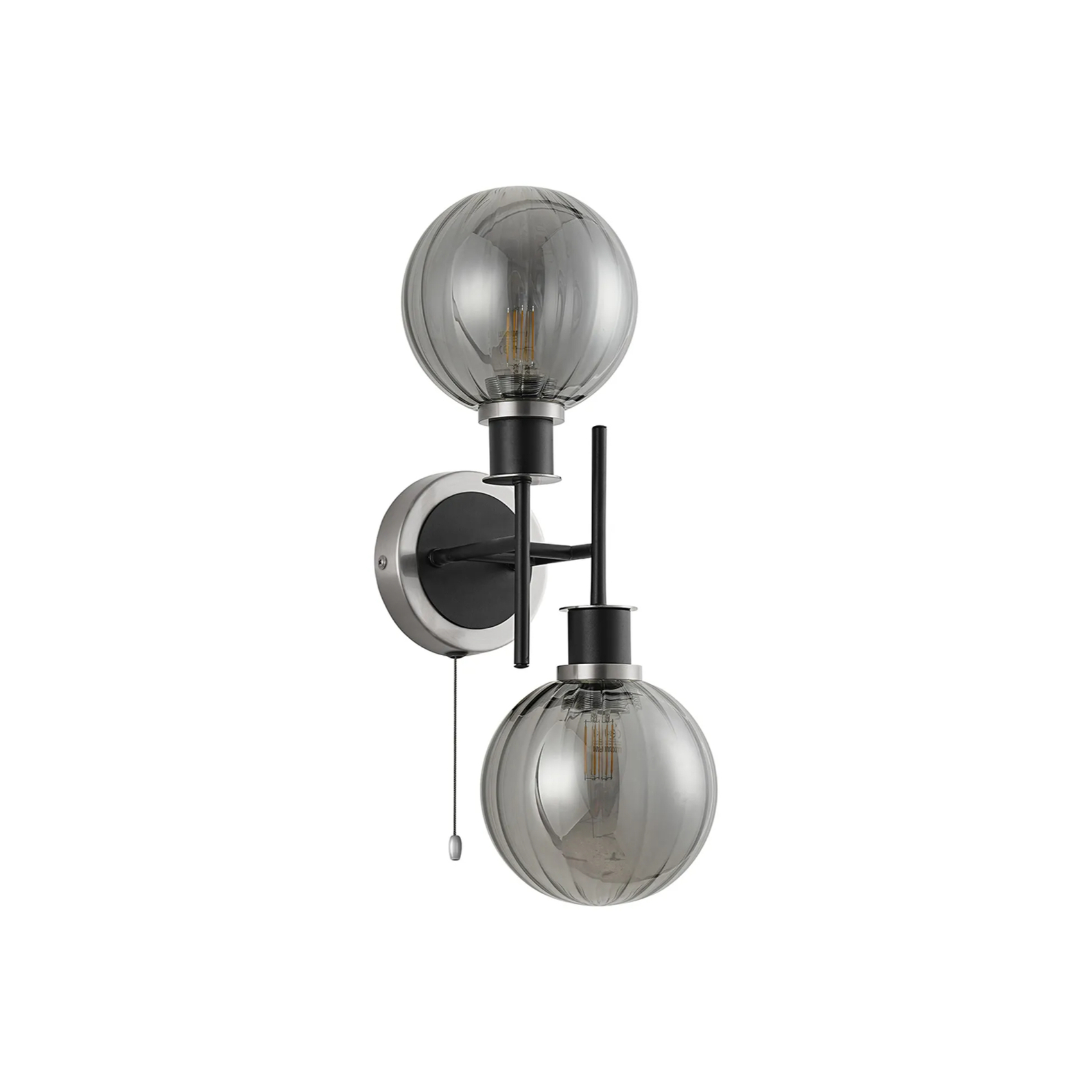 Idolite Haughton IP Switched Wall Light, 2 x E14 With 15cm Round Segment Glass Shade, Satin Nickel, Smoke Plated & Satin Black | IDOMSGES/NS8099