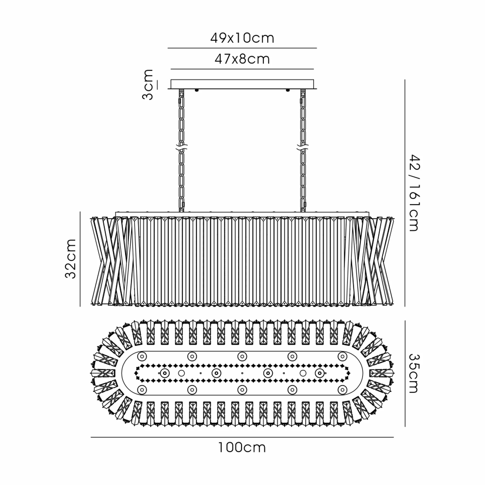 Efal 1M Oval Antique Brass/Clear Crystal Island Pendant Light | IL32948AB