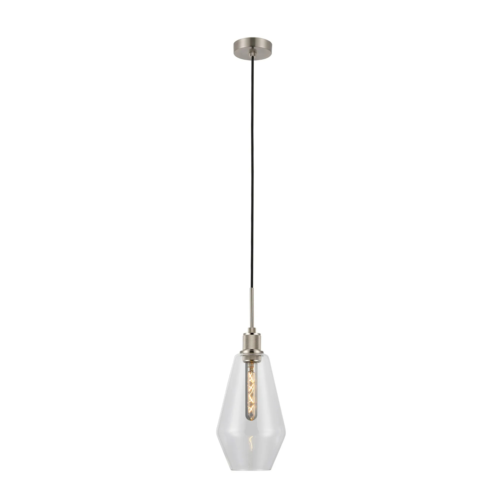 Idolite Rumi Satin Nickel Knurled Pendant Light With Clear Kite Shade | IDOK8963