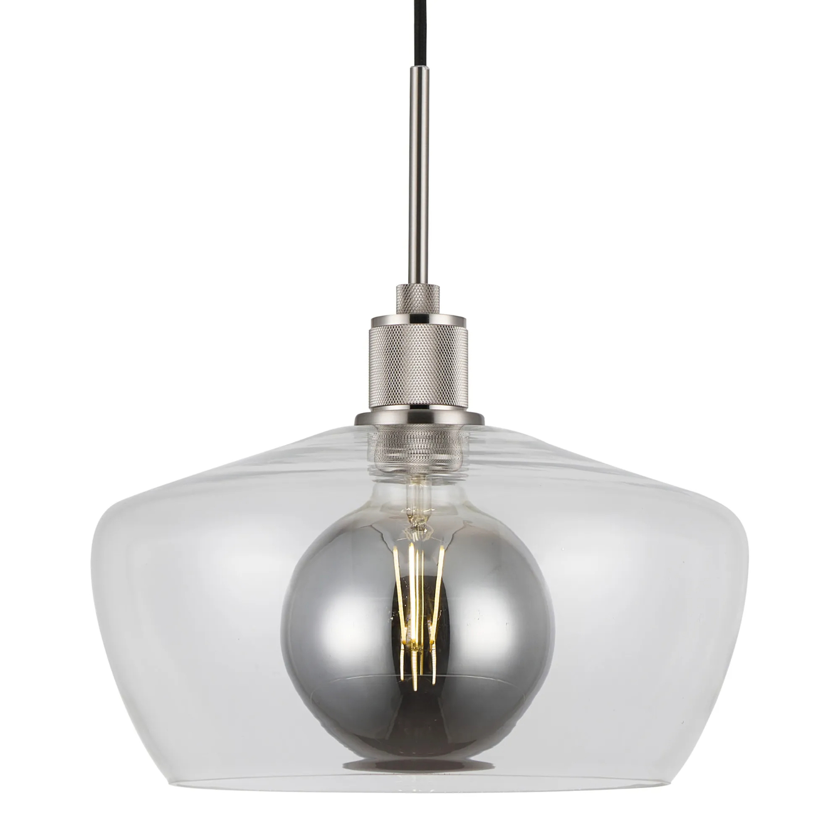 Idolite Rumi Satin Nickel Knurled Pendant Light With Clear Trapezium Shade | IDOK0343