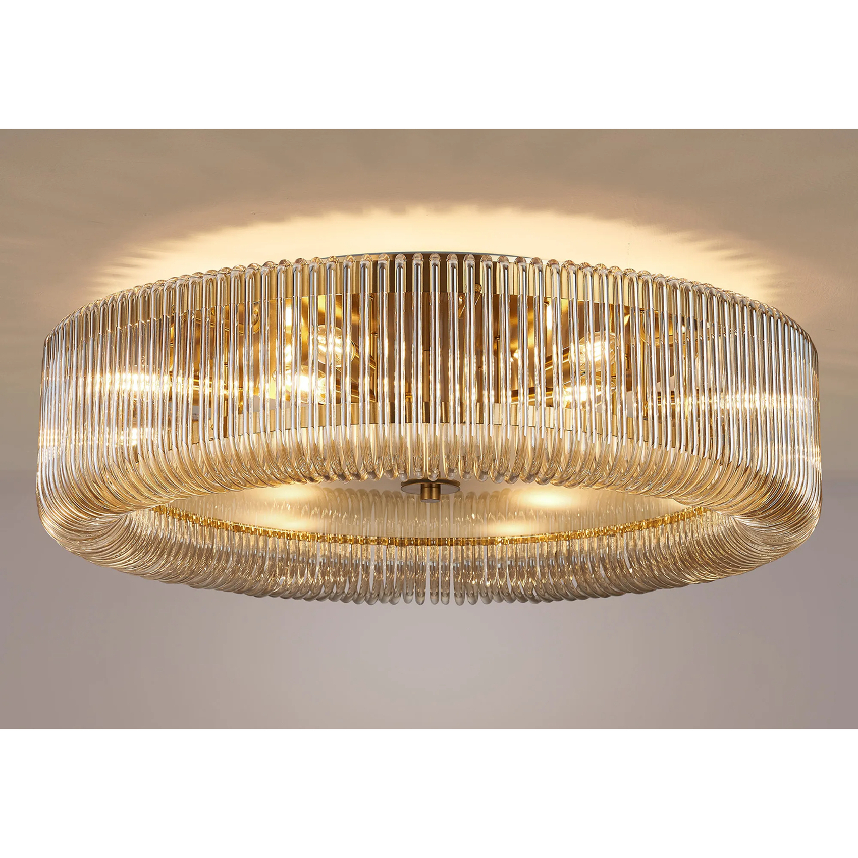 Idolite Nuboda 78cm Extra Large 12 Light Flush Brass Finish Ceiling Light Complete With Smoke Brown Glass Rods | IDONBMS/RB4036