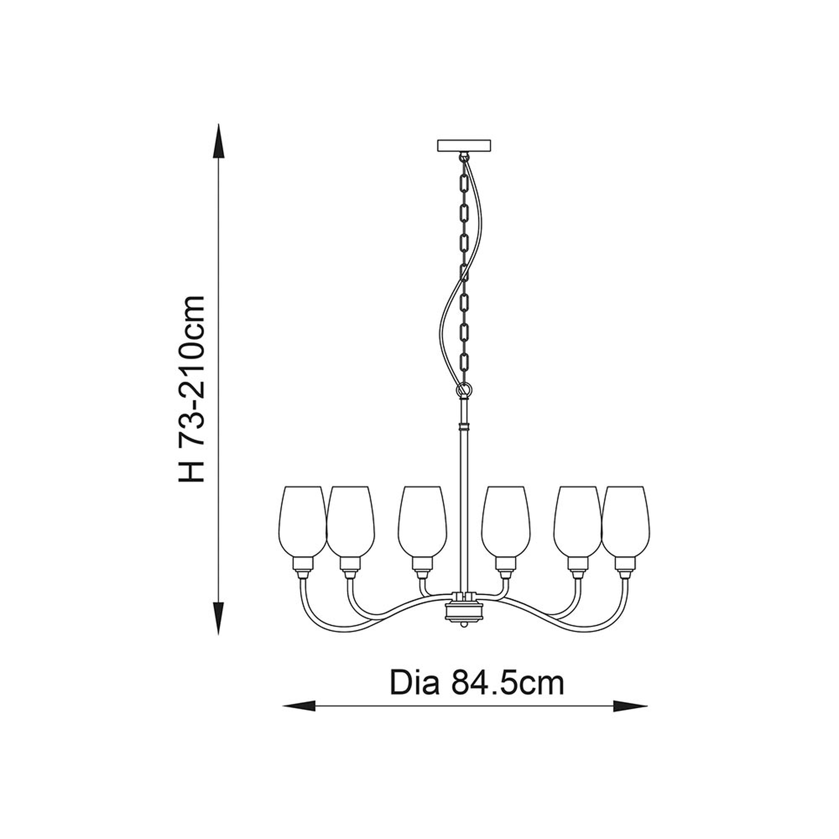- Adjustable drop from 730mm to a maximum of 2100mm for varied ceiling heights