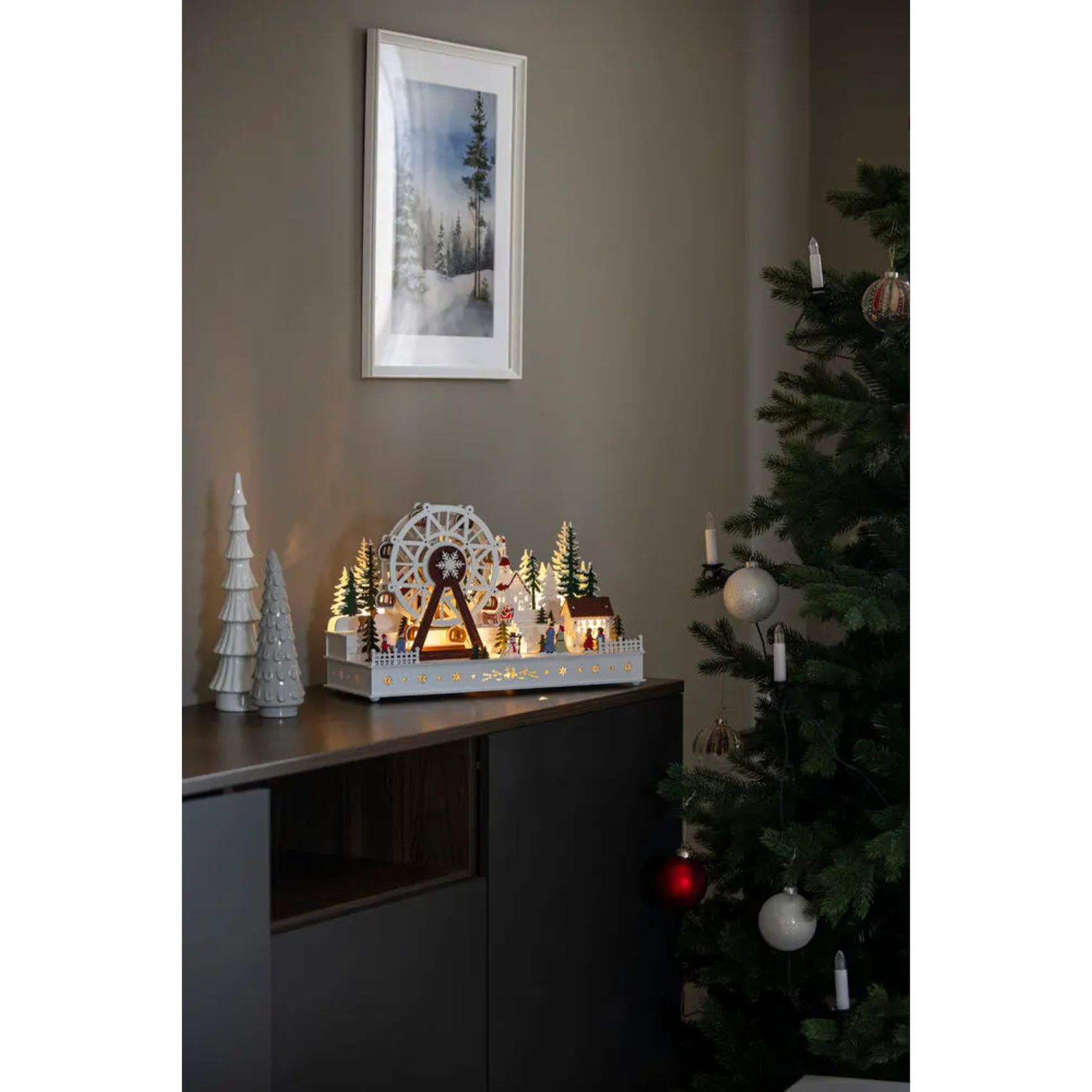 Ferris wheel, wood, Warm White Led, 6H/timer 3xAA & USB | 3244-250