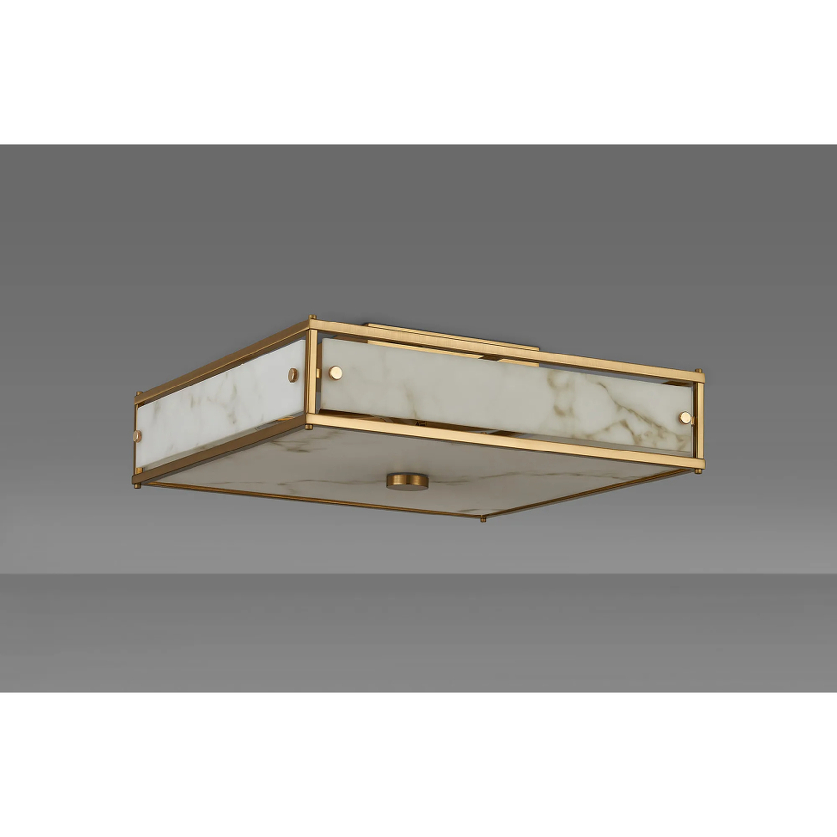 Idolite Vault 40x40cm 4 Light Square Flush Bathroom Ceiling Light Brass/Grey Faux Alabaster (B) Glass - IP44 | IDOYG/B/RB3276