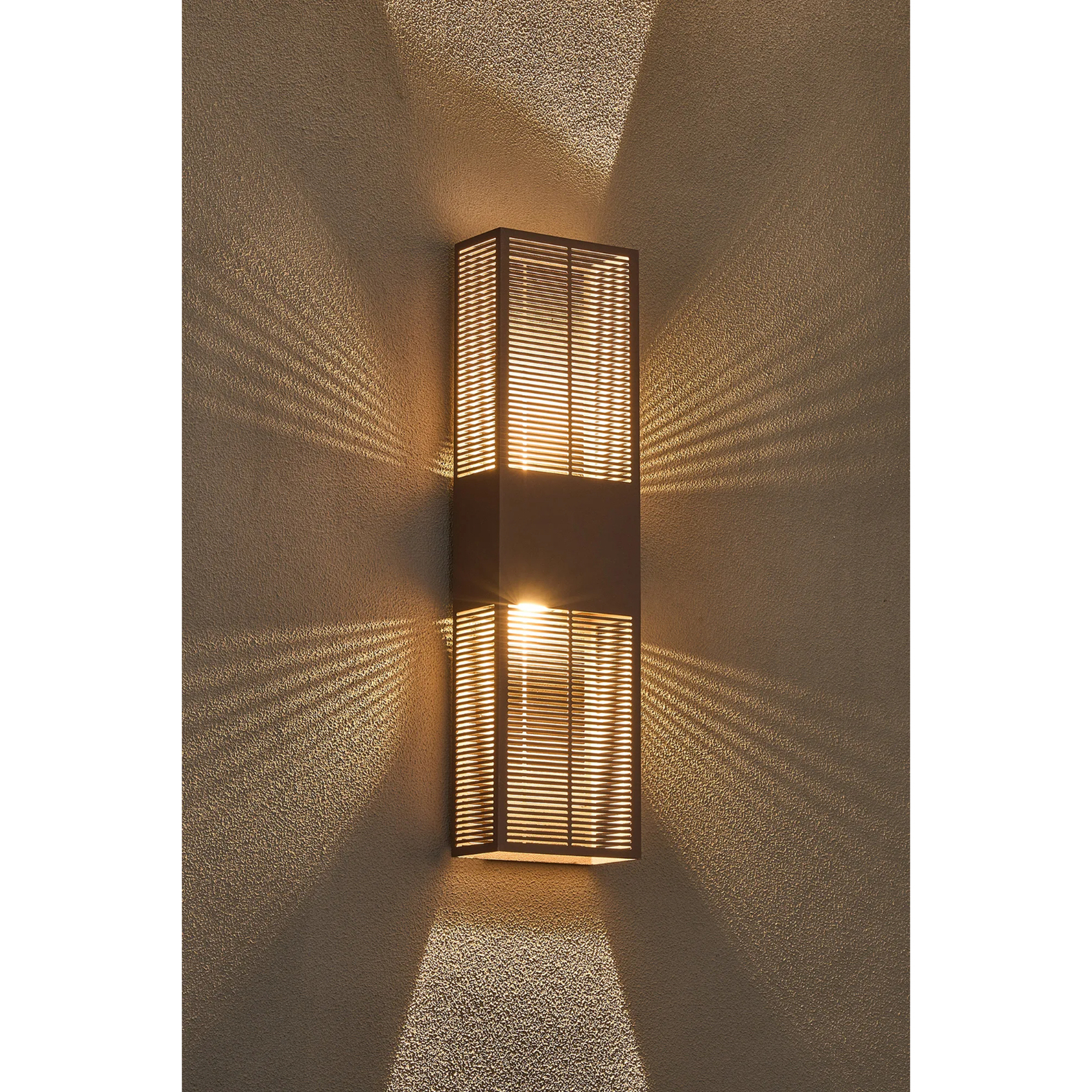 Idolite Aiken Up/Down Wall Lamp, 2 x 10W LED, 3000K, 1500lm, IP54, Cacao With 600mm Lined Grate Pattern Shade (A) | IDO006/A/BD4445