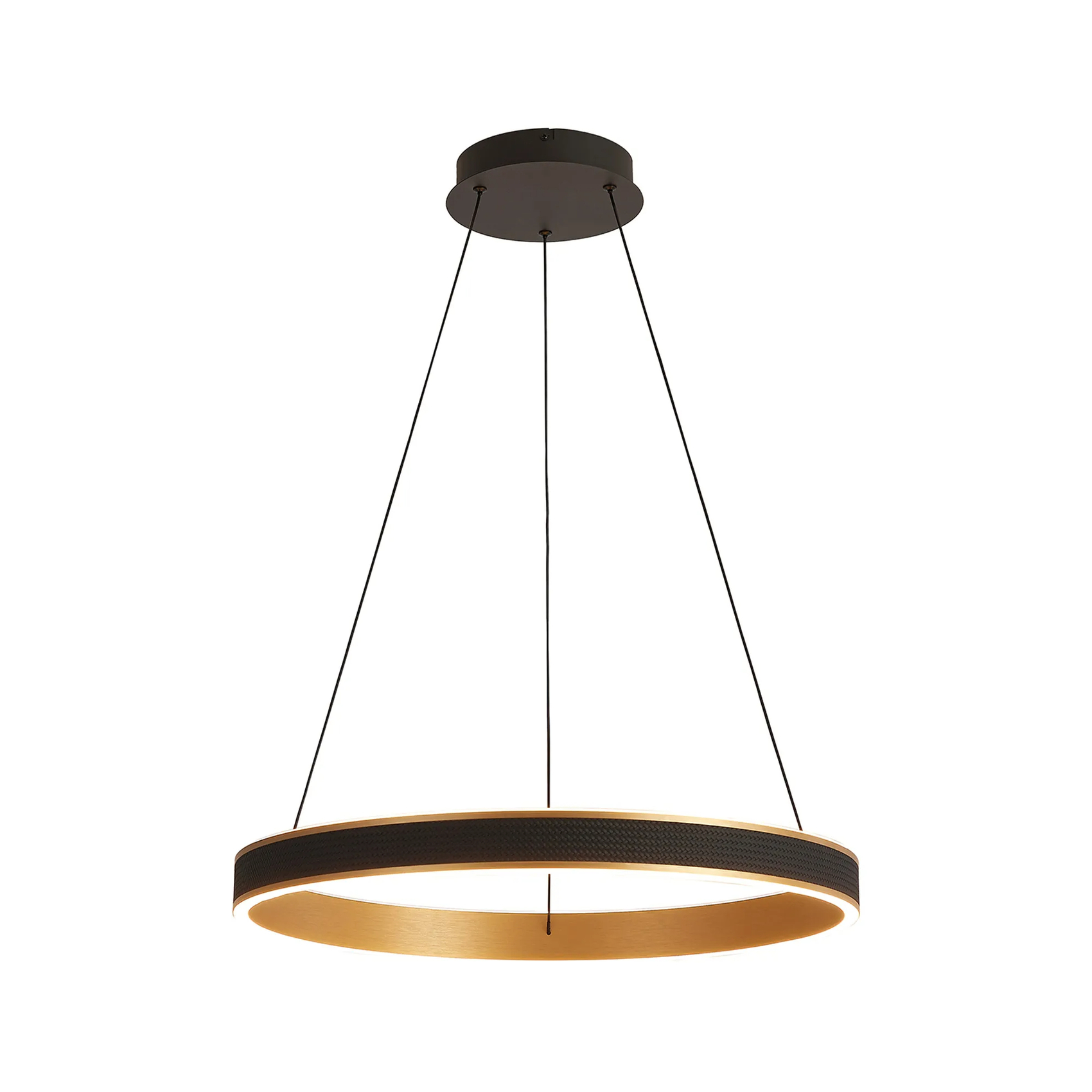 Idolite Aster 60cm Black Faux Leather And Brushed Gold Led Ring Pendant Light Complete With Remote Control - Cct Tuneable 3000K-6000K | IDO5615